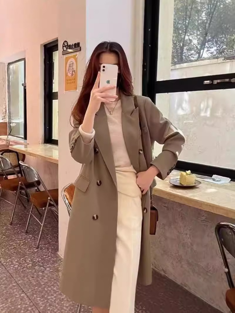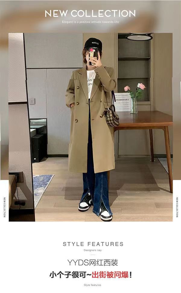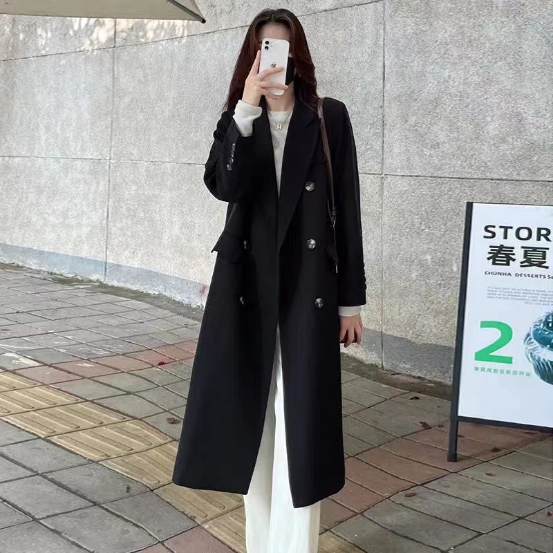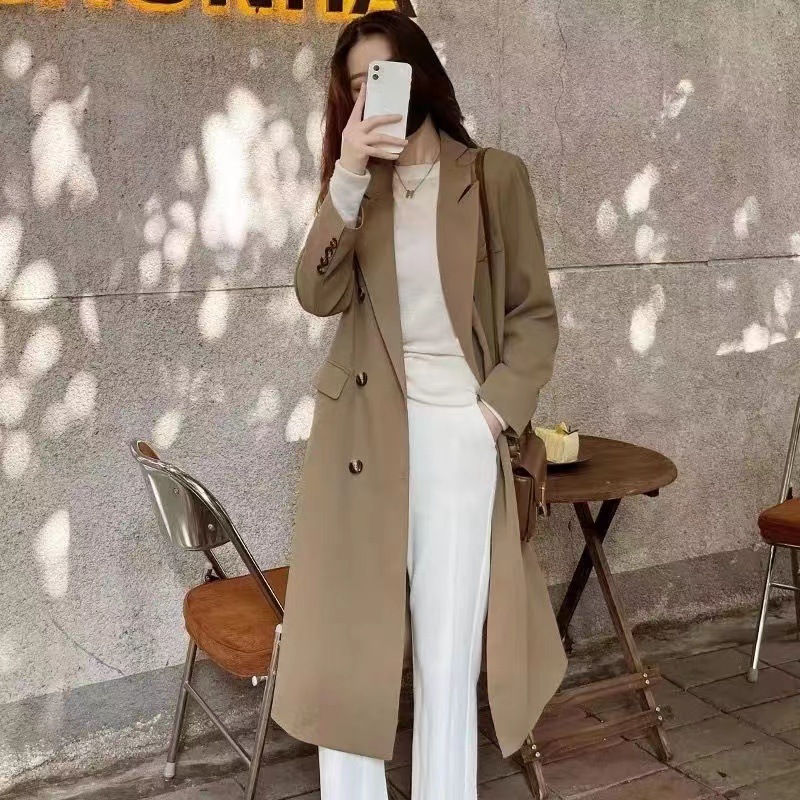 Женский плащ средней длины 2025 года, осенне-зимняя куртка в корейском стиле, элитное пальто в стиле интернет-знаменитостей, легкий люксовый костюмный стиль, британская элегантность