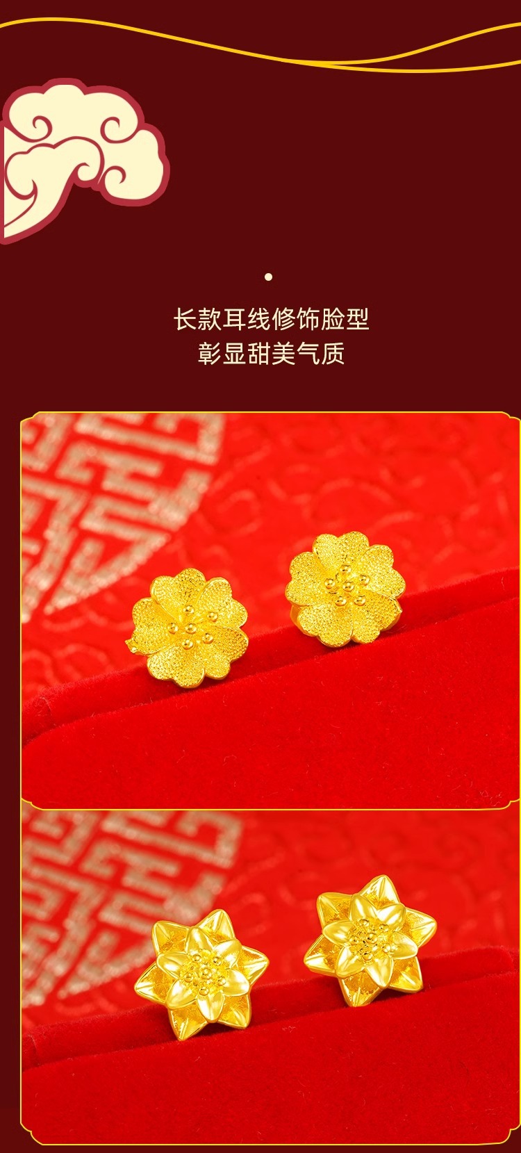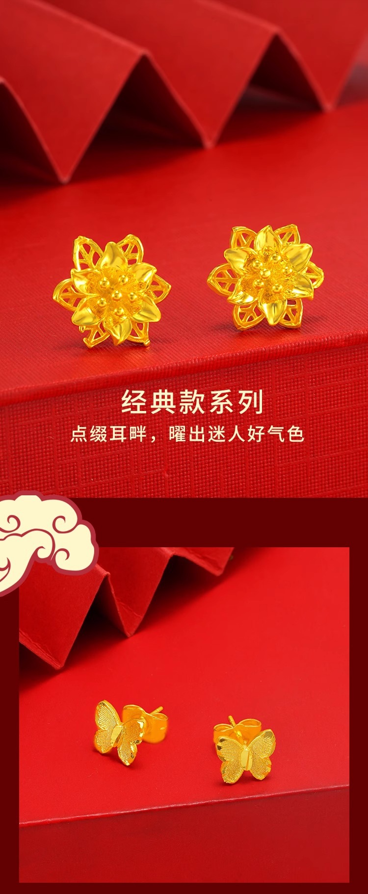 Серьги с узлом Руйи; любовные серьги; серьги с цветком персика; серьги звезда и луна; Серьги в виде лебедей; Серьги с лилиями; серьги с двойным цветком; Серьги в форме клевера; Серьги в виде павлина; маленькие цветочные серьги; Серьги-бабочки; Серьги в виде пчел; Серьги в виде цветка любви; Глянцевые серьги-шапочки; Серьги из матового боба; скручивающие серьги