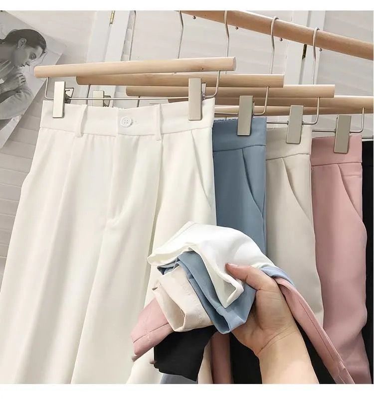 Костюм брюки женские 2024 весна и осень новая корейская версия дизайна ощущает нишу с высокой талией рыхлые тонкие прямые брюки с широкими ногами