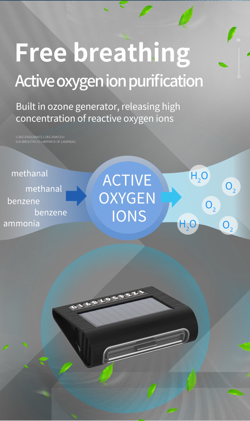 Автомобильный очиститель воздуха на солнечной батарее, автоматический запуск парковки, зарядка от солнечной батареи, сверхдлительный срок службы батареи, без расходных материалов