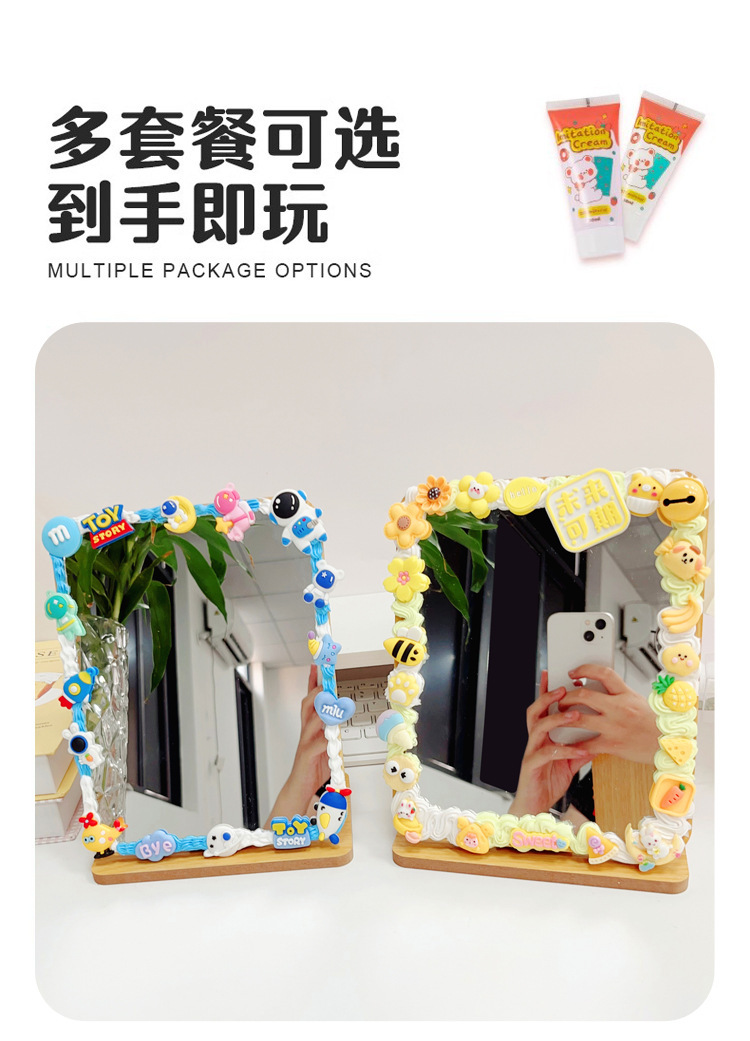 Творческий вдохновляющий крем клей зеркало diy ручной материал пакет деревянный складной зеркало зеркало для детей подарок