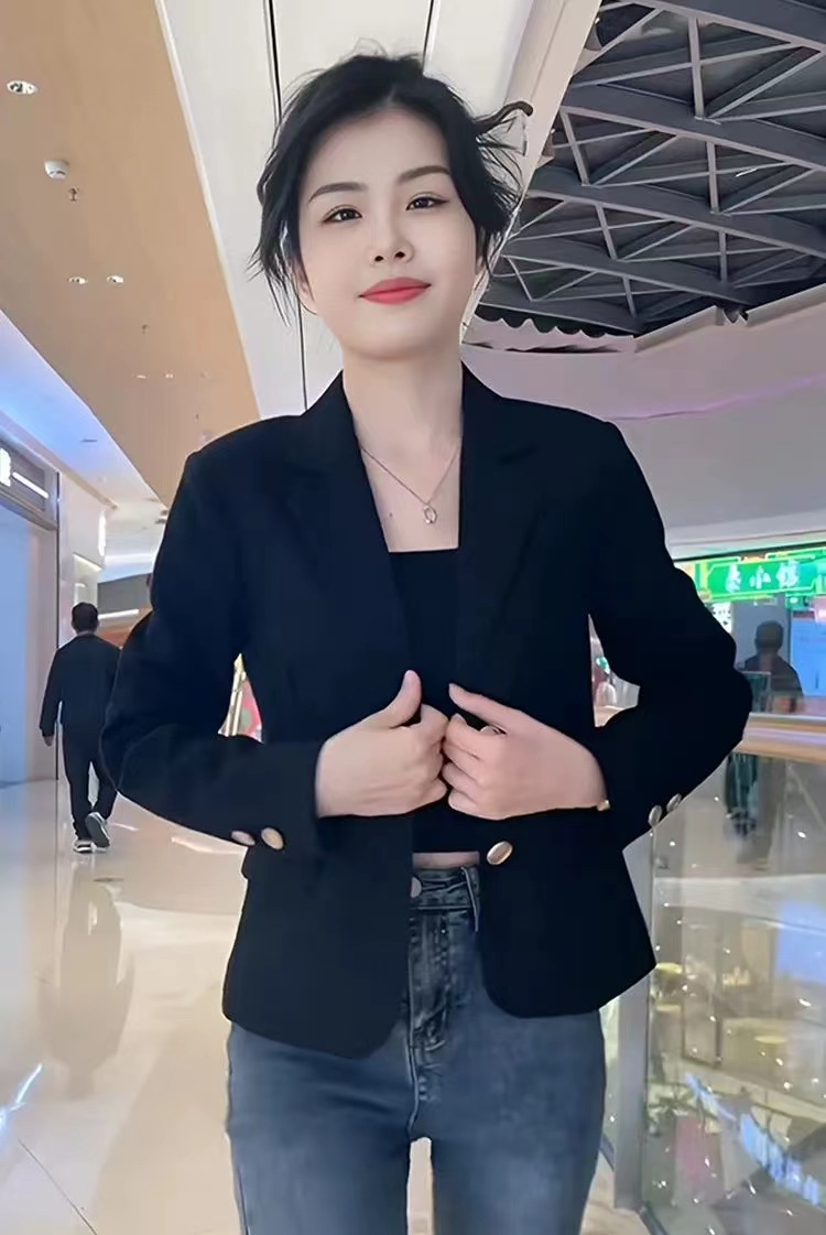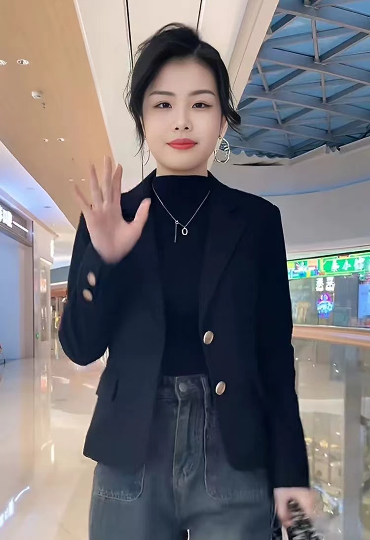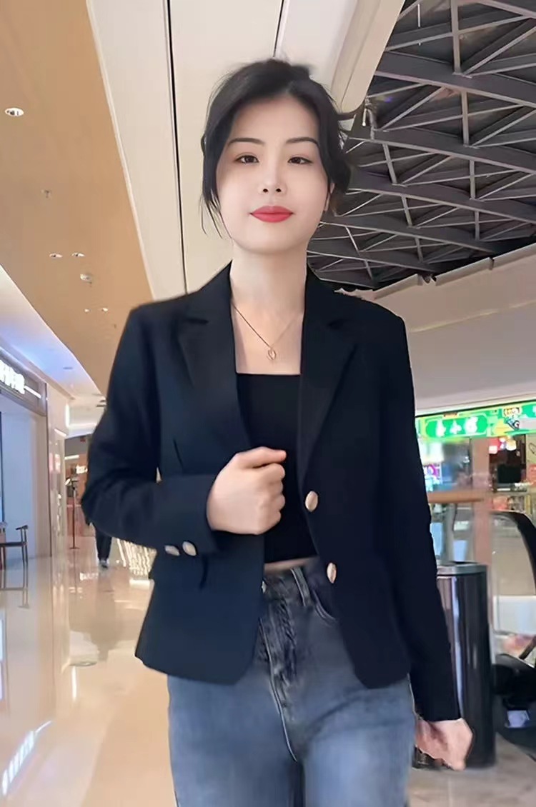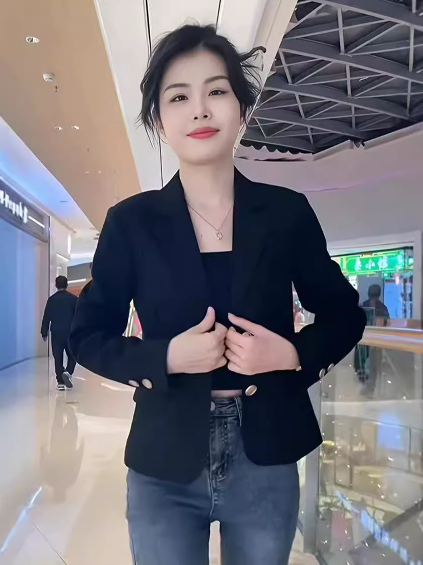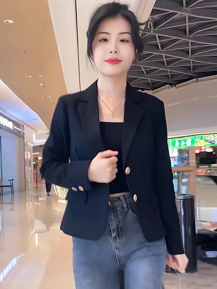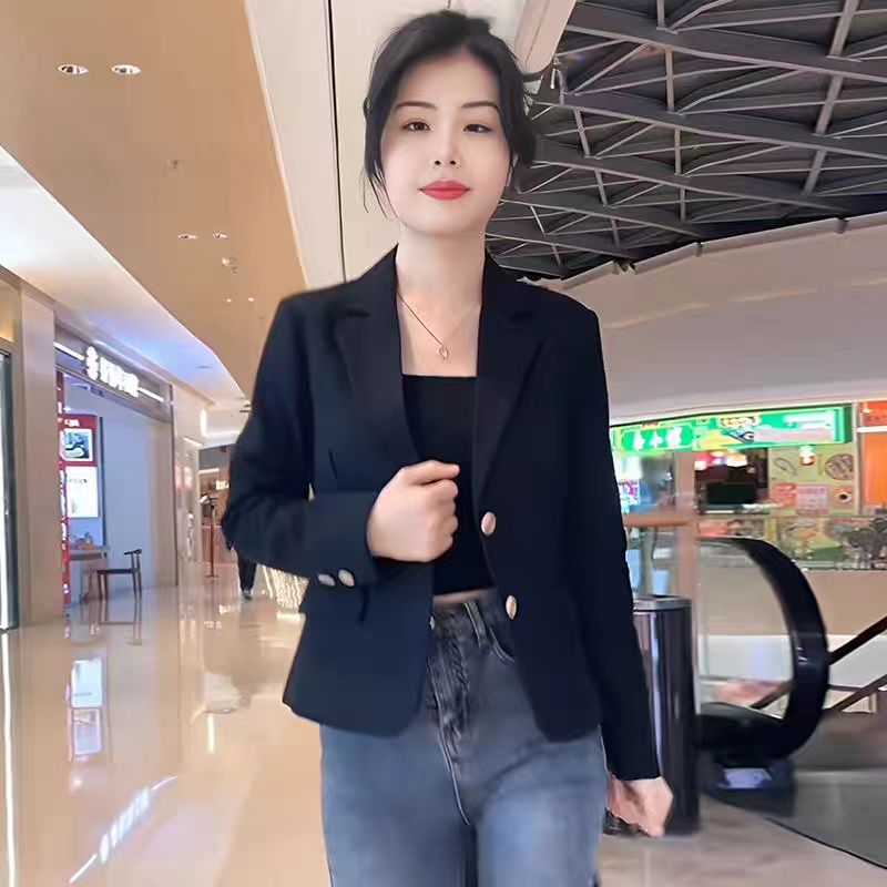 Короткий блейзер 2025 года для миниатюрных женщин, модный приталенный повседневный пиджак, черный, облегающий, простой и универсальный