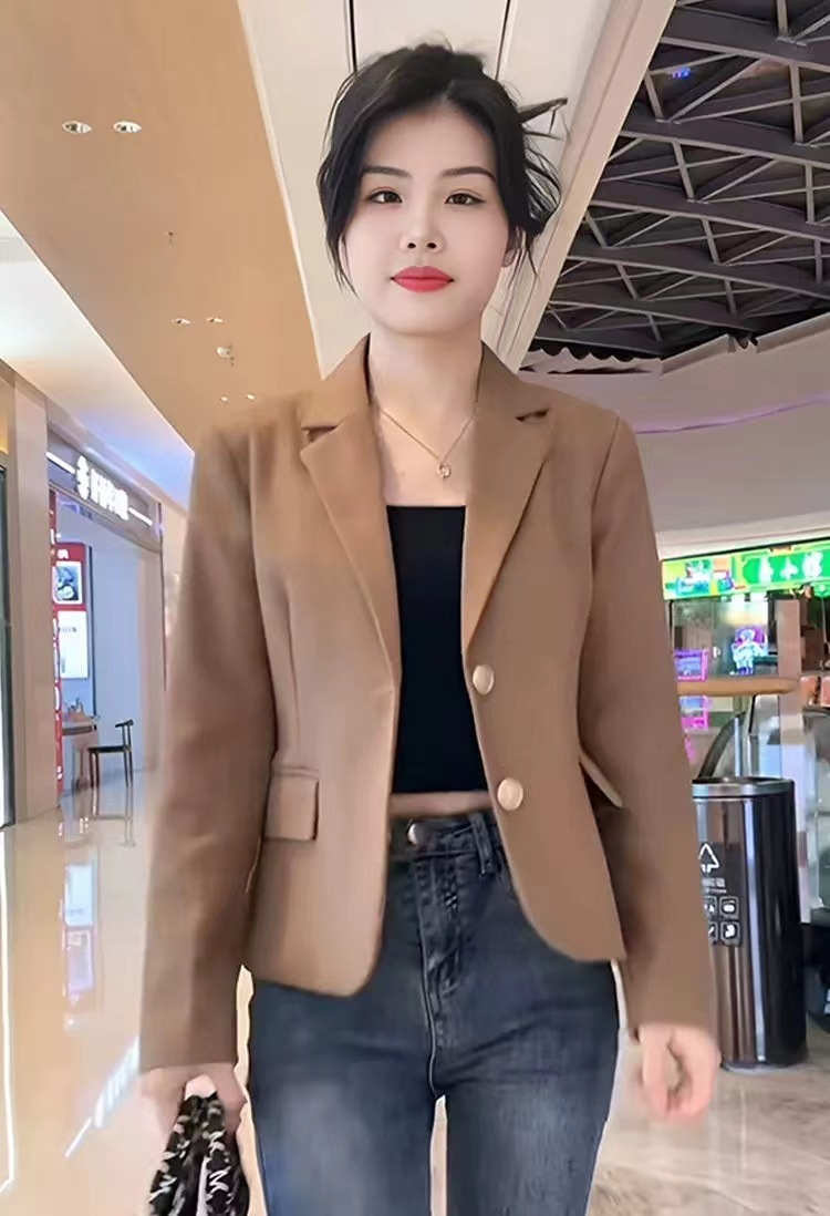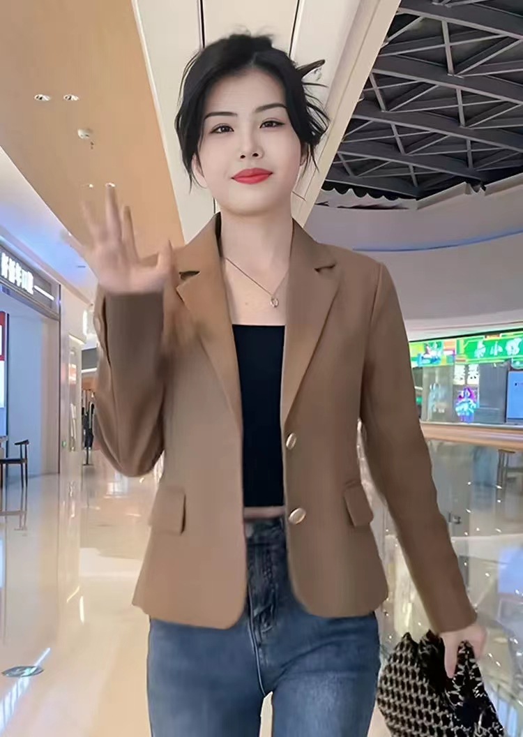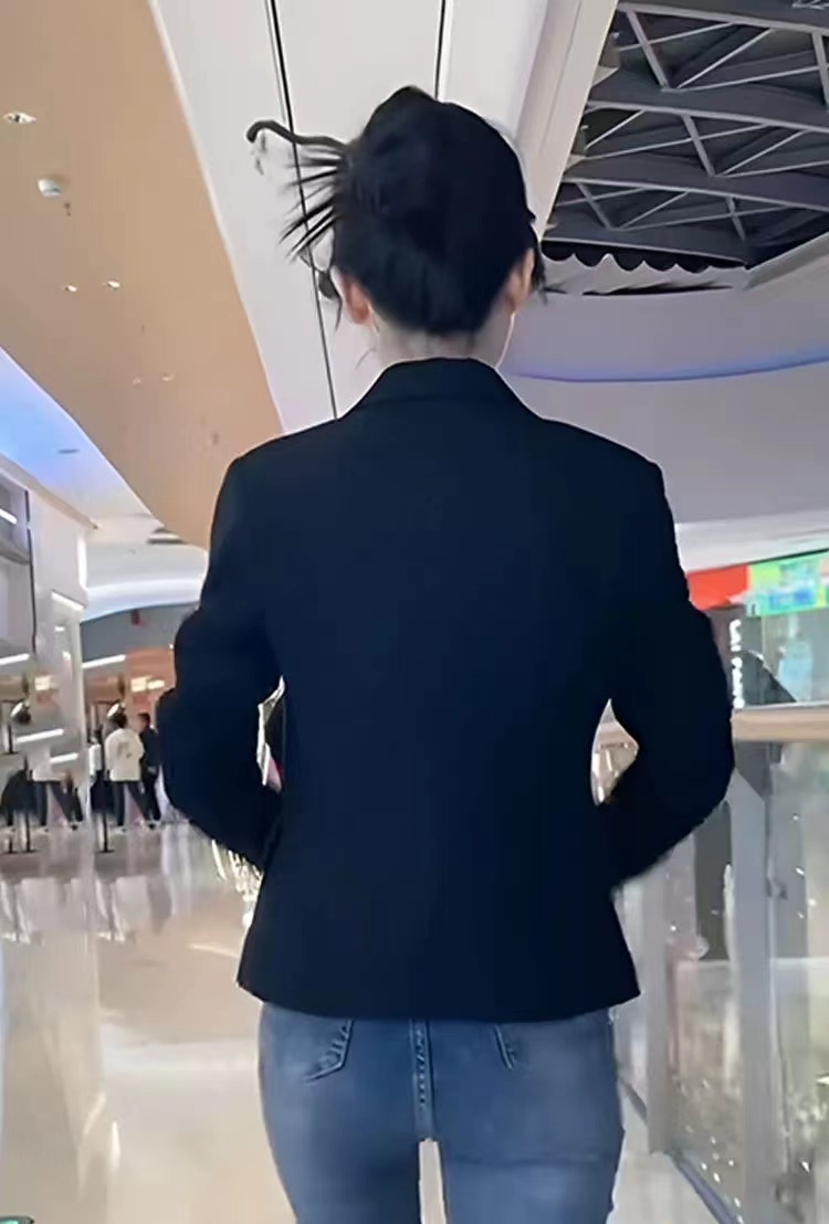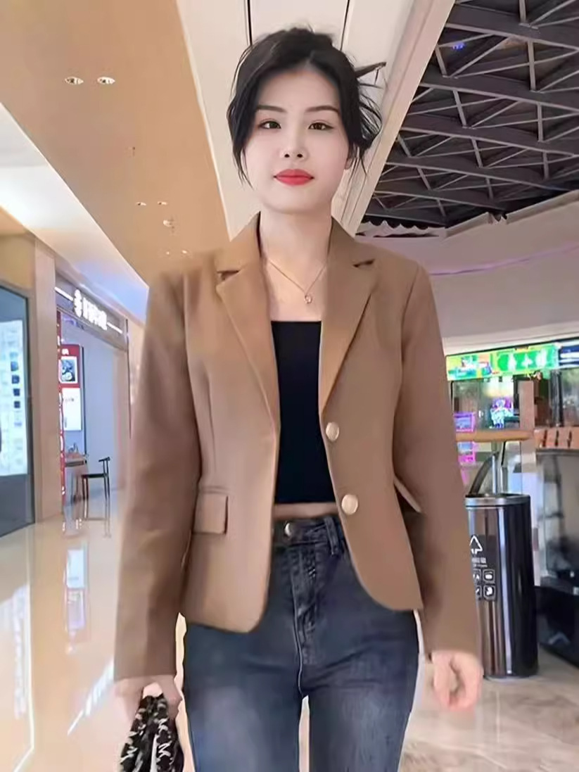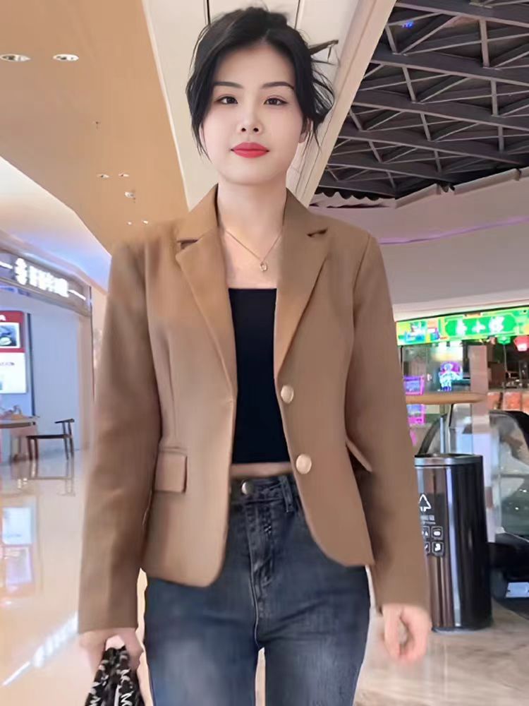 Короткий блейзер 2025 года для миниатюрных женщин, модный приталенный повседневный пиджак, черный, облегающий, простой и универсальный