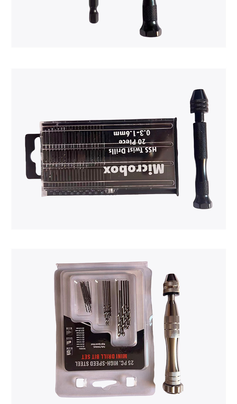 Маленькая черная спиральная дрель; Большой серебряный бриллиант, витый вручную.; Синяя полуавтоматическая спиральная дрель; Спиральное сверло 0,6-2, 10 шт. в пакете; Спиральное сверло 0,8-3.0 в коробке, 10 шт.; 20 шт. спиральное сверло 0,3-1,6 в коробке; Спиральное сверло 0,5-3.0 в пакете, 25 шт.; 25 шт. спиральное сверло 0,5-3.0 в пузырчатой оболочке; Спиральное сверло 0,5-3.0 в пакете, 48 шт.; Маленький черный + сумка из 10 шт.; Маленькое черное + спиральное сверло в коробке 10 шт.; Маленькое черное + спиральное сверло в коробке 20 шт.; Маленькое черное + спиральное сверло из пузырьковой оболочки 25 шт.; Маленькое черное + спиральное сверло в пакете 48 шт.; Большое серебро + спиральное сверло в коробке 10 шт.; Синее + спиральное сверло в коробке 10 шт.
