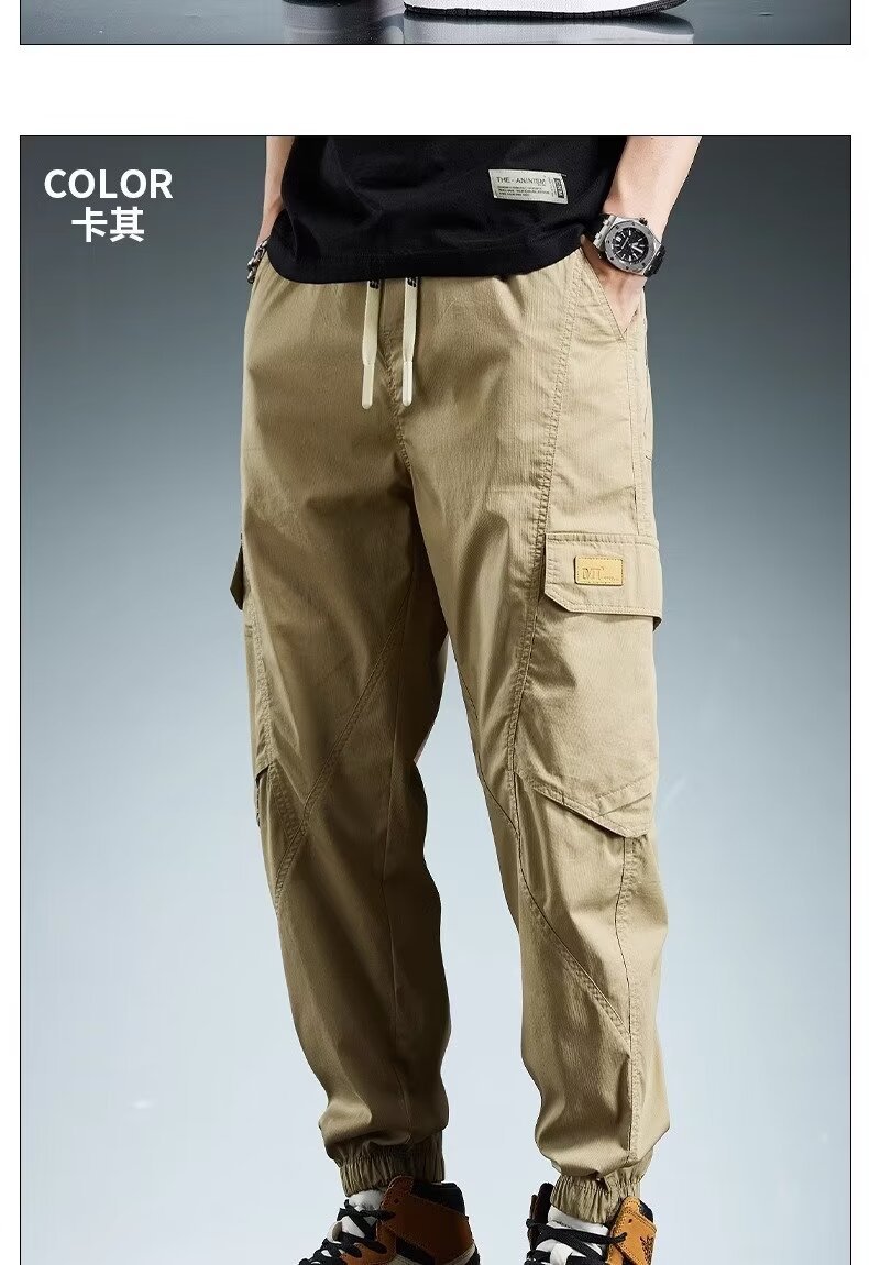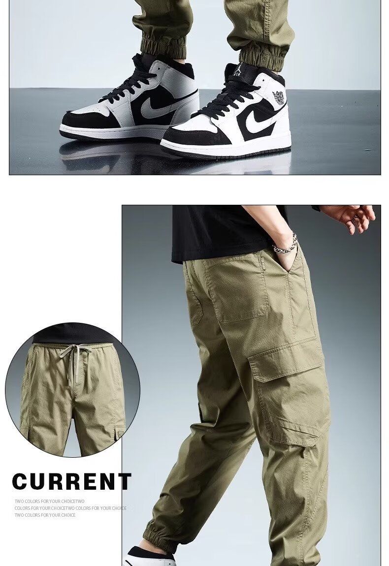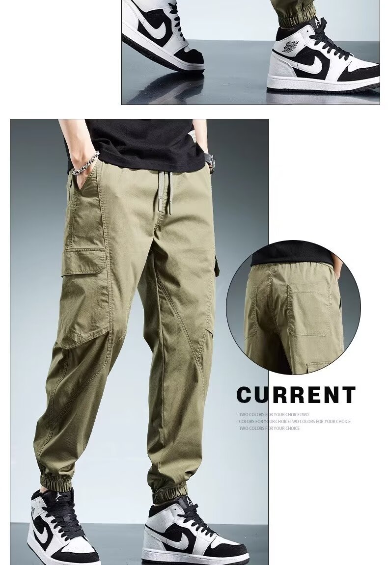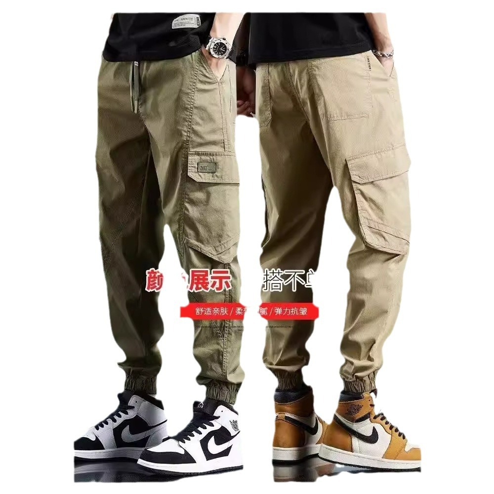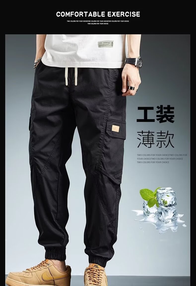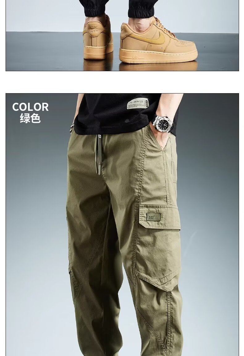 Армейские зеленые комбинезоны для мужчин прилив марки 2024 свободные штаны с девятью очками шнурок Летние тонкие повседневные штаны из ледяного шелка