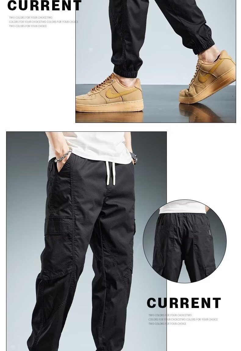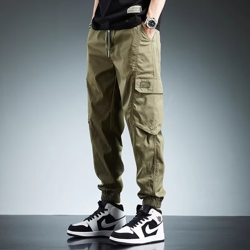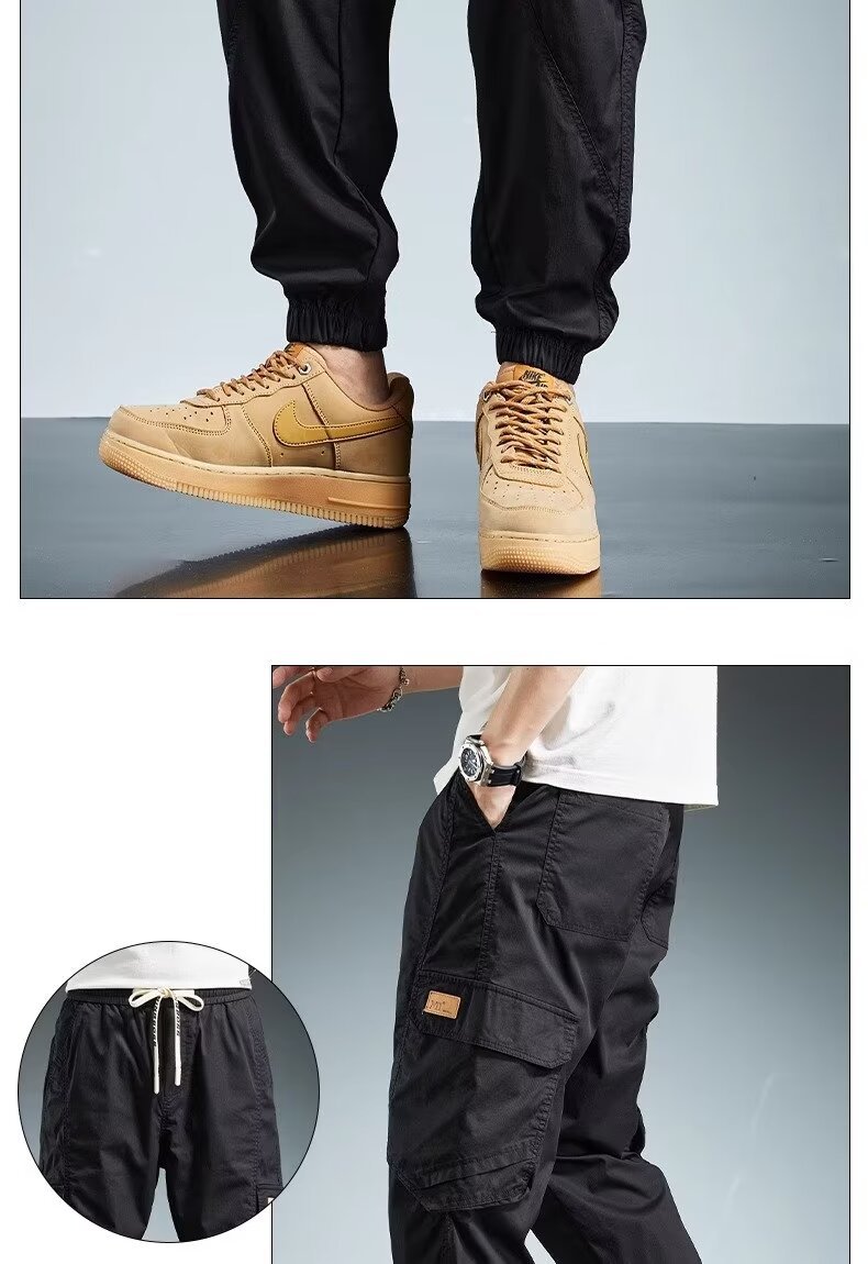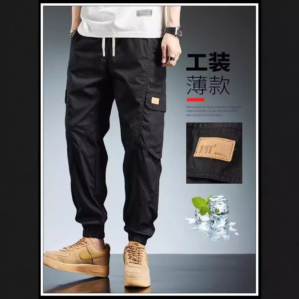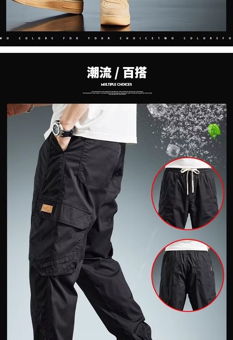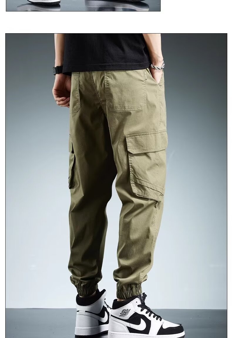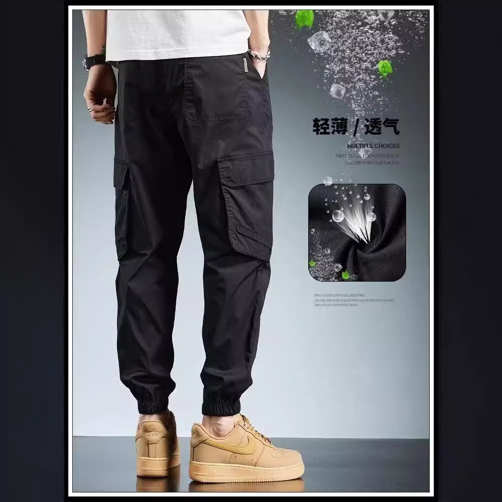 Армейские зеленые комбинезоны для мужчин прилив марки 2024 свободные штаны с девятью очками шнурок Летние тонкие повседневные штаны из ледяного шелка
