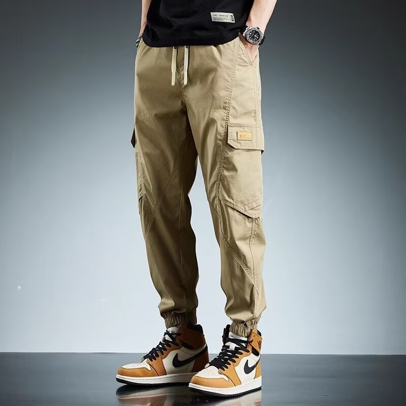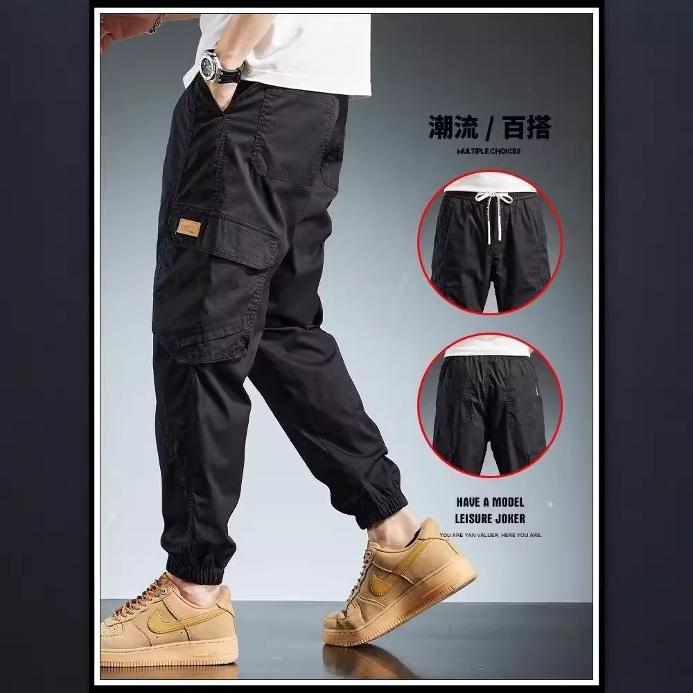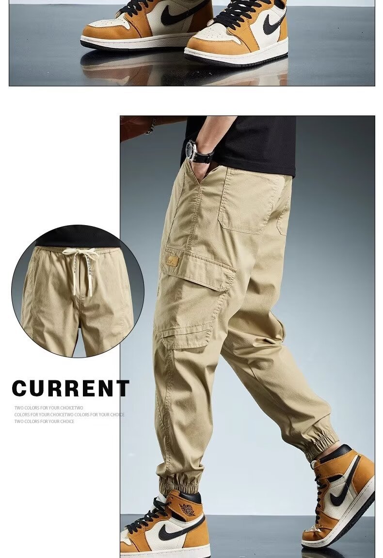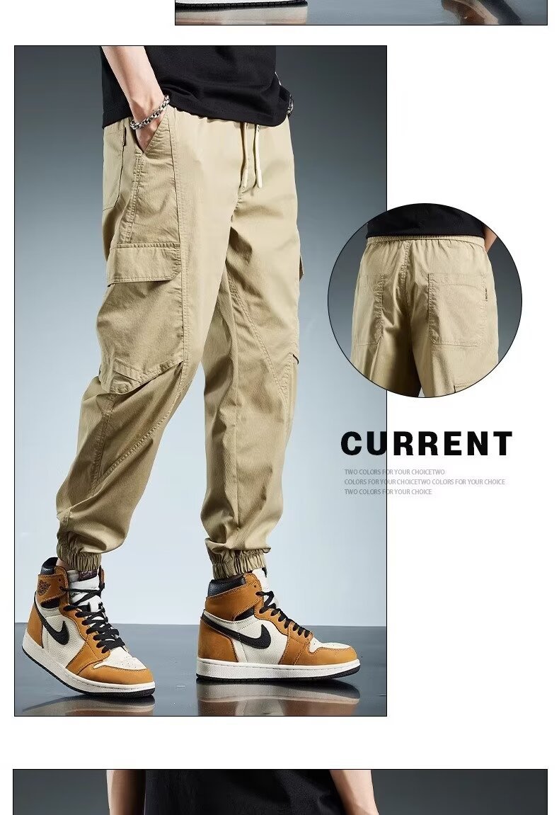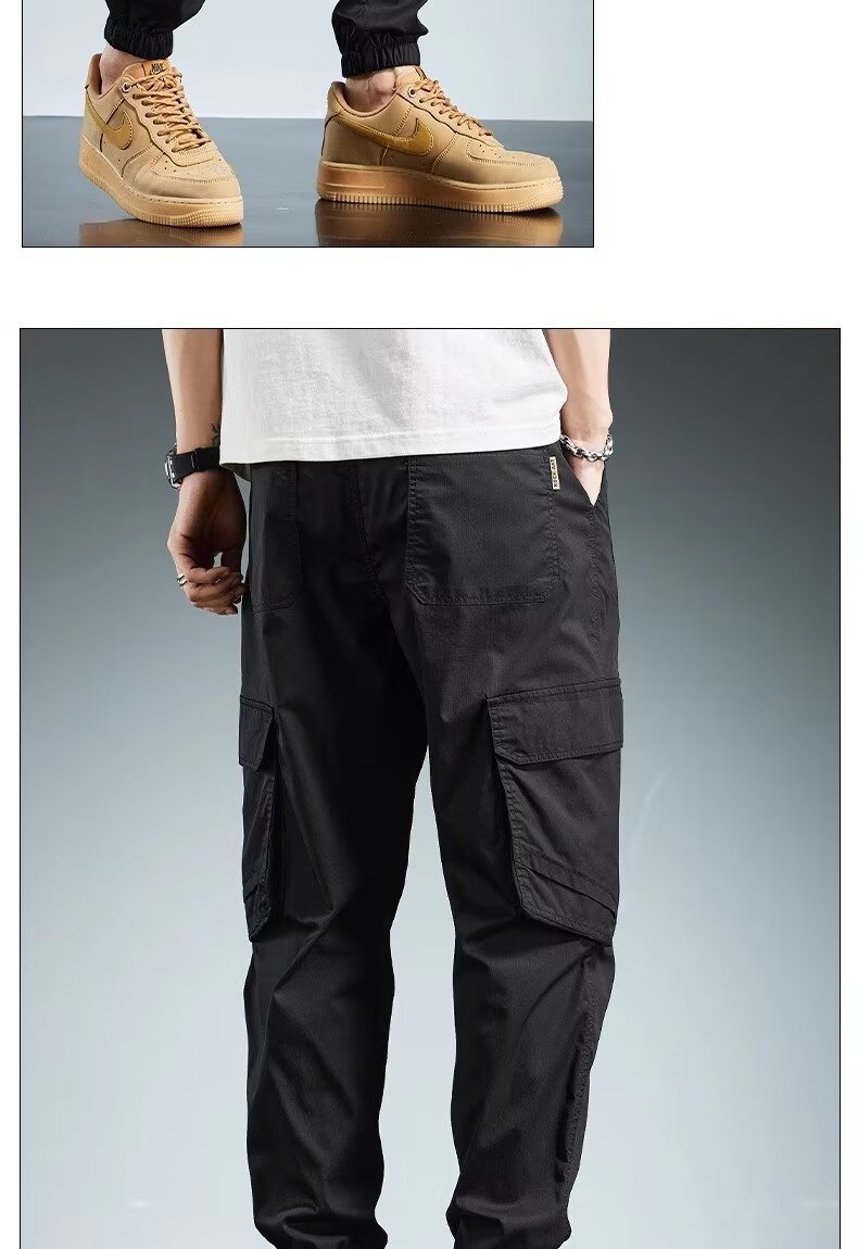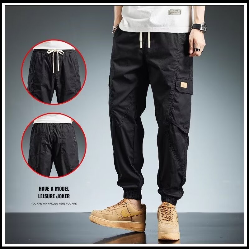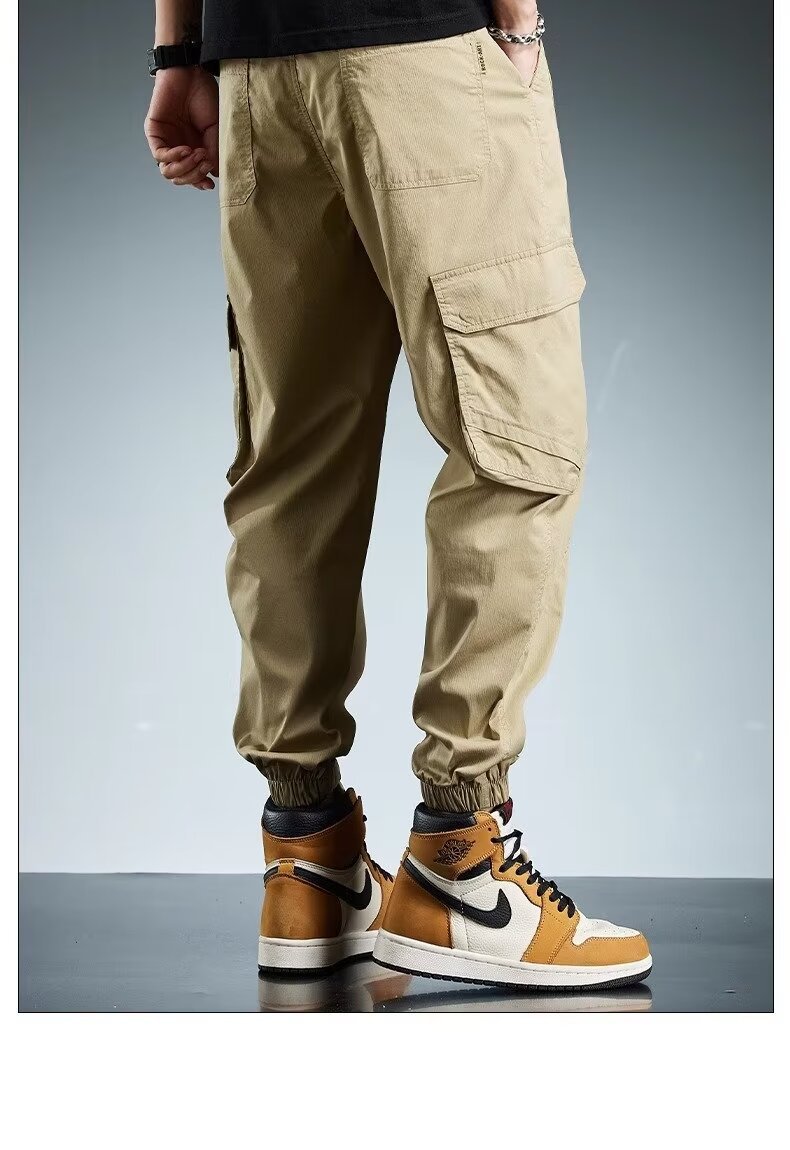 Армейские зеленые комбинезоны для мужчин прилив марки 2024 свободные штаны с девятью очками шнурок Летние тонкие повседневные штаны из ледяного шелка