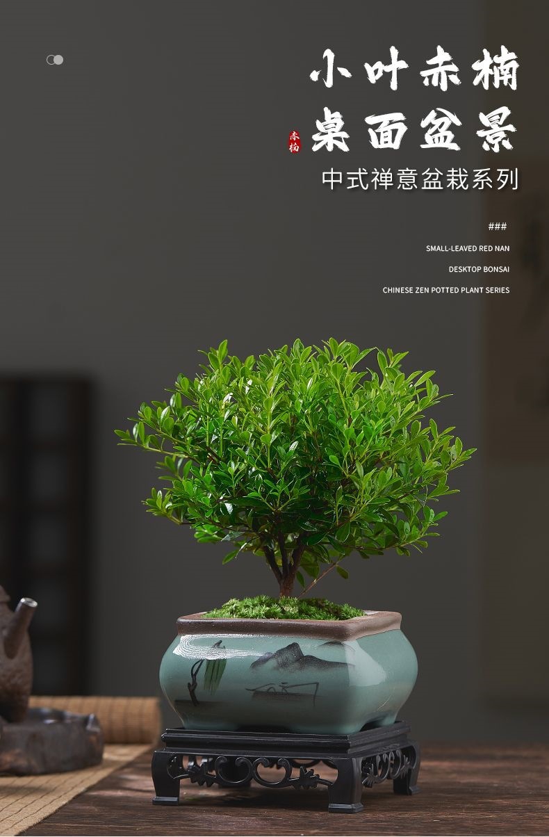 Миниатюрное комнатное растение в горшке из малолистовой красной наны, которое легко ухаживать в любое время года, подходит для офисной зелени.
