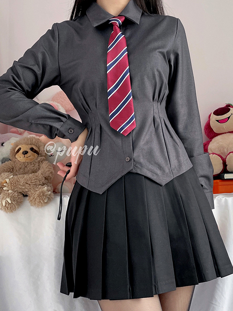JK униформа рубашка женская чистая девушка с длинными рукавами женская школа стиль серый белый рубашка тонкая рубашка