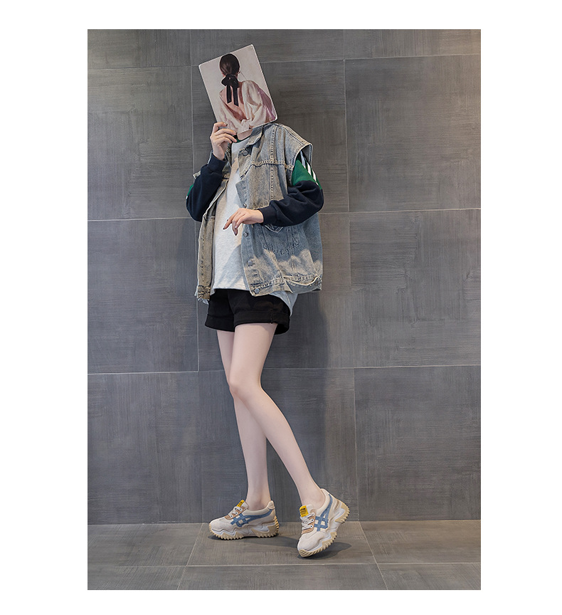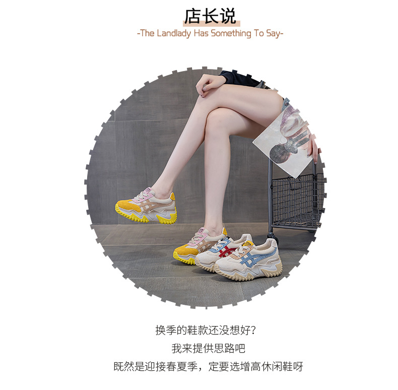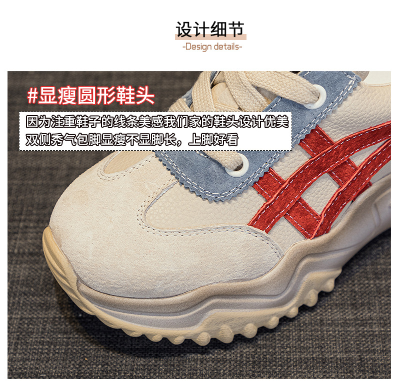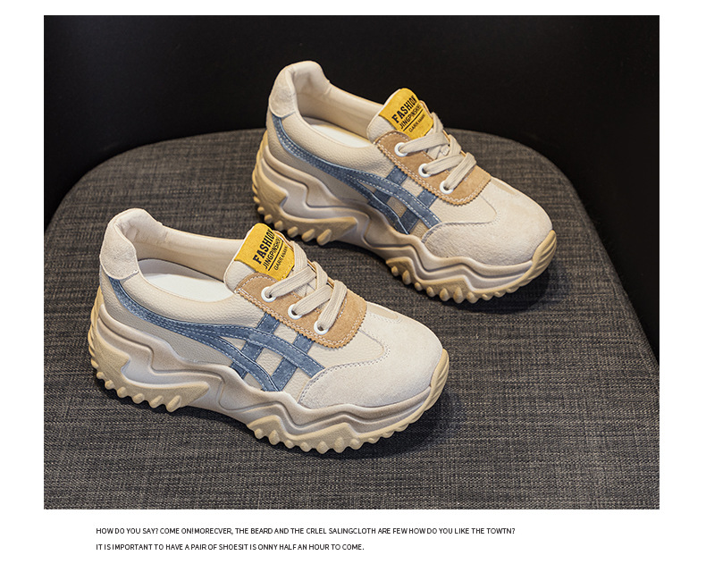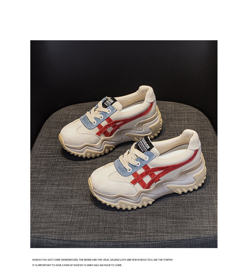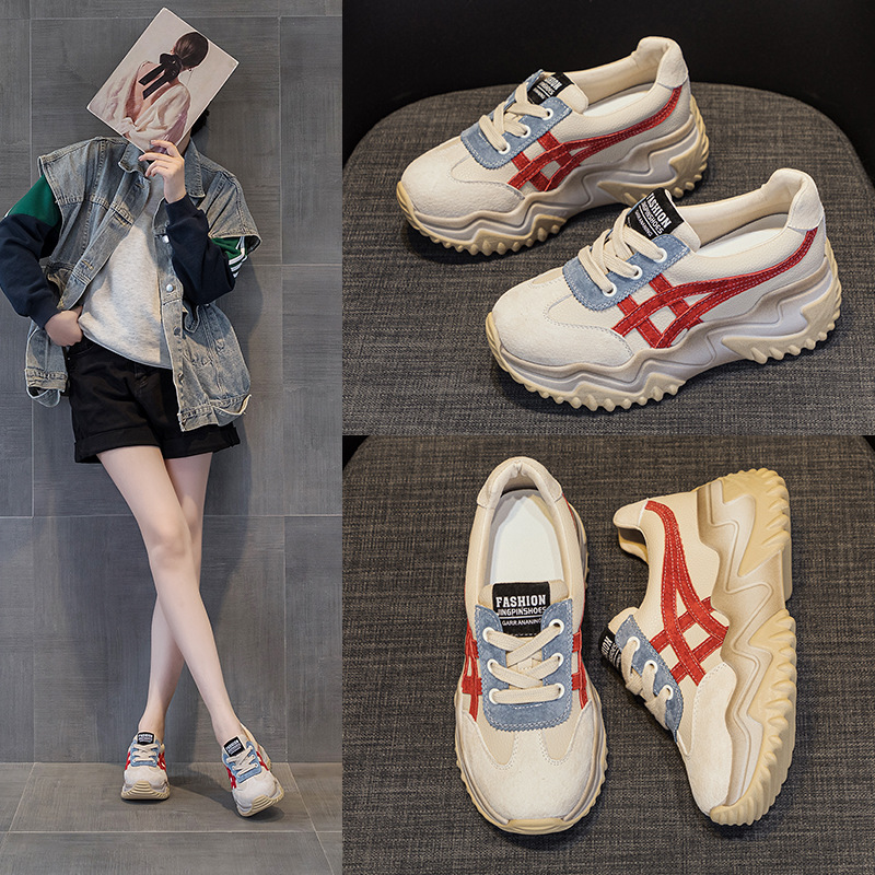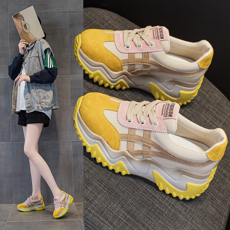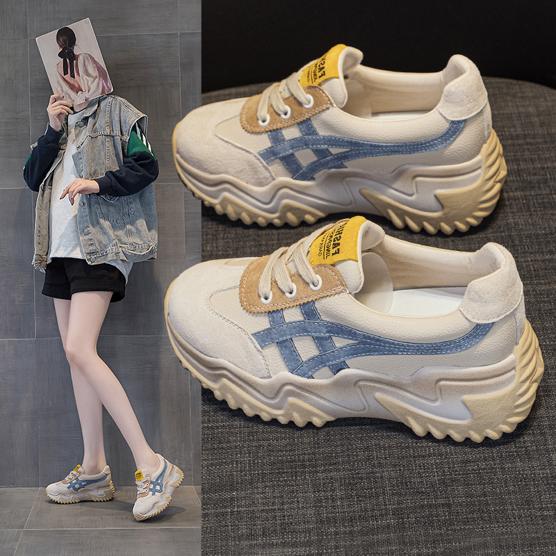 Женские повседневные кроссовки на толстой подошве в корейском стиле, увеличивающие рост, с тонкими ремешками, белые, в стиле колор-блок, для студентов, новинка осени 2024