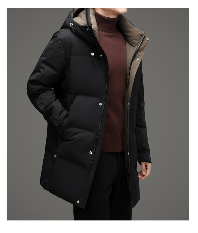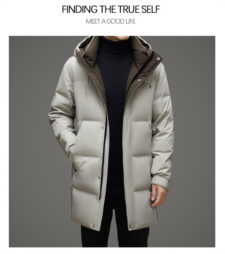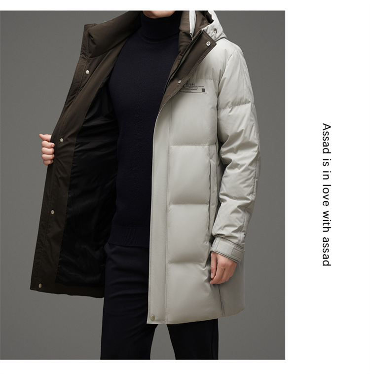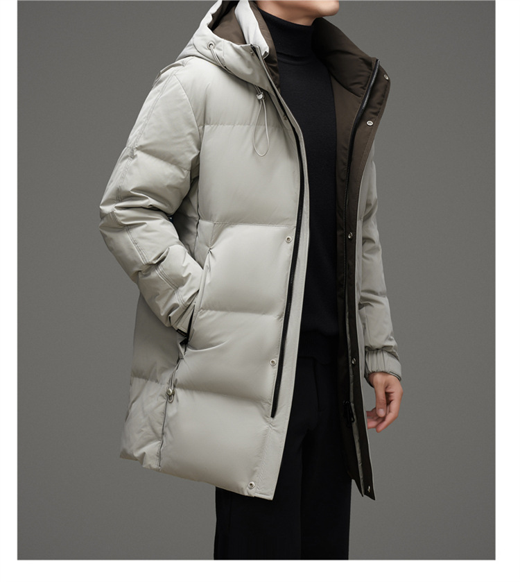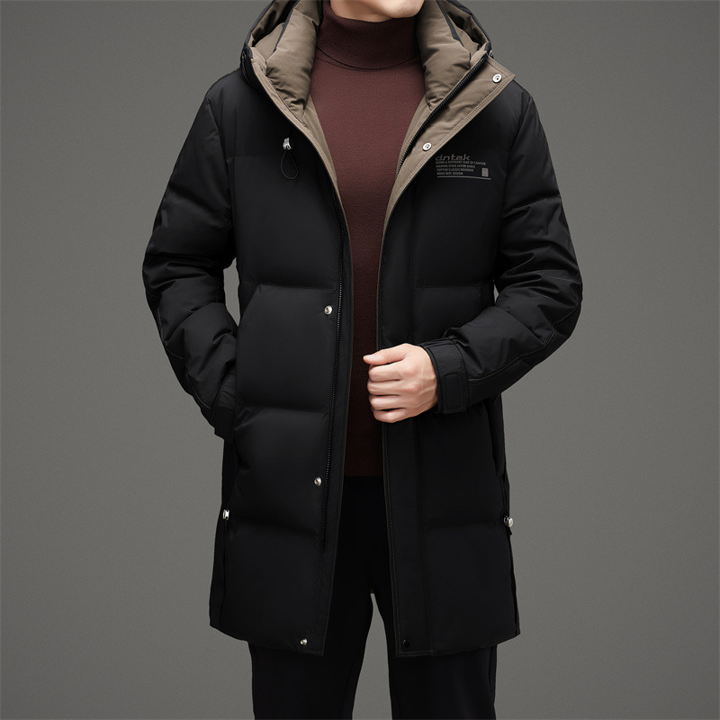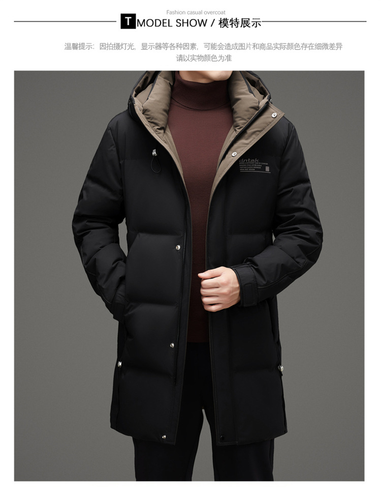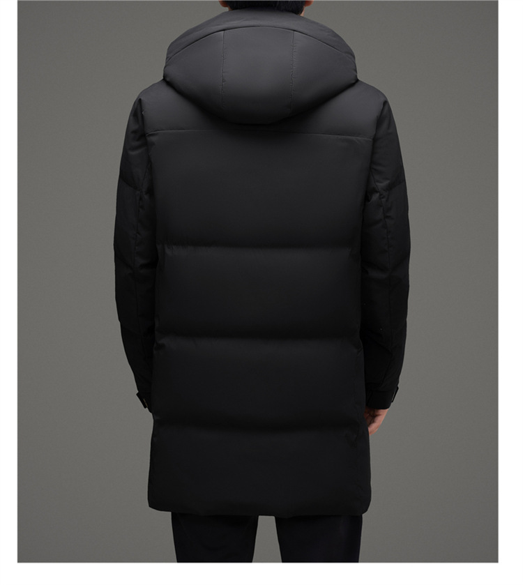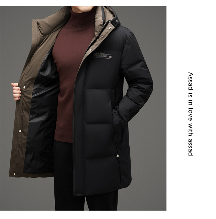 Мужская зимняя пуховая куртка 2025 года, новая модель, с капюшоном, средней длины, утолщенная, теплая, морозостойкая, для мужчин среднего возраста.