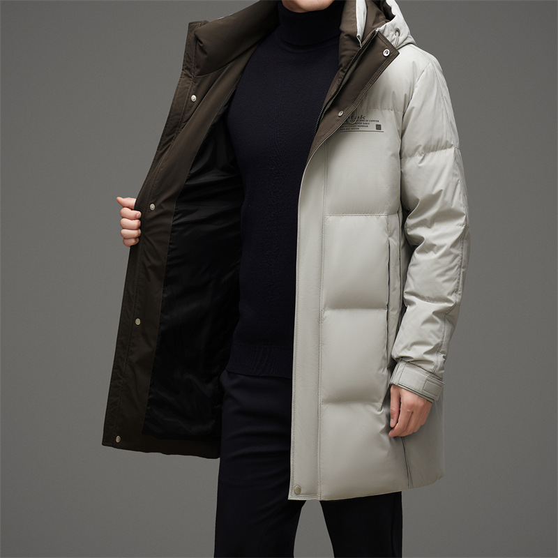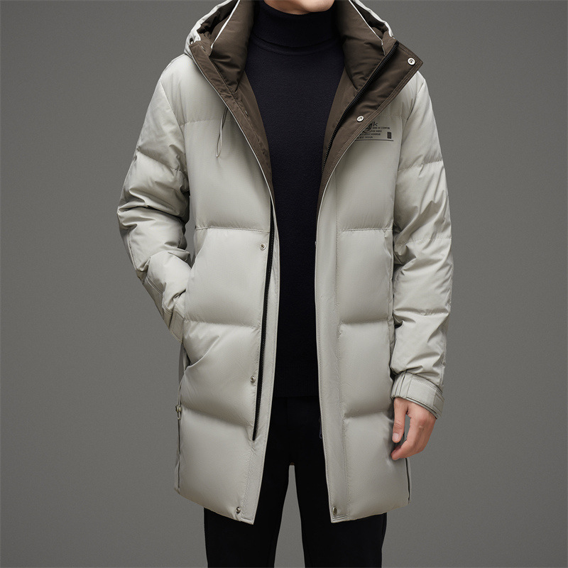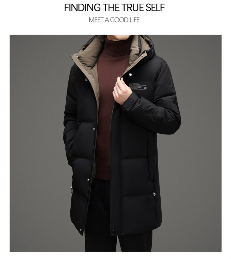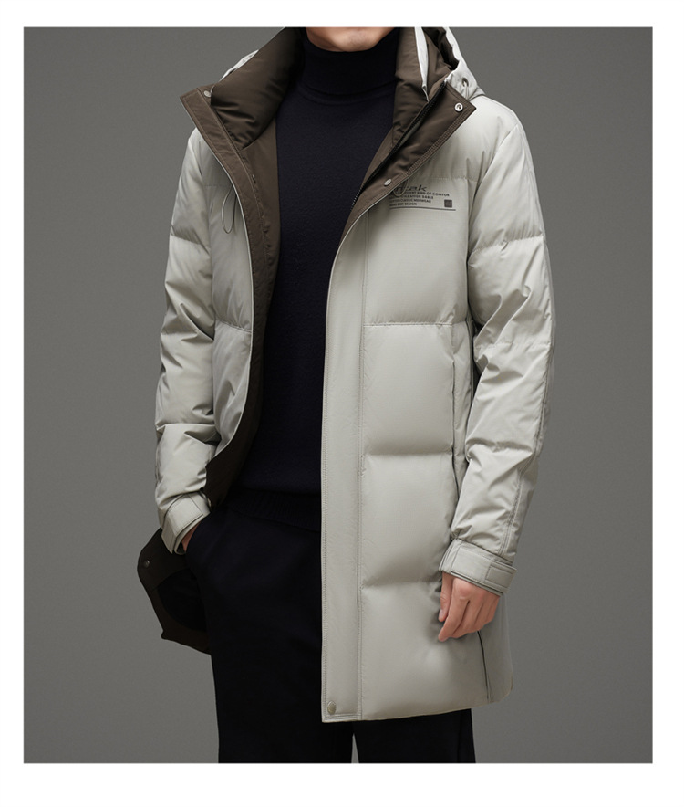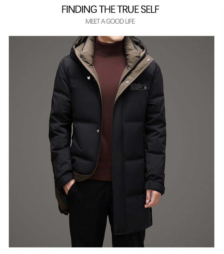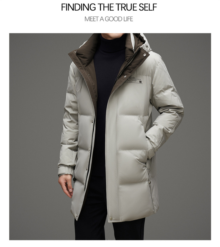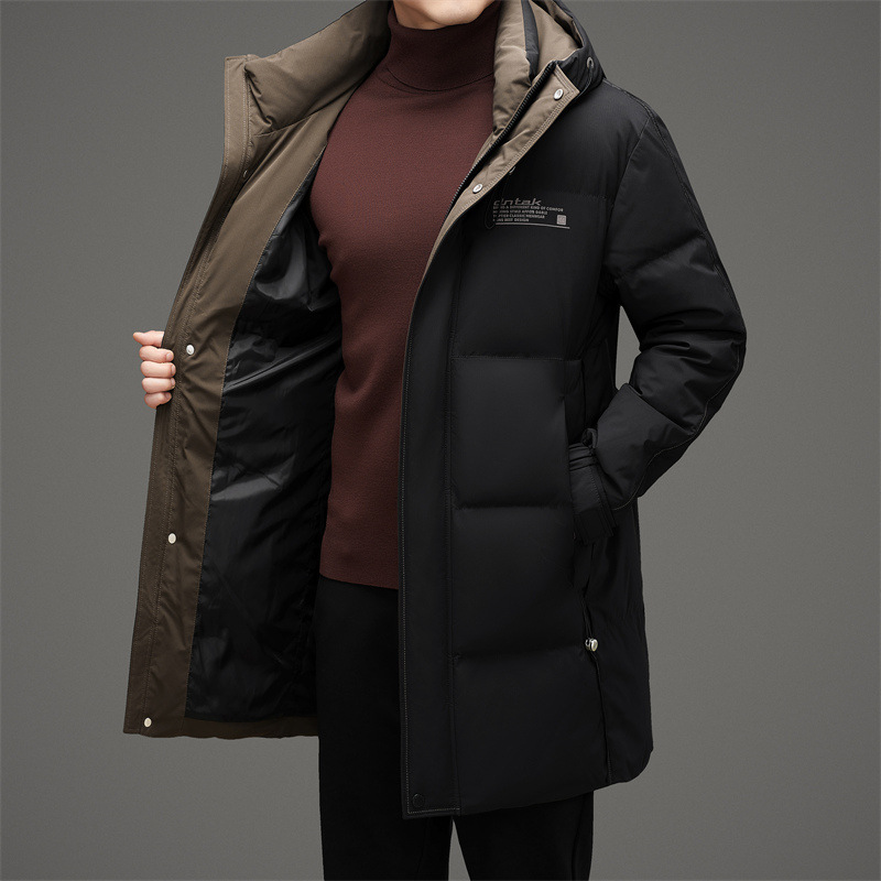 Мужская зимняя пуховая куртка 2025 года, новая модель, с капюшоном, средней длины, утолщенная, теплая, морозостойкая, для мужчин среднего возраста.