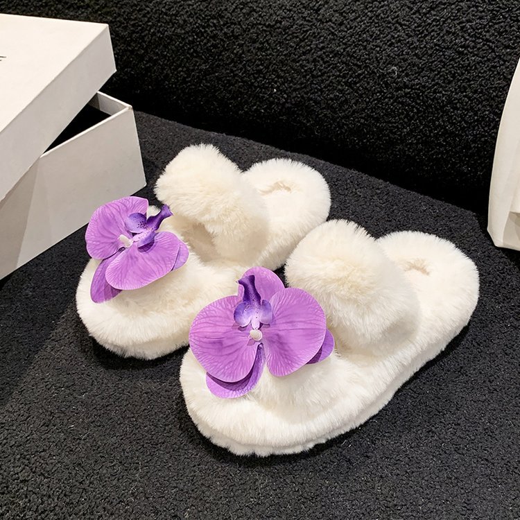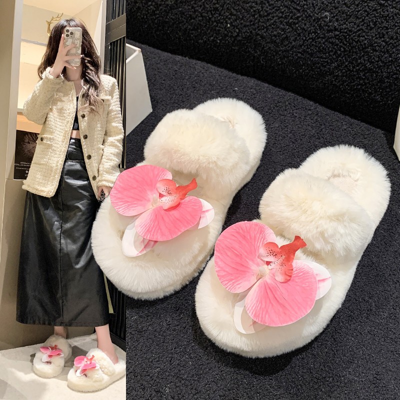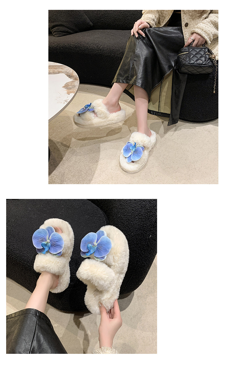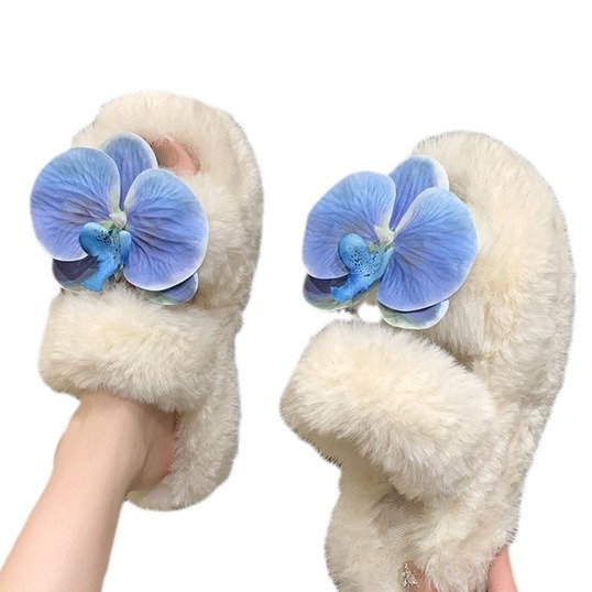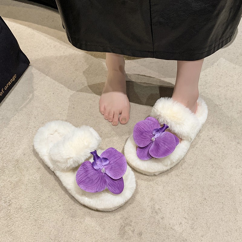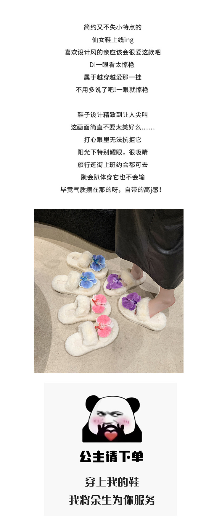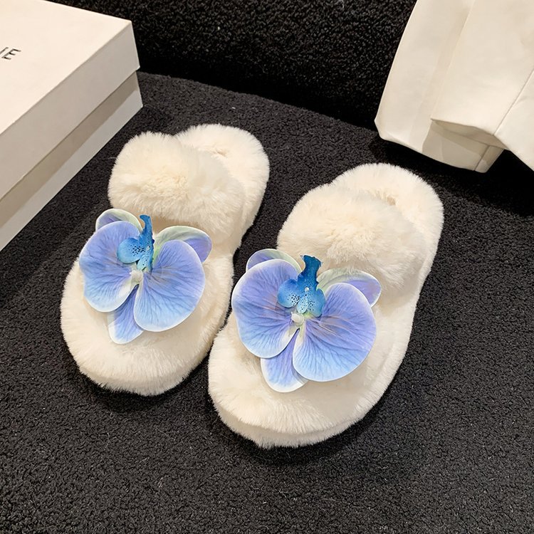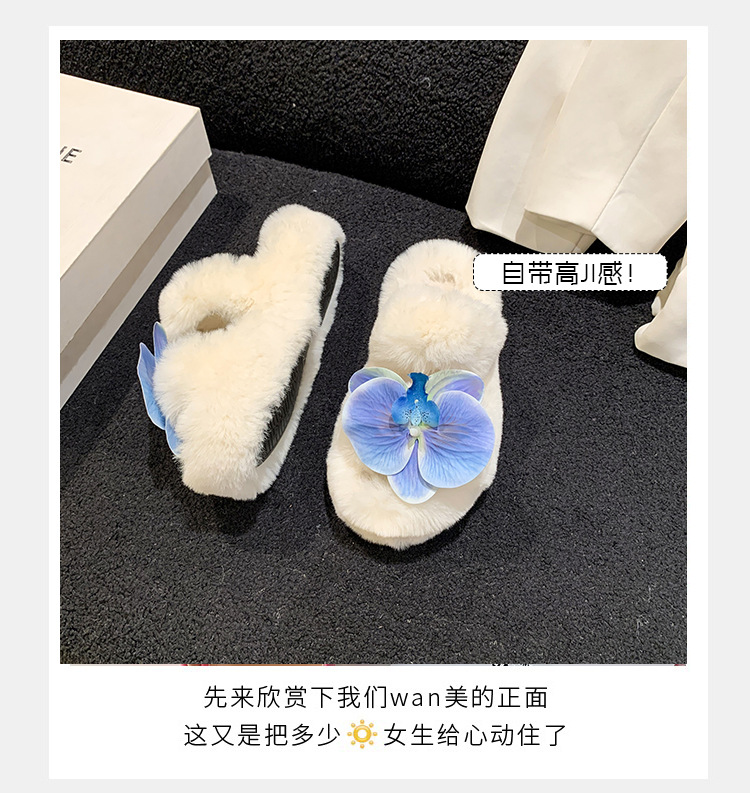Градиентные цветы шерстяные тапочки женские наружные носить 2024 осень-зима новая мода дома параллельные брусья теплые плюшевые тапочки прилив
