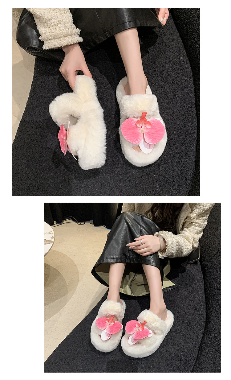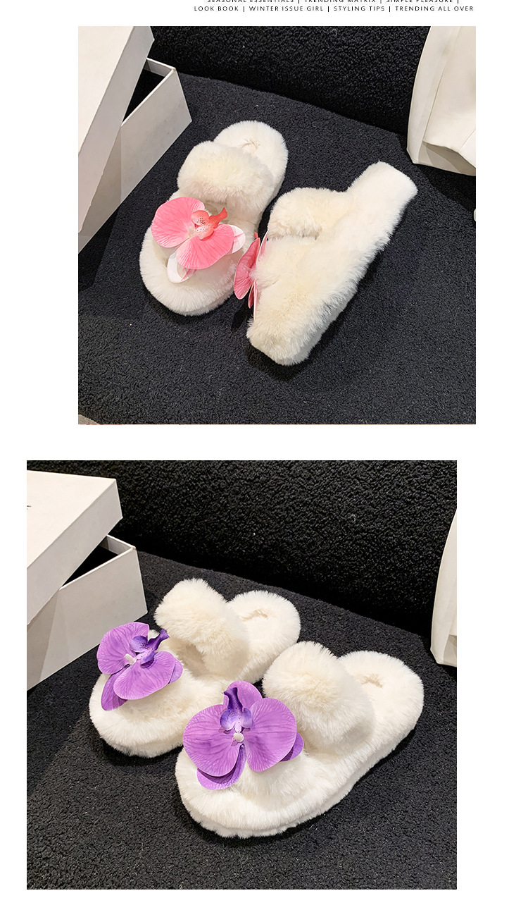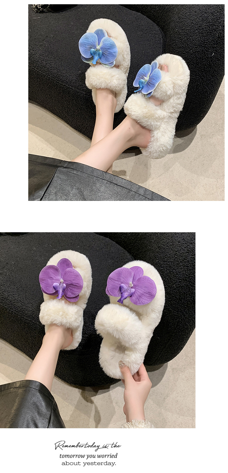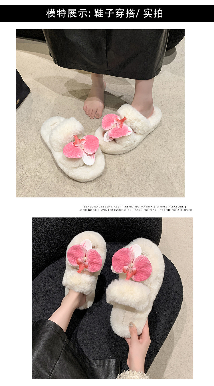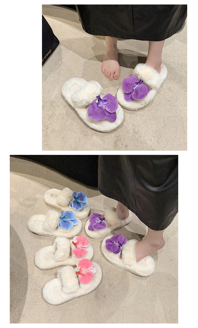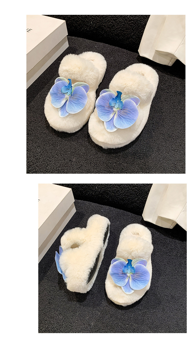 Градиентные цветы шерстяные тапочки женские наружные носить 2024 осень-зима новая мода дома параллельные брусья теплые плюшевые тапочки прилив