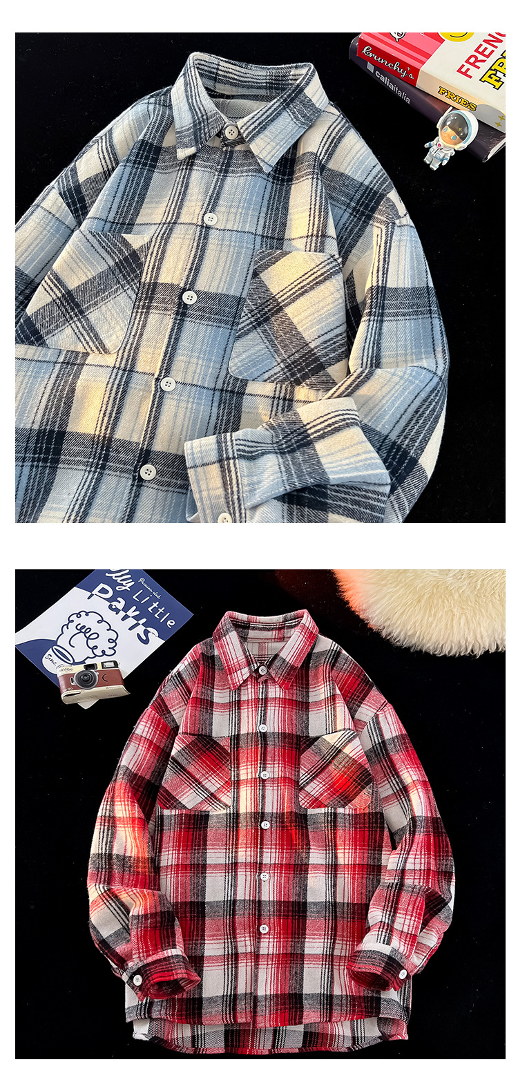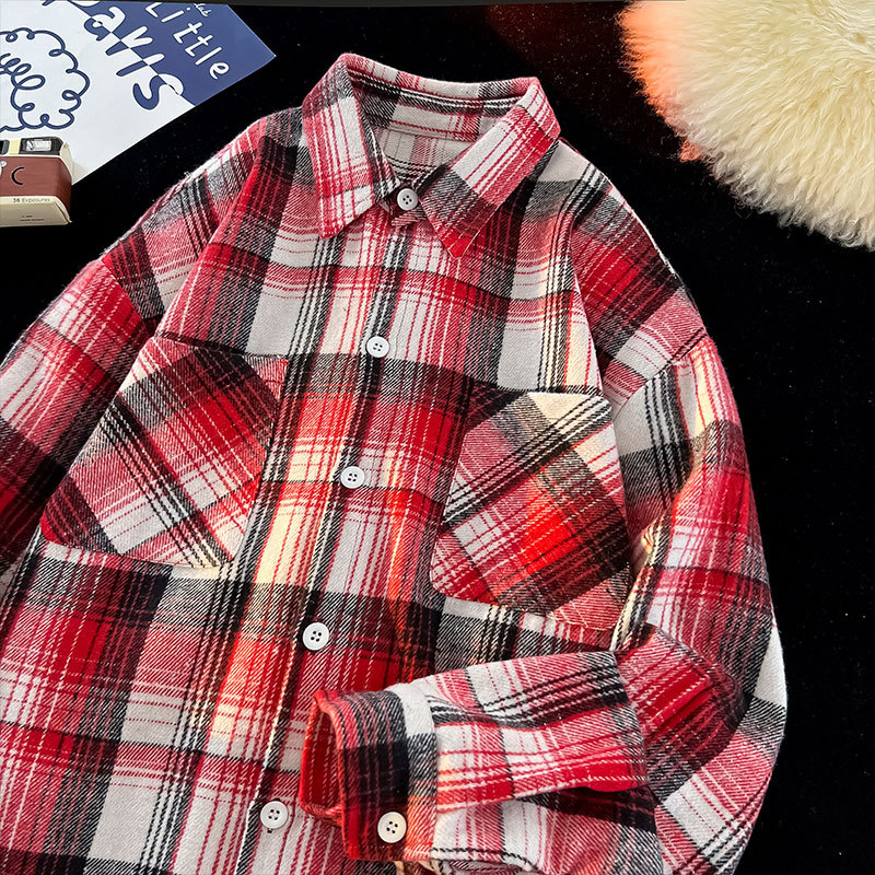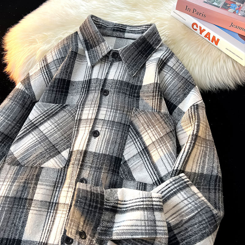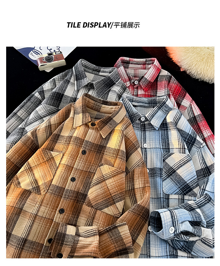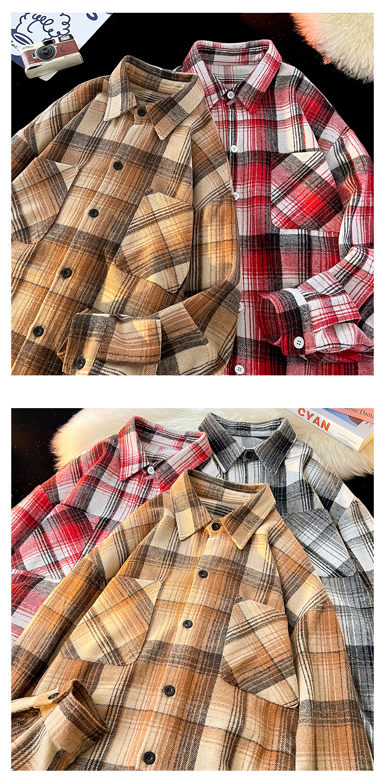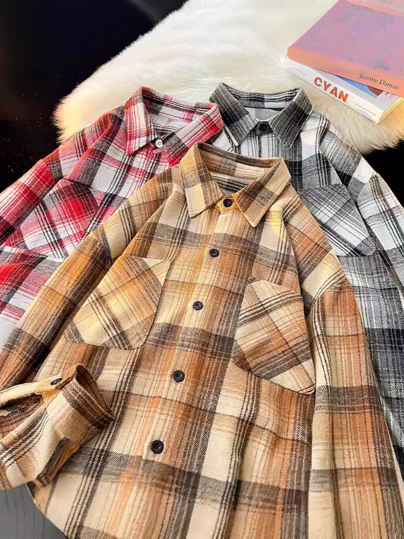 2024 осень и зима портовый стиль шлифовальные рубашки в клетку рубашки свободные мужские и женские рубашки дикие повседневные рубашки оптом