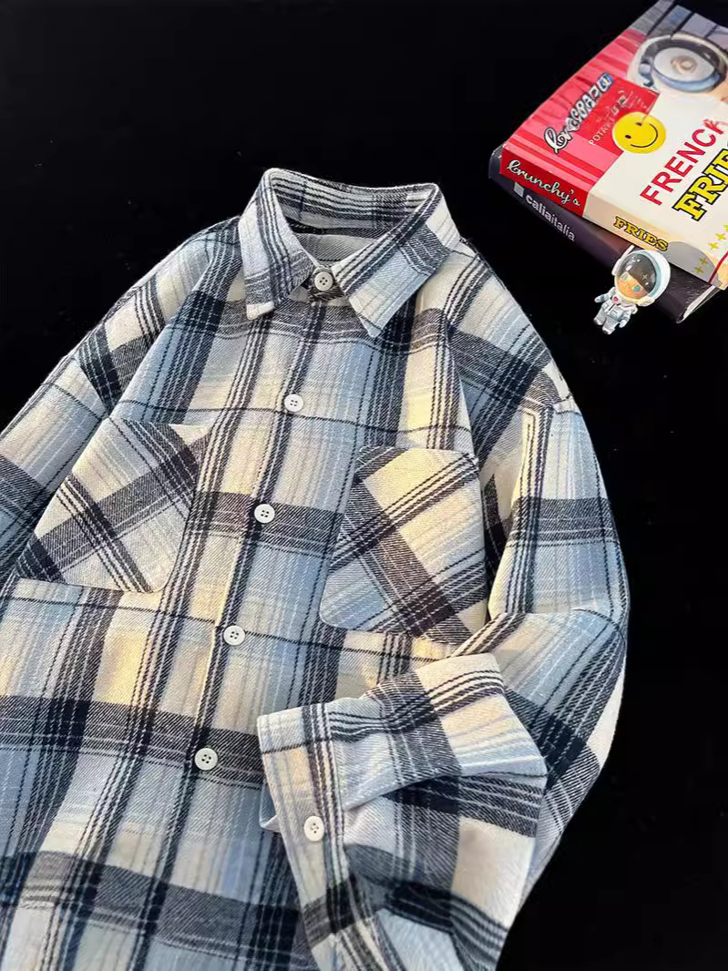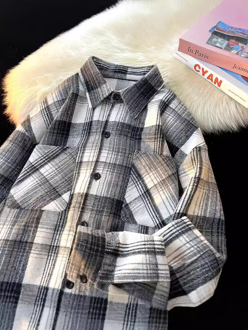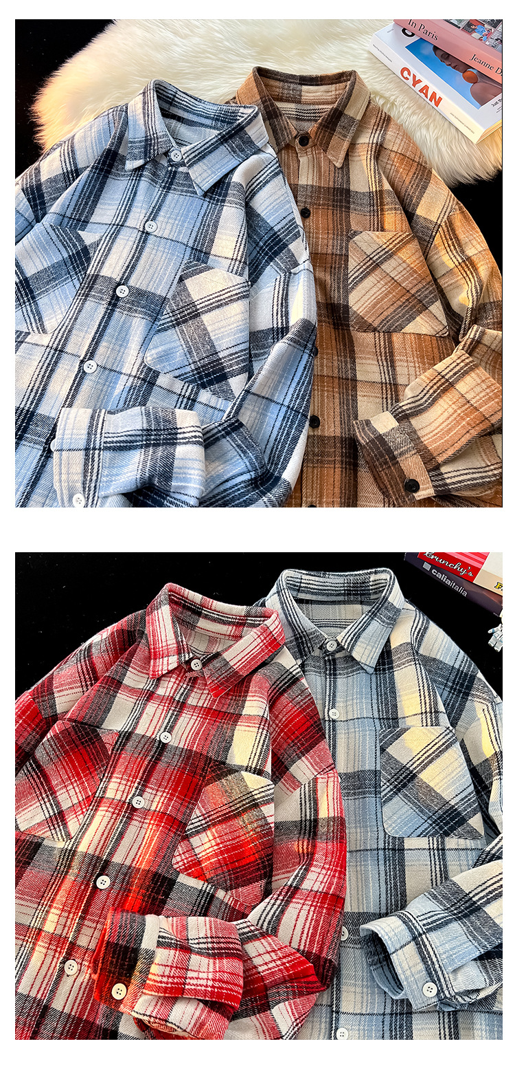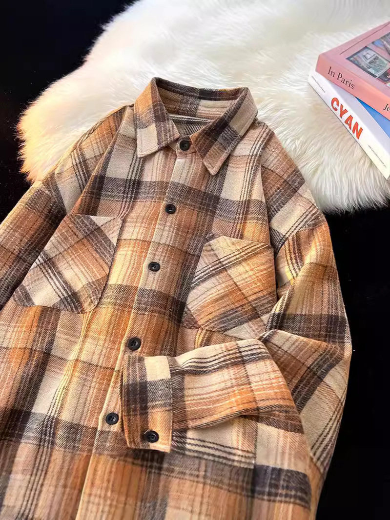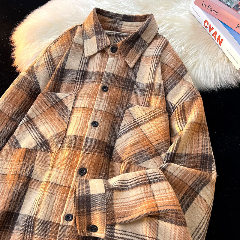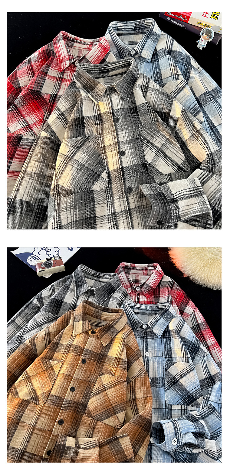2024 осень и зима портовый стиль шлифовальные рубашки в клетку рубашки свободные мужские и женские рубашки дикие повседневные рубашки оптом