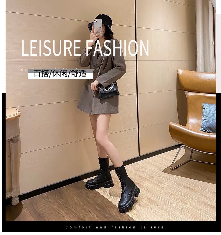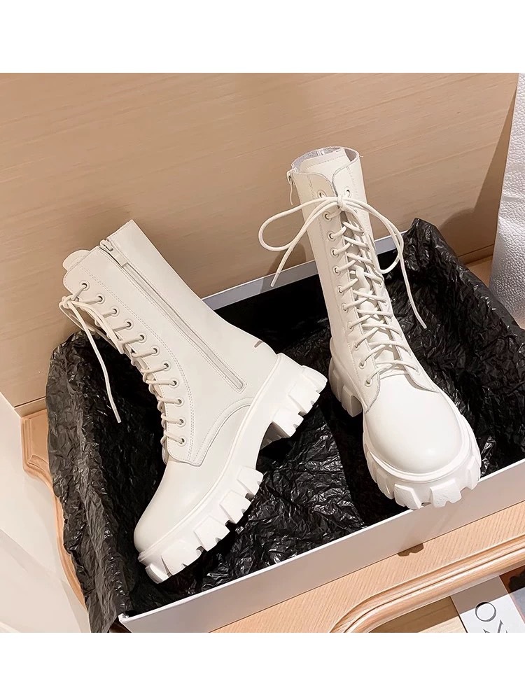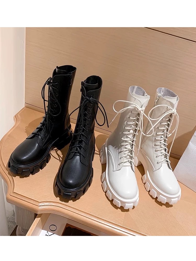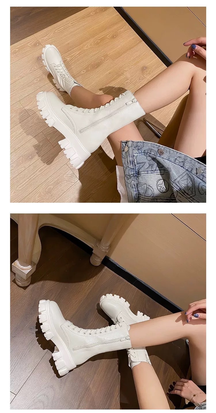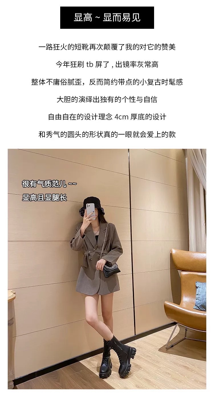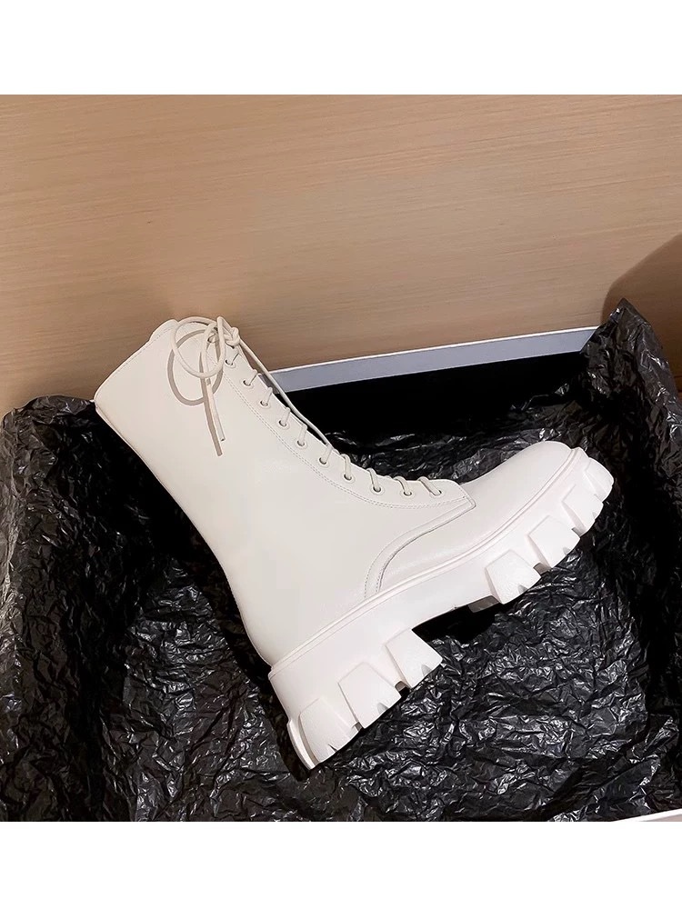 Ботинки Мартин с увеличенной высотой подошвы для женщин небольшого роста, новинка 2025 года, из мягкой кожи, на толстой подошве, весенне-осенние, в британском стиле, черные короткие ботинки.
