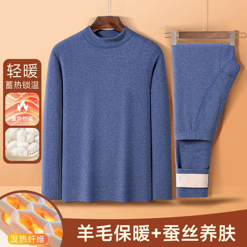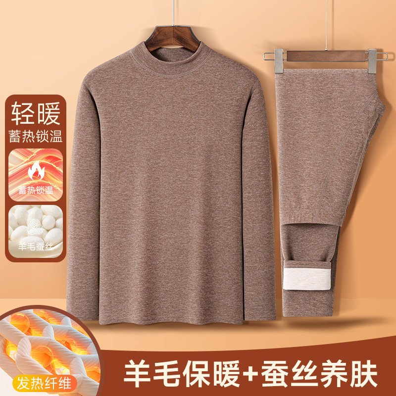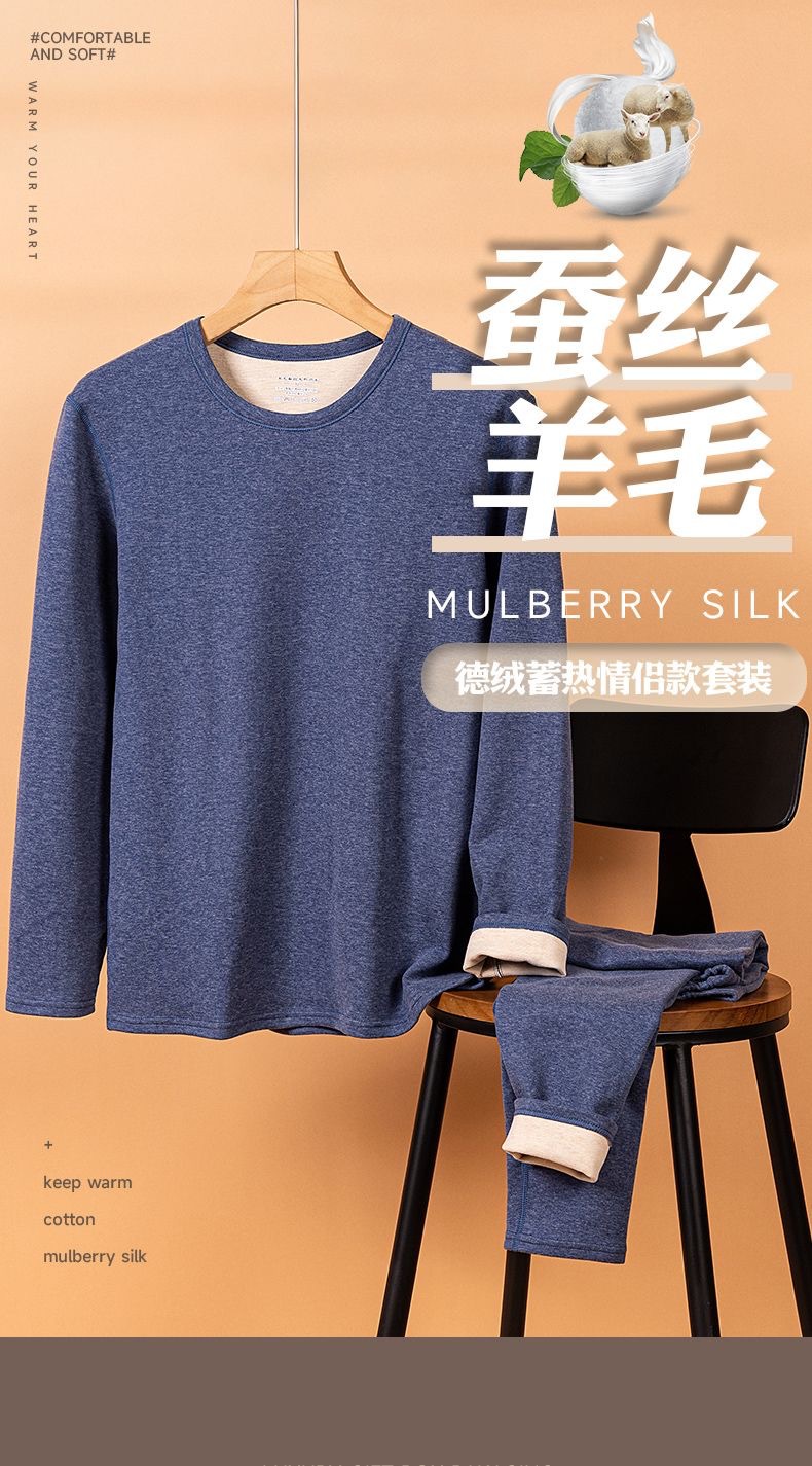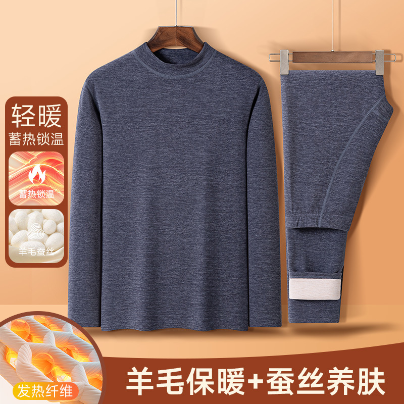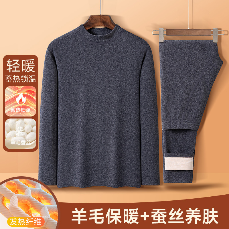 Шерстяной шелк утолщенный мужской комплект термобелья