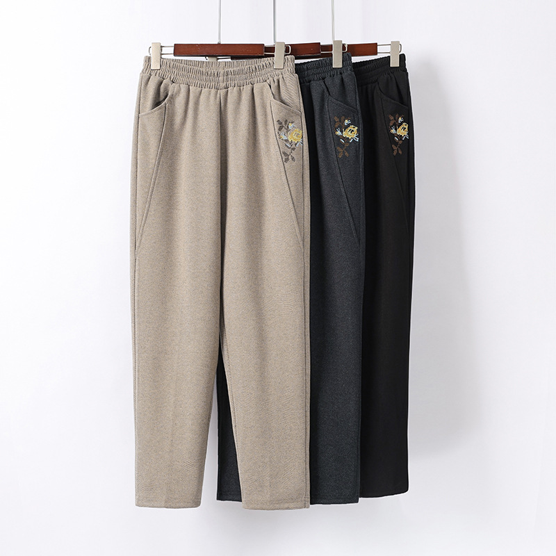2024 Национальный стиль мама наряд новые китайские жаккардовые широкие брюки среднего и пожилого возраста эластые брюки темперамент повседневные брюки