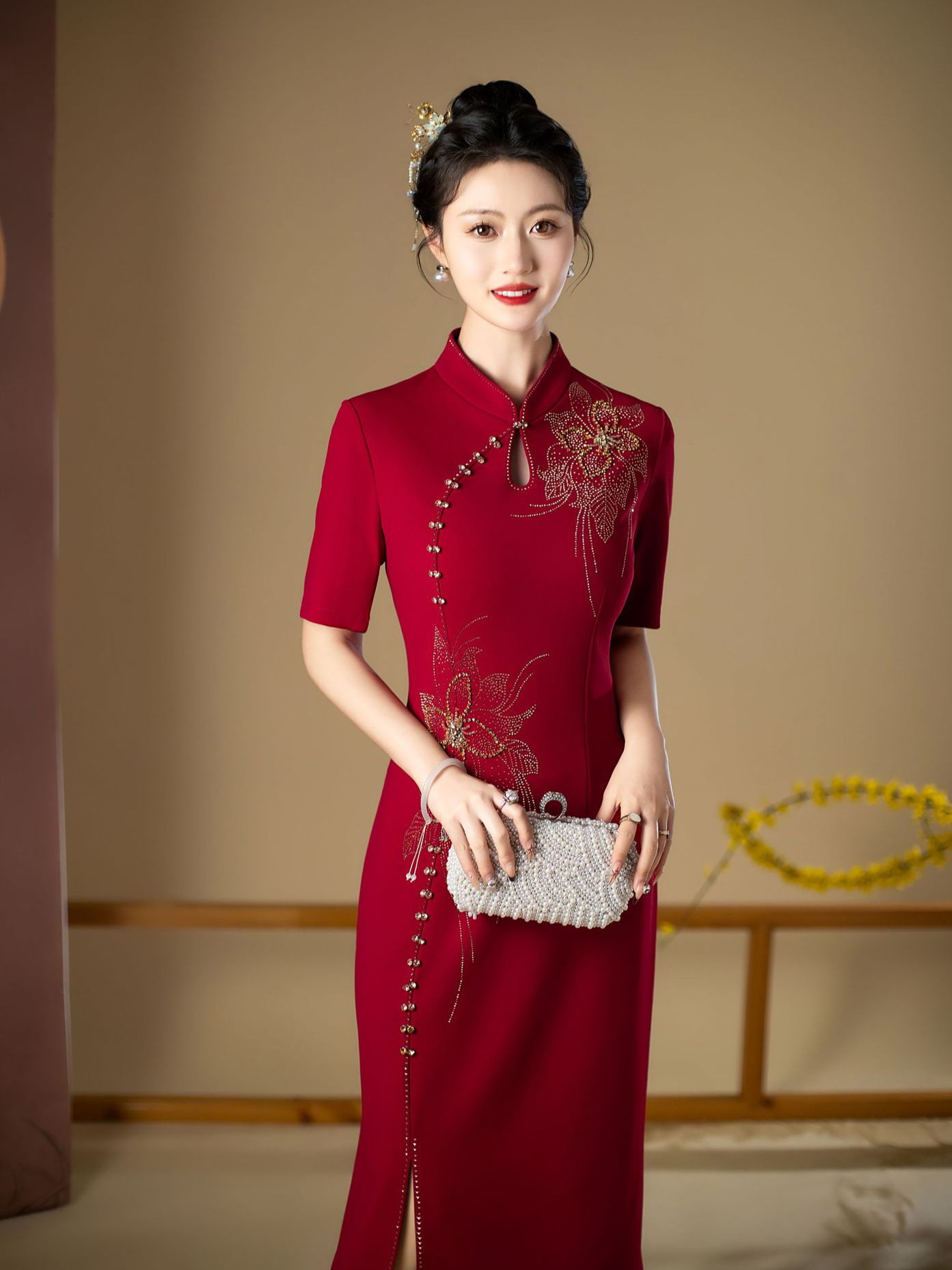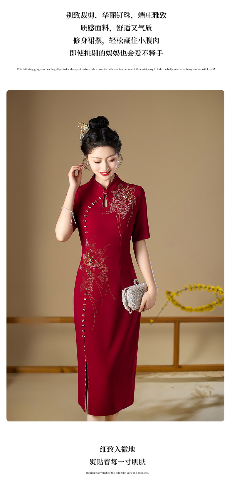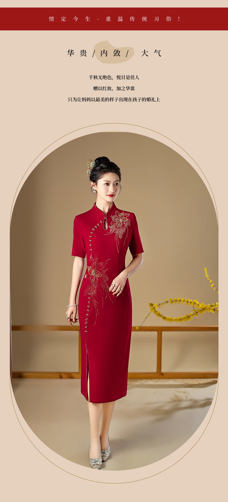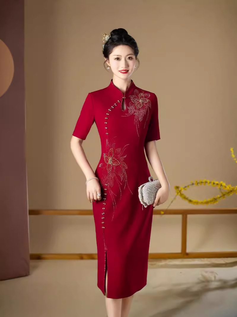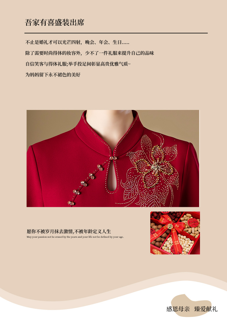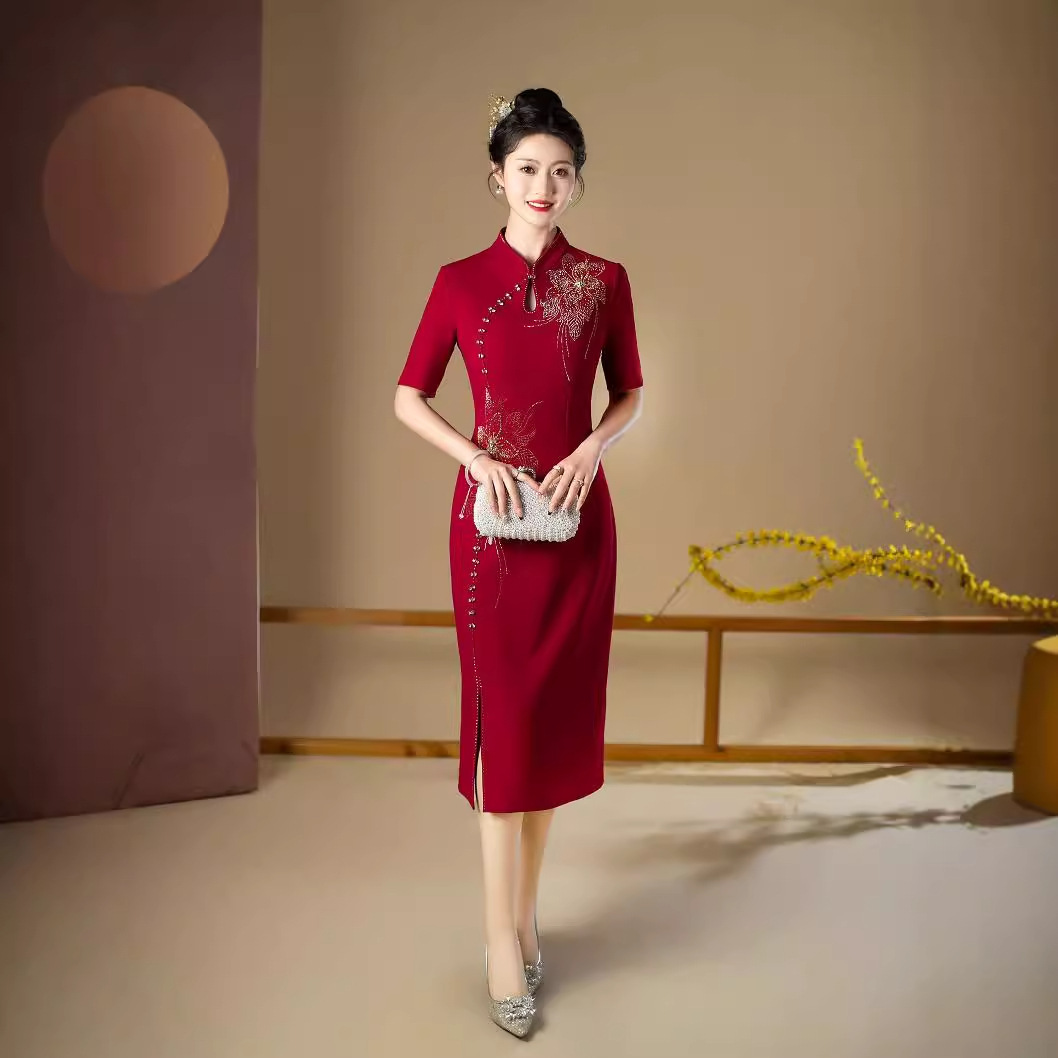 Новый стиль свадебного банкета мама свадебное платье свекровь cheongsam высокого класса 2024 новый благородный костюм среднего рукава cheongsam