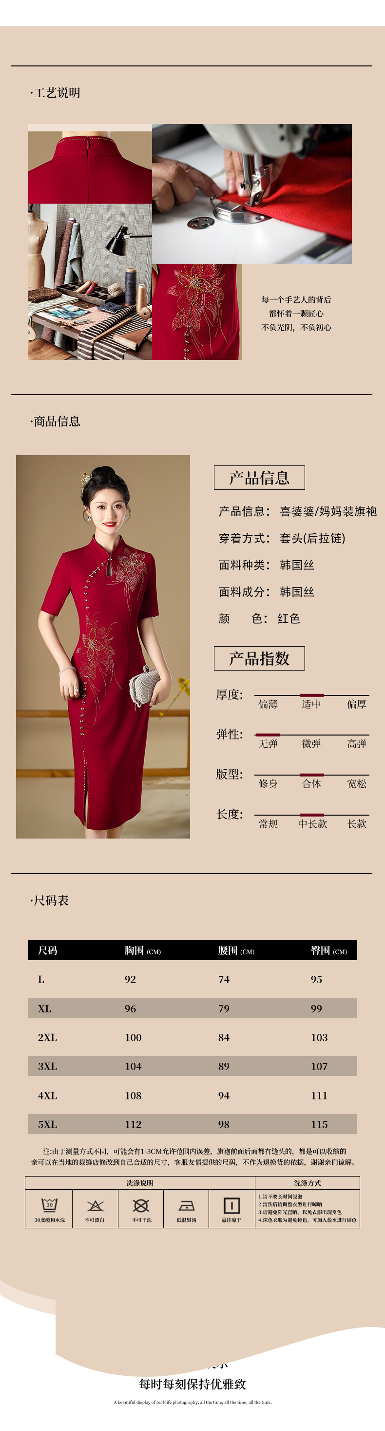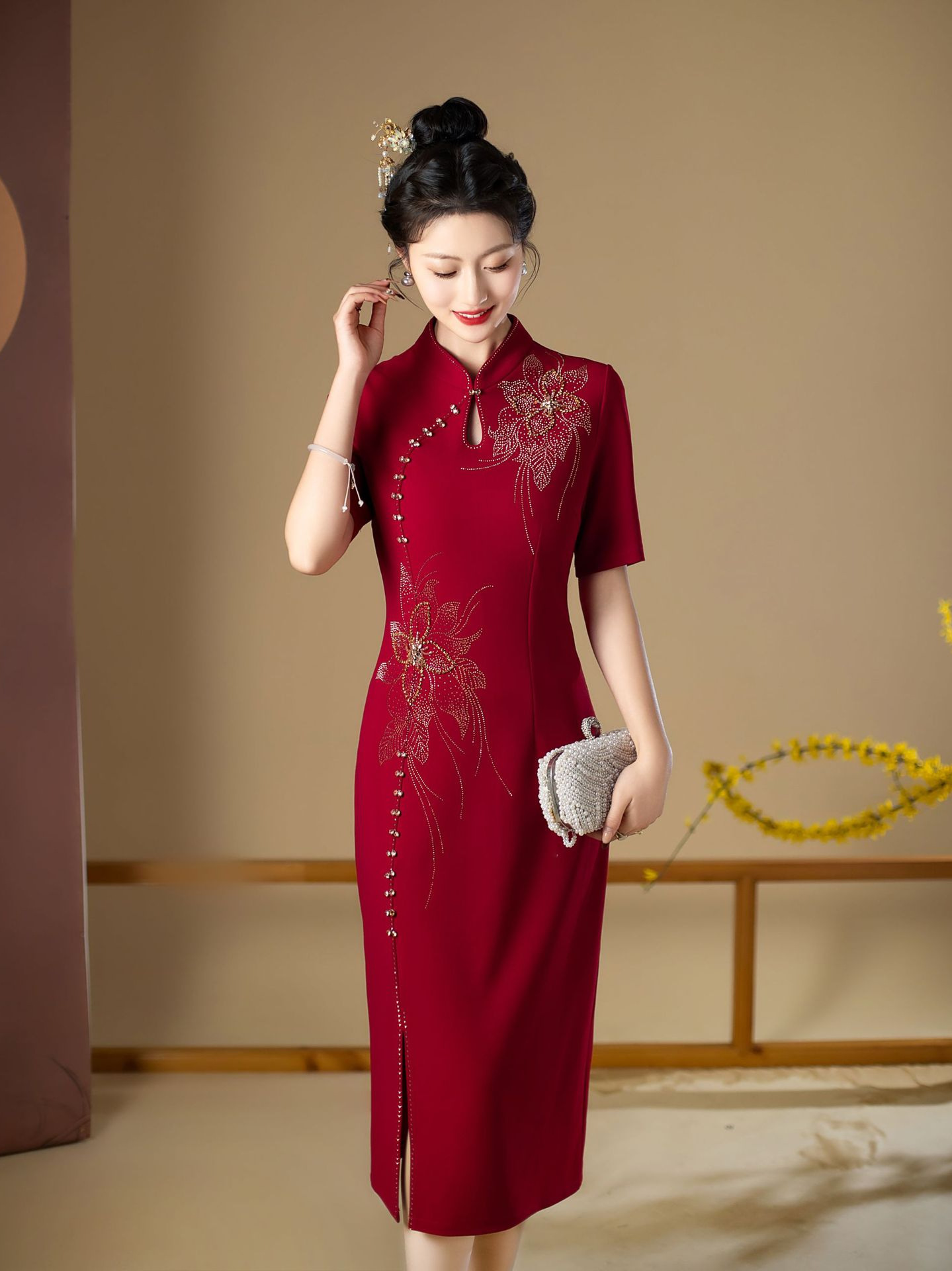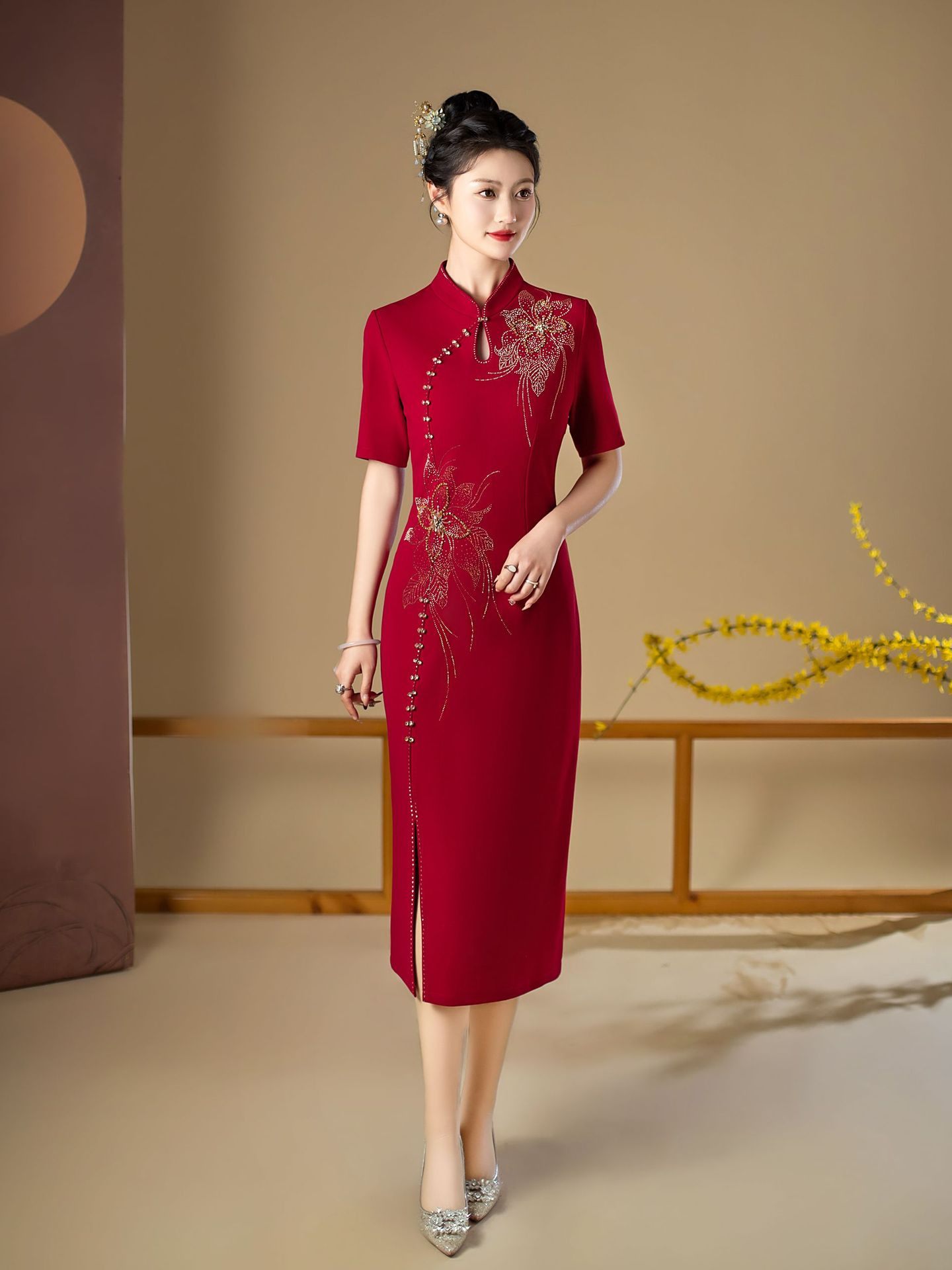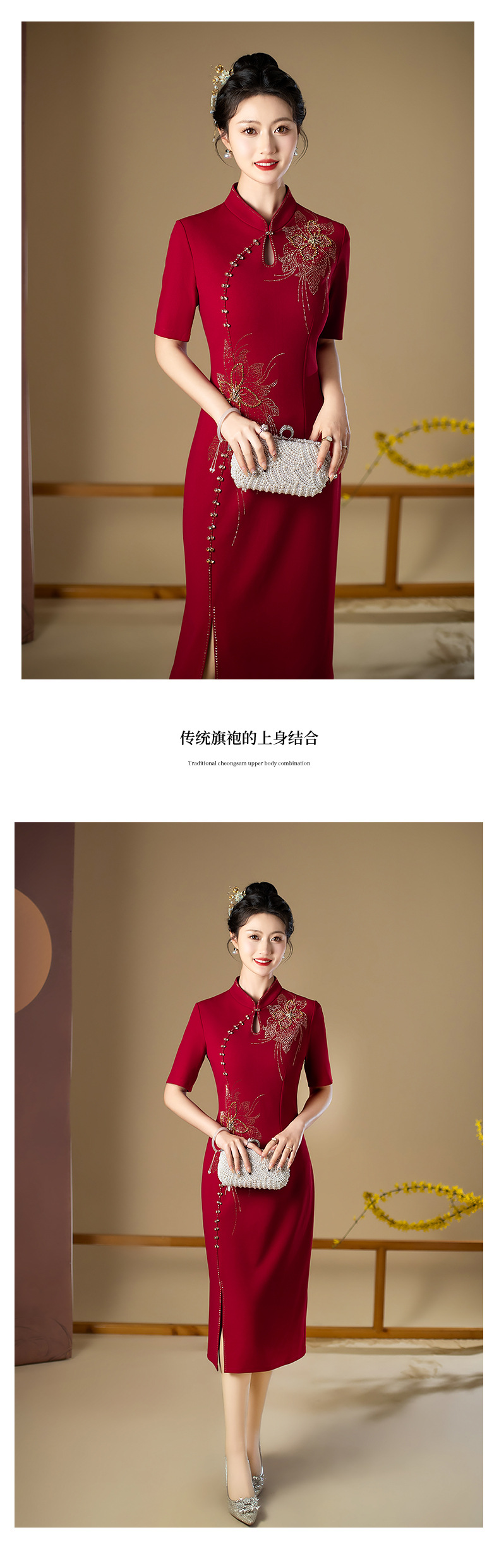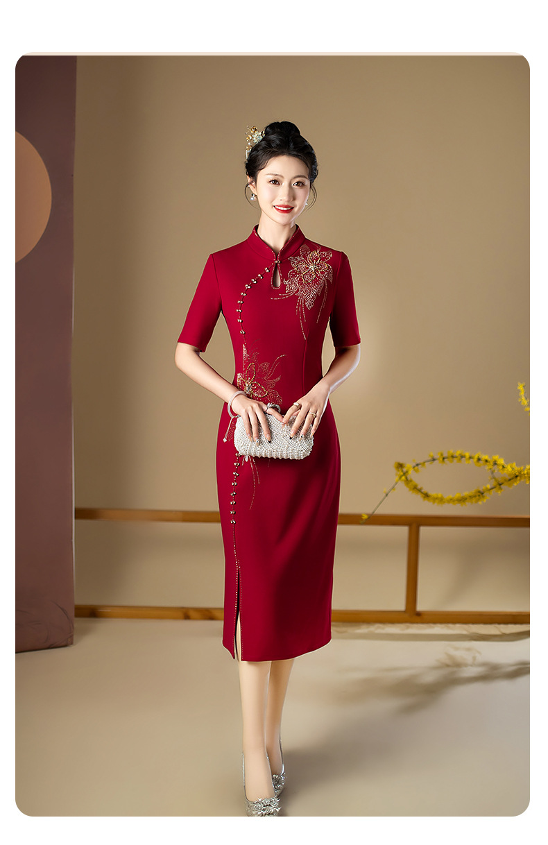 Новый стиль свадебного банкета мама свадебное платье свекровь cheongsam высокого класса 2024 новый благородный костюм среднего рукава cheongsam