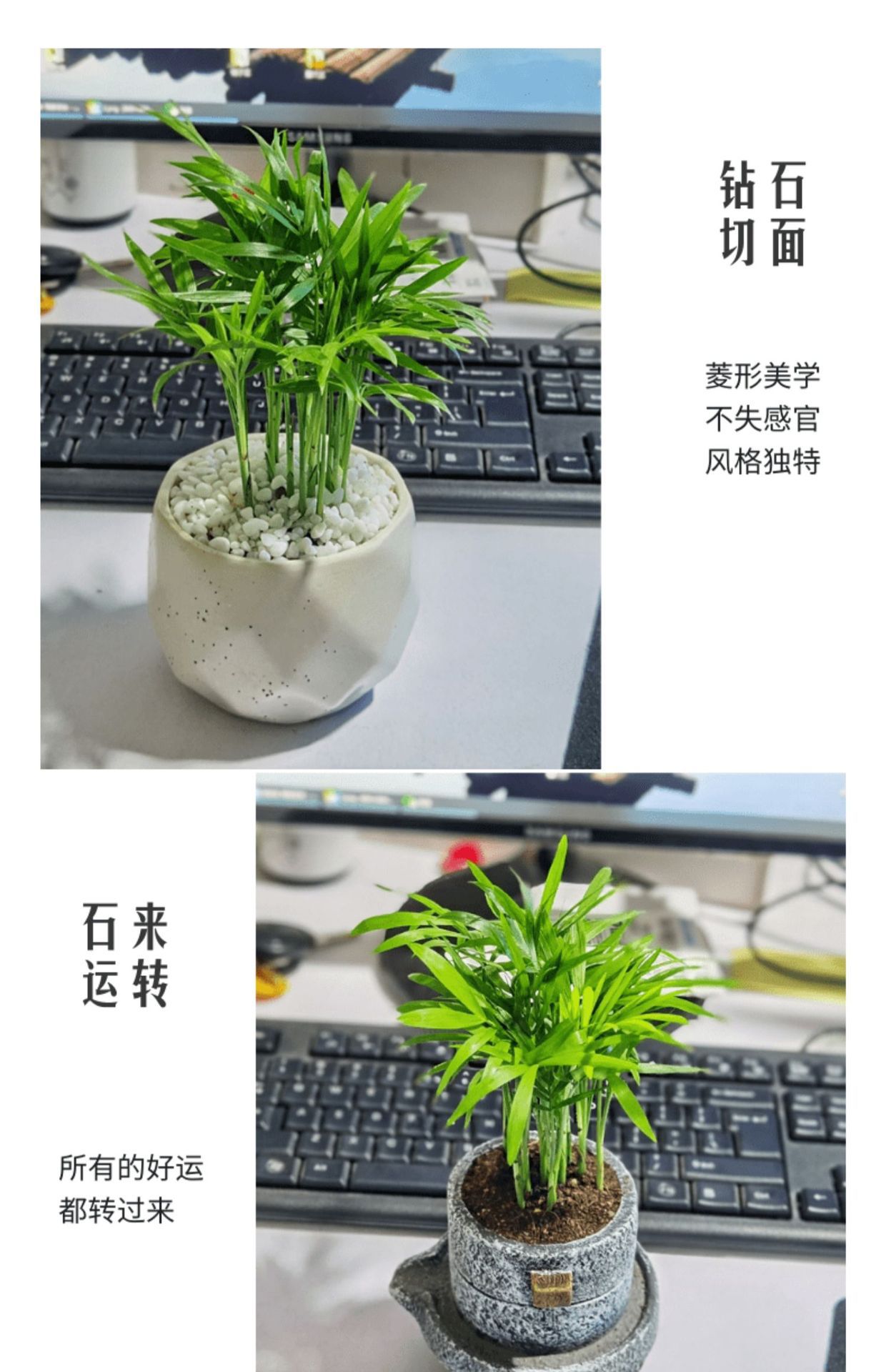 Карманный кокос (оригинальный горшок); Карманный кокос + умывальник с добрым утром + белая галька; Карманный кокос + графитовая керамическая раковина; Карманный кокос + бамбуковый поднос + цилиндрическая фарфоровая раковина; Карманный кокос + процветающее богатство