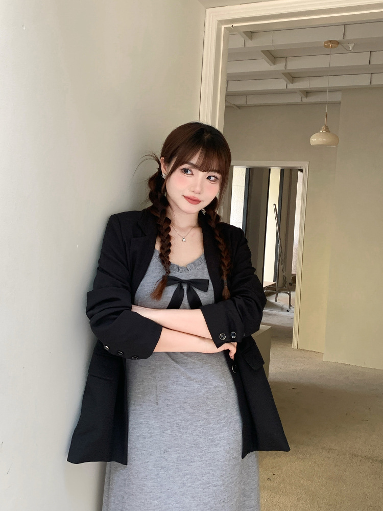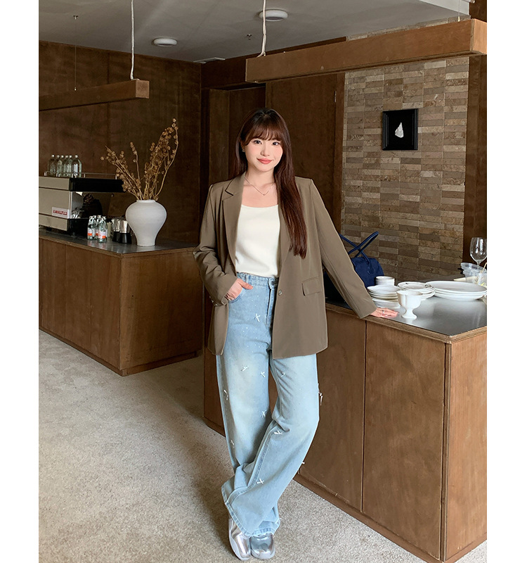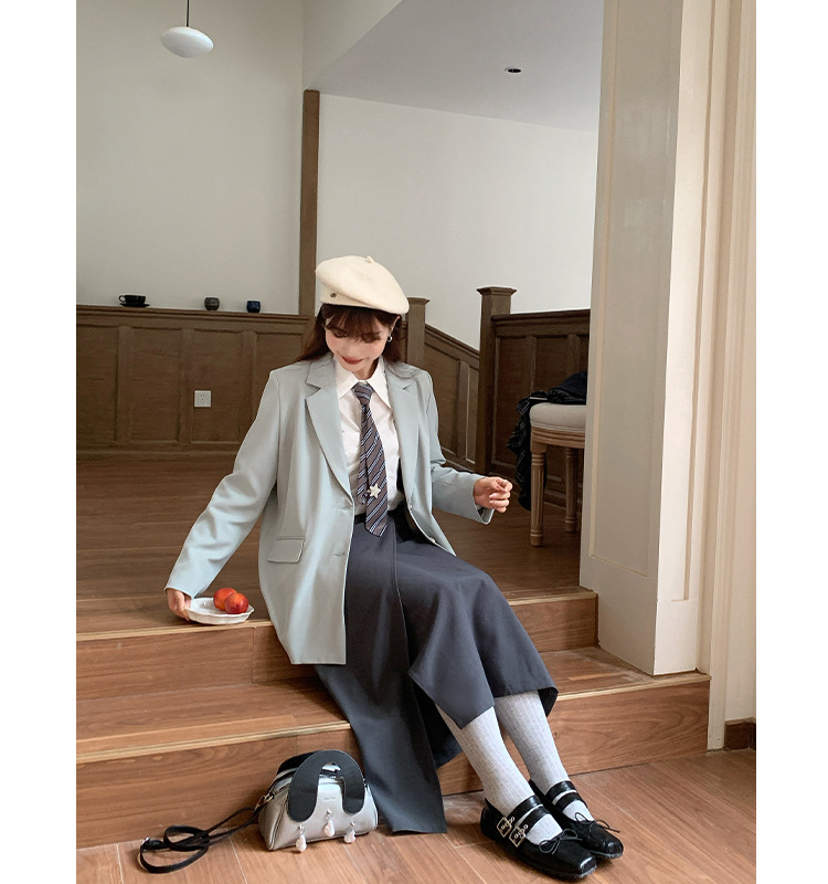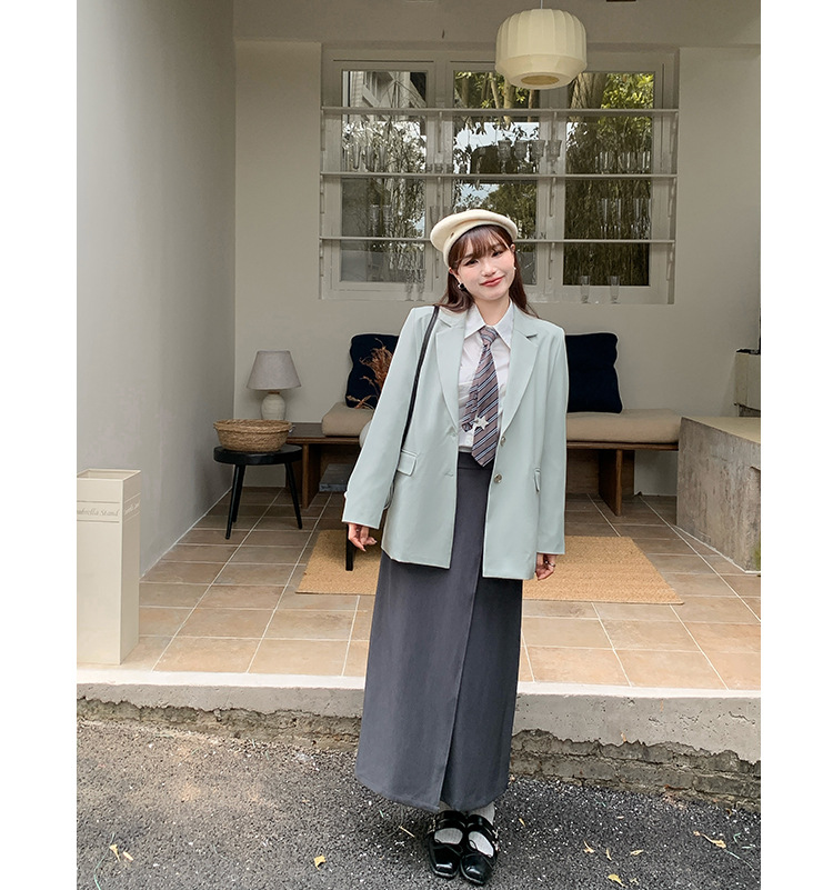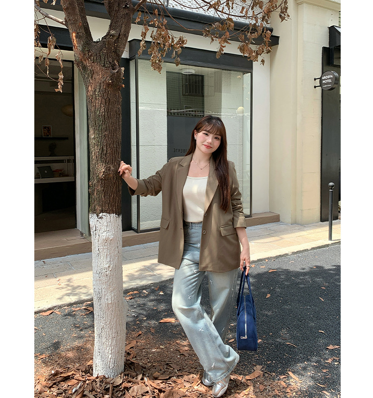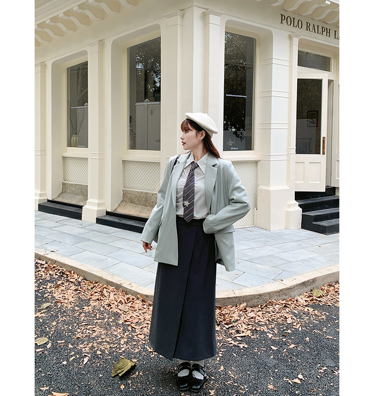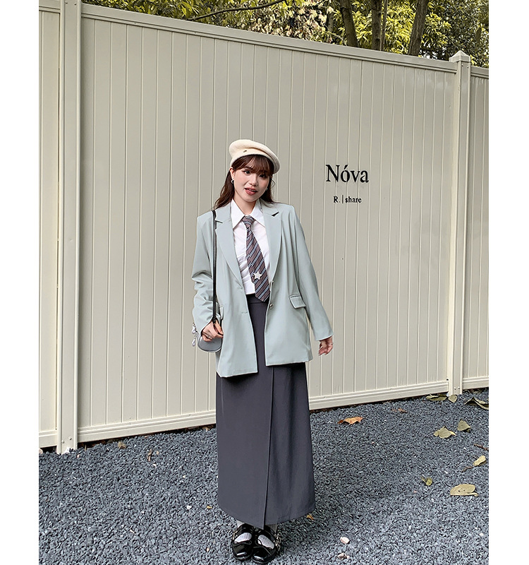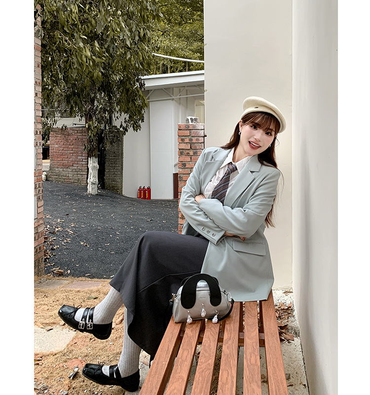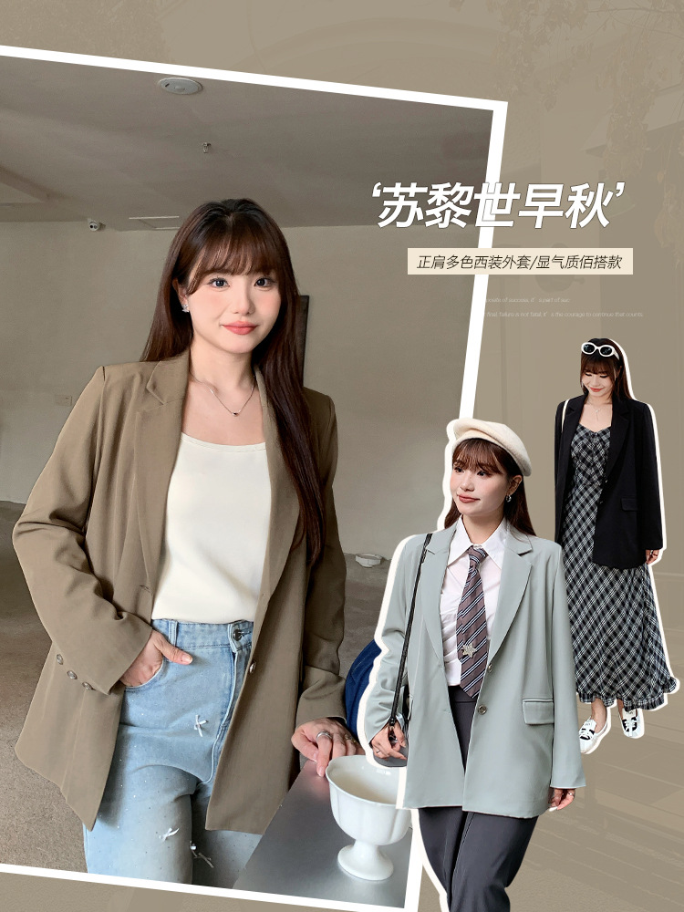 63508Корейский стиль, элегантный элитный модный повседневный костюм, женский осенний костюм большого размера для похудения, уменьшающая возраст талии куртка