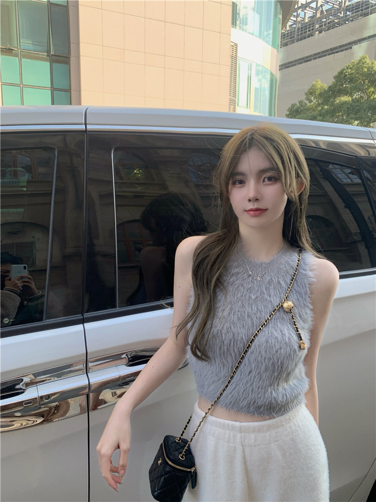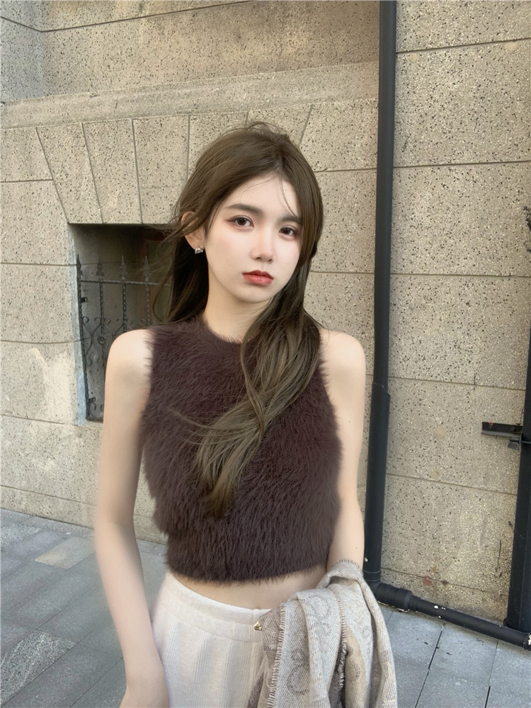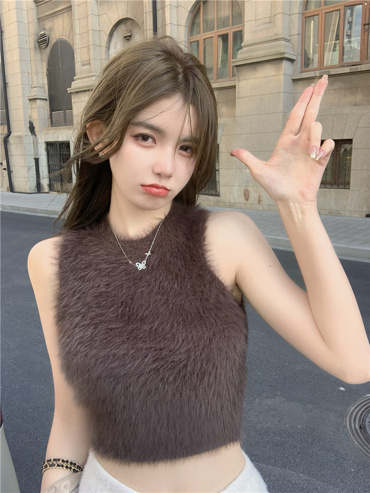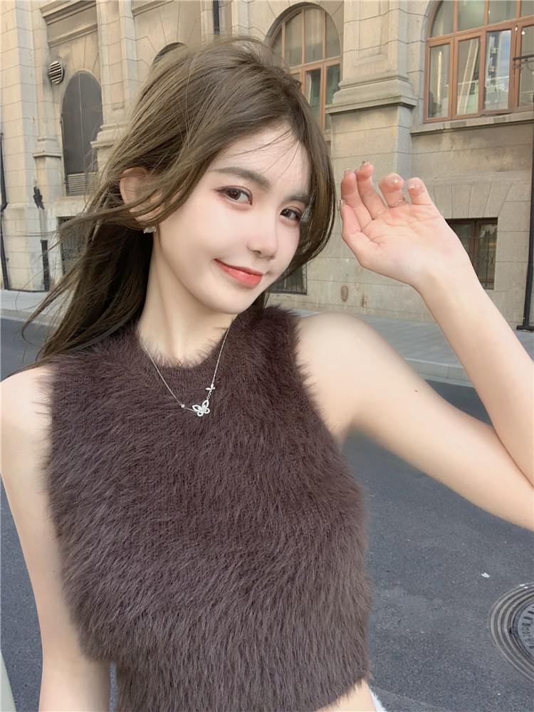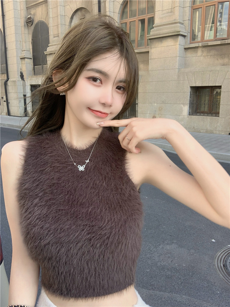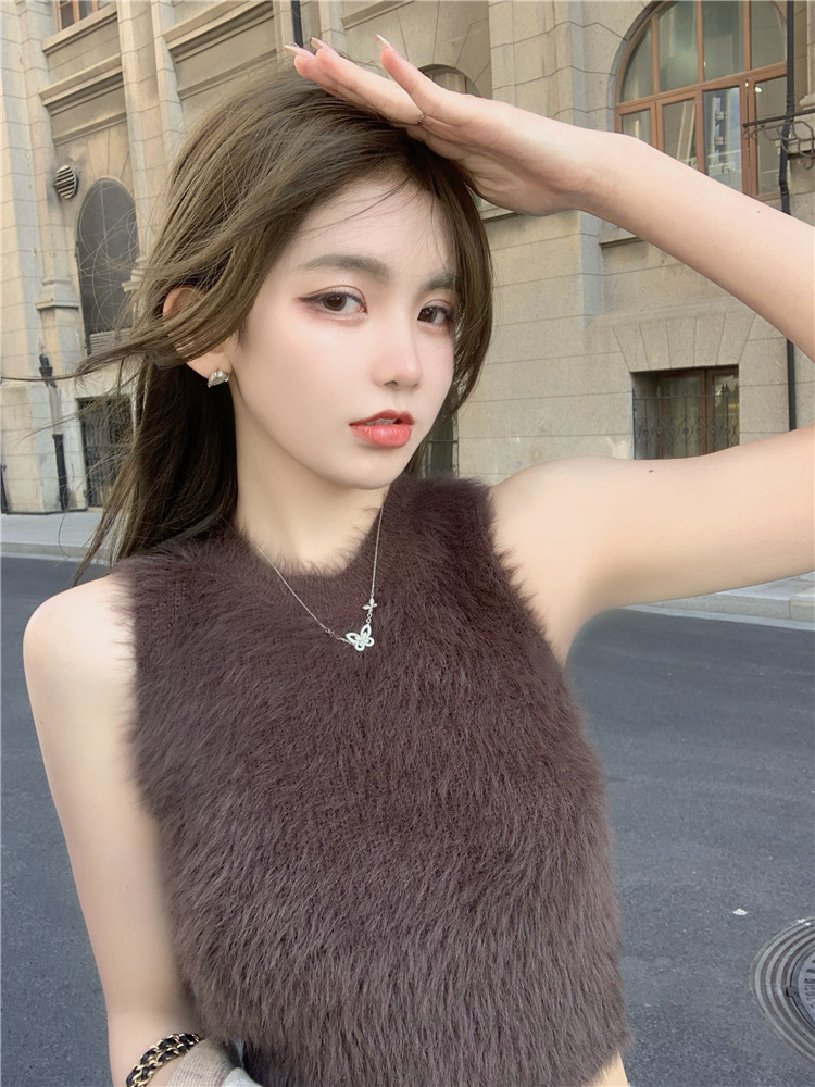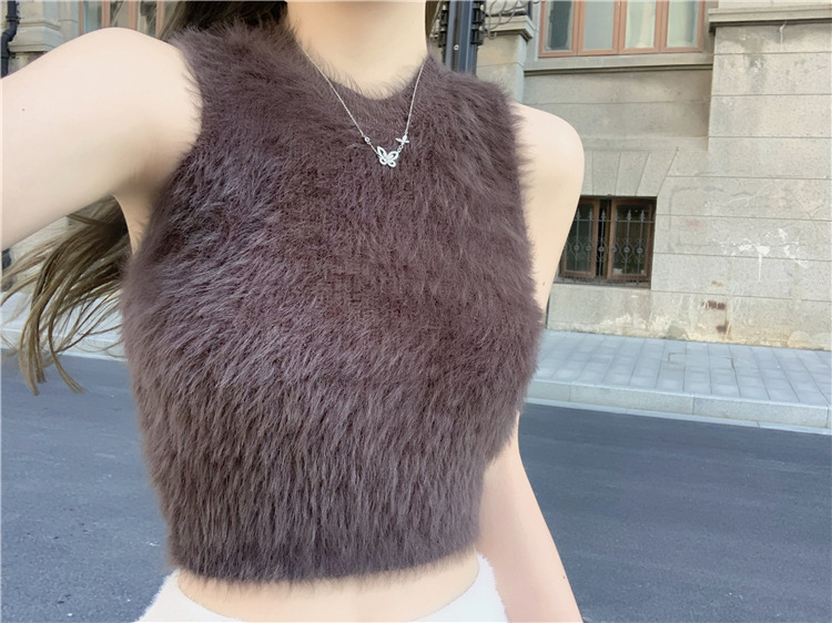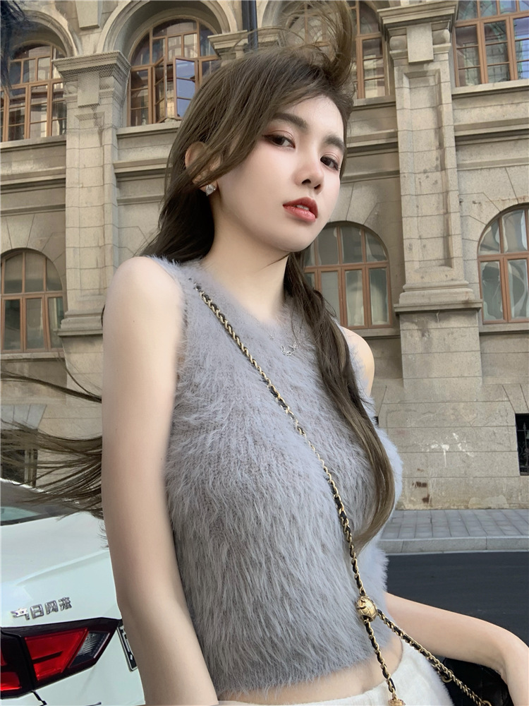 Норковый бархатный жилет женский осенний и зимний сексуальный без рукавов пушистый короткий топ мягкий и плюшевый внутри