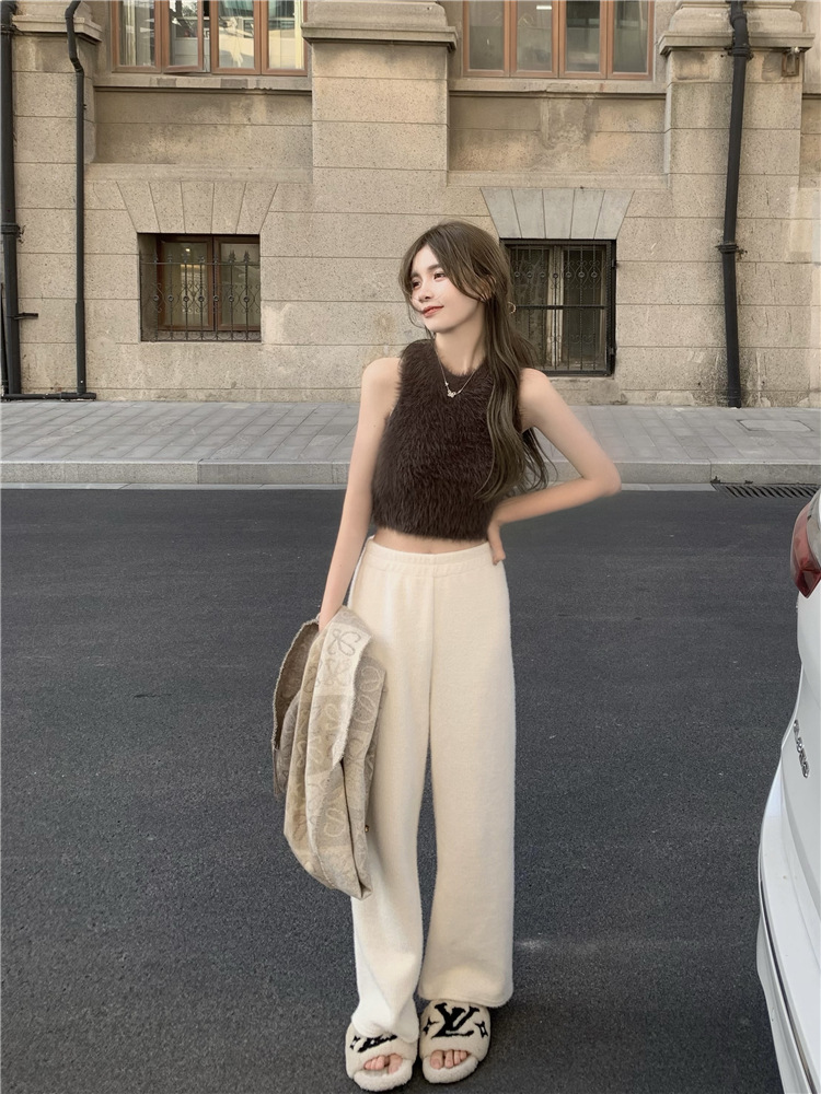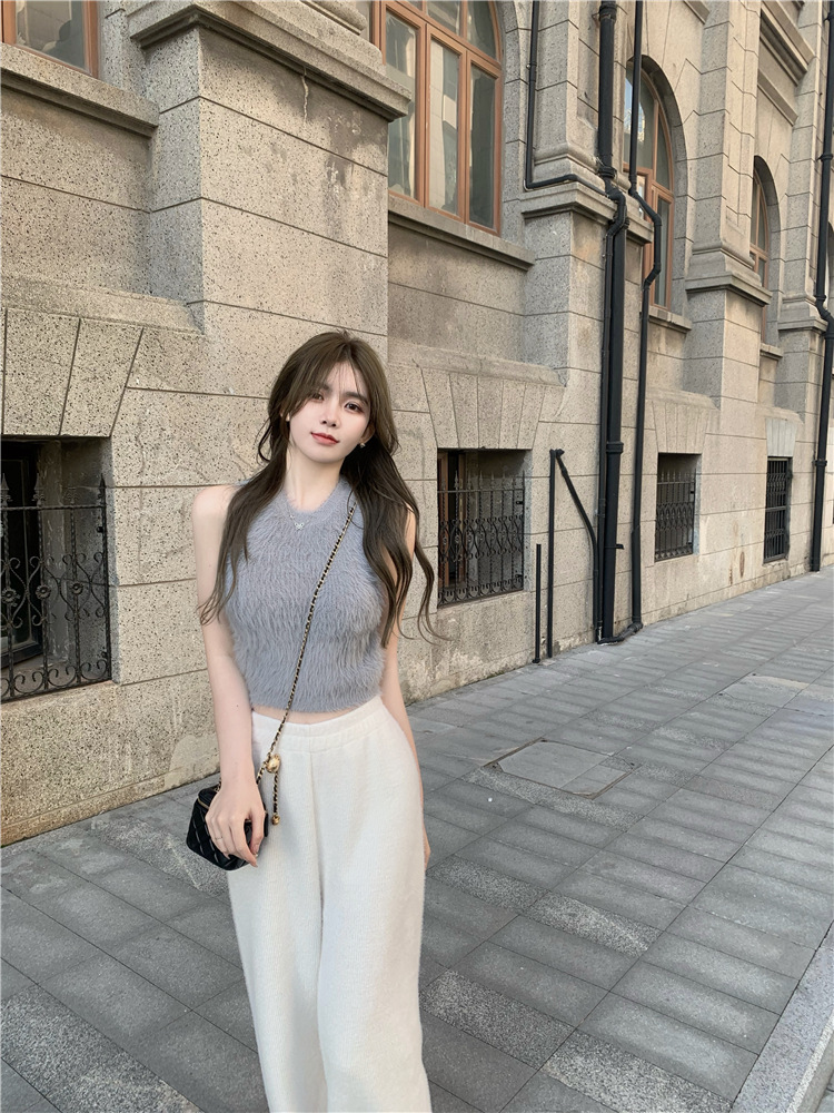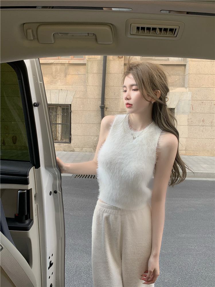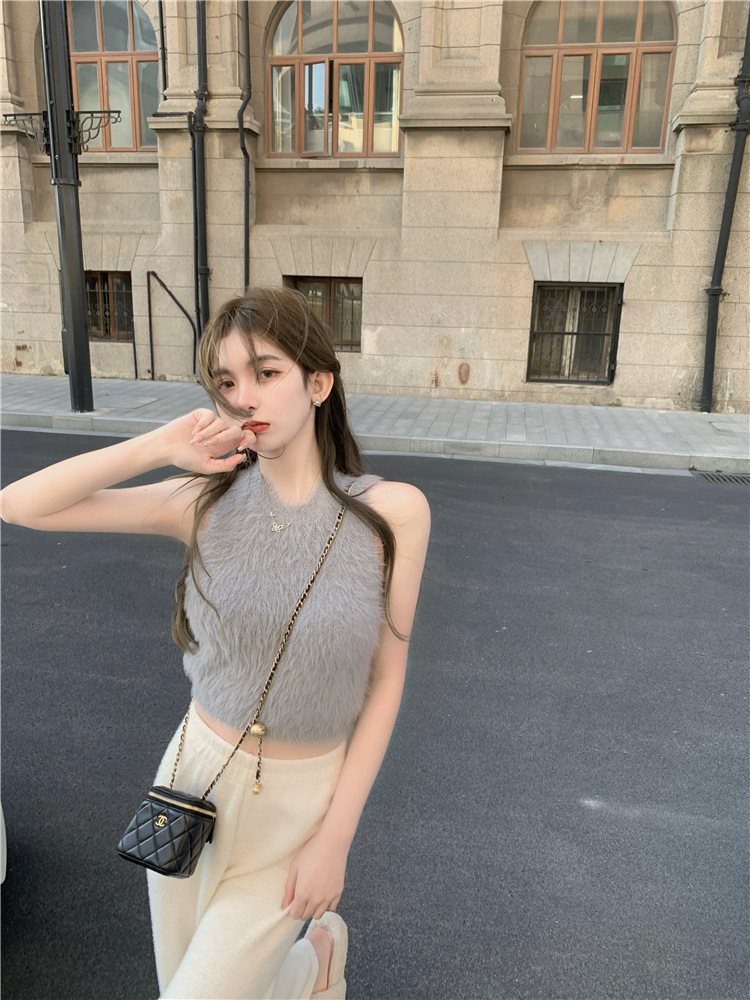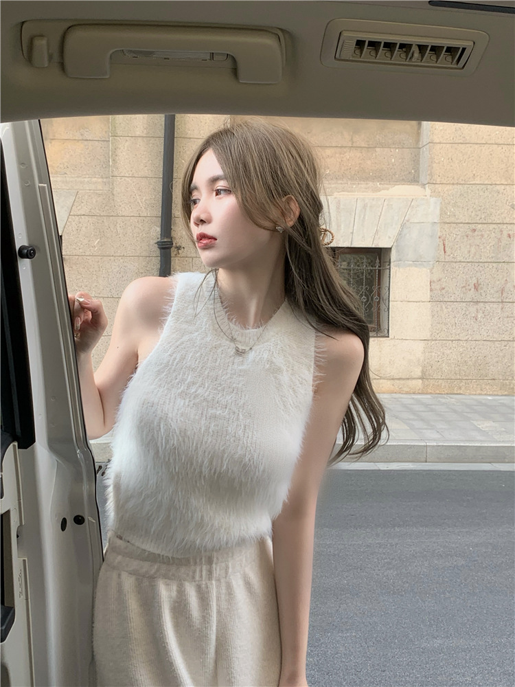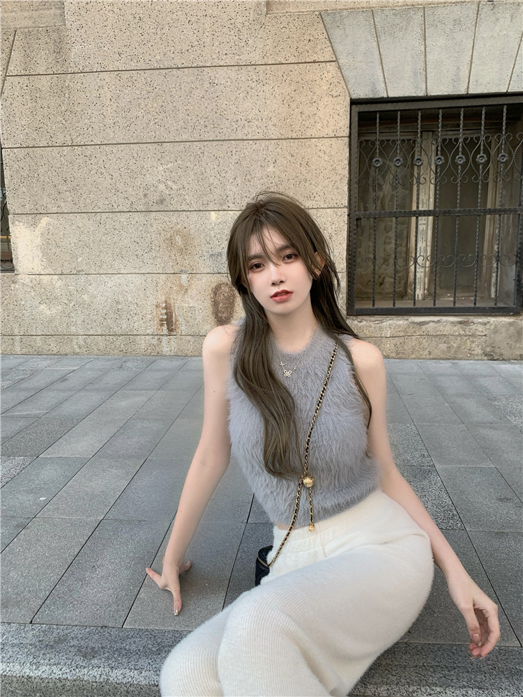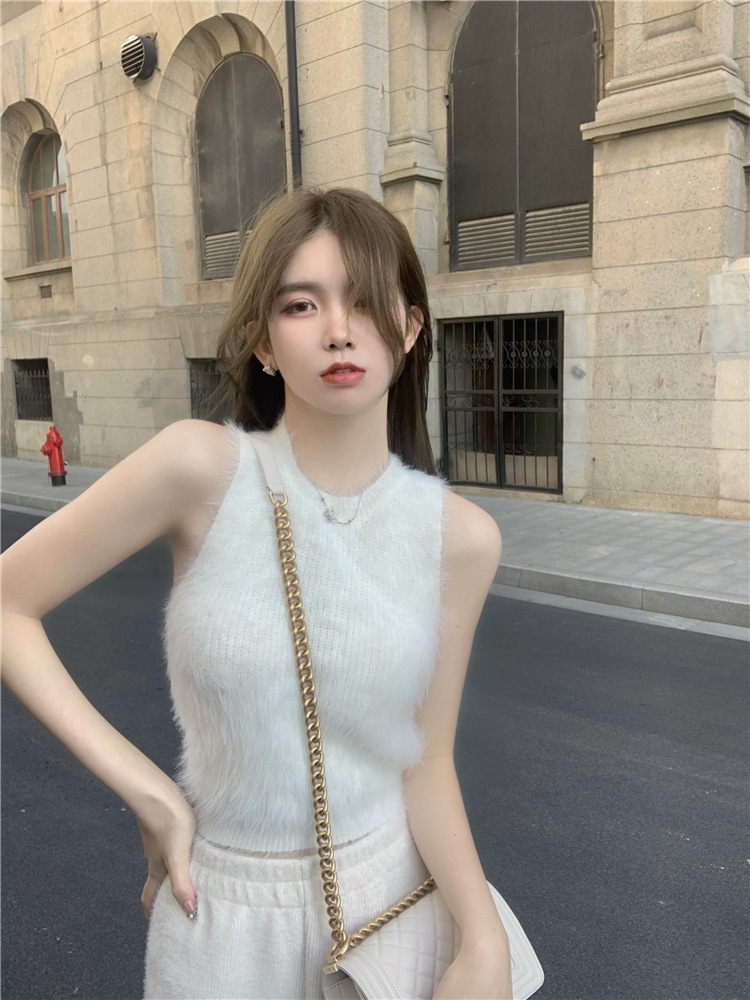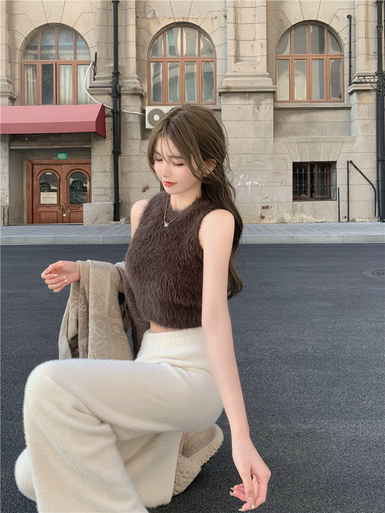 Норковый бархатный жилет женский осенний и зимний сексуальный без рукавов пушистый короткий топ мягкий и плюшевый внутри