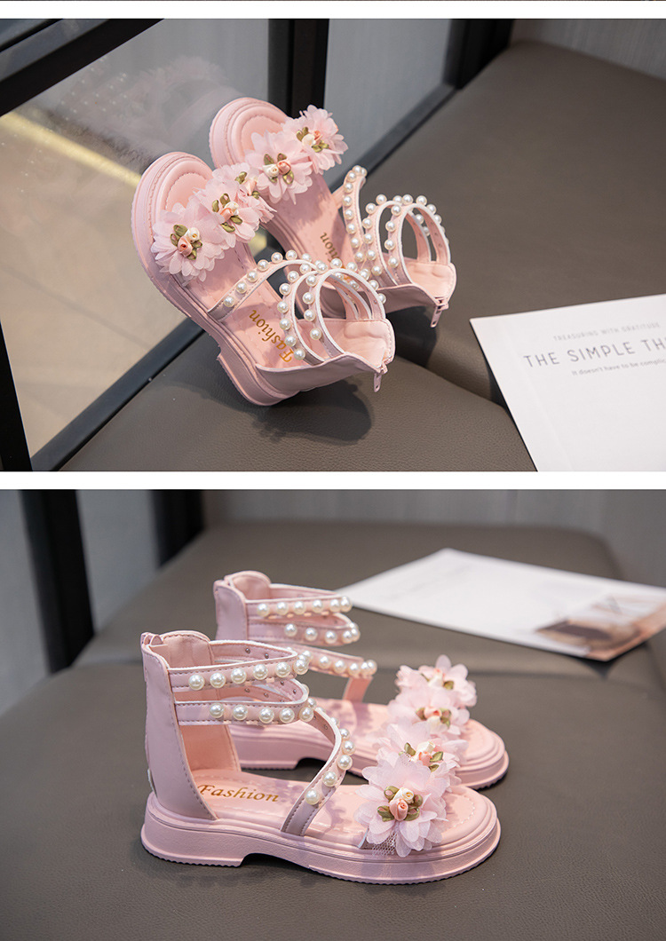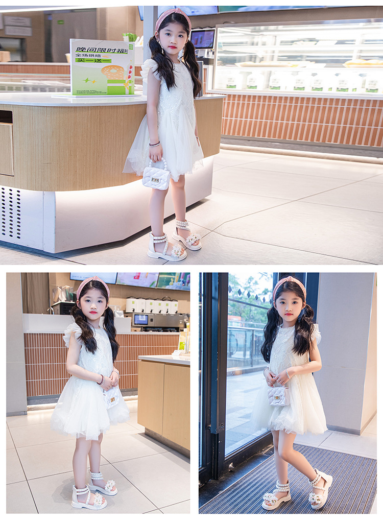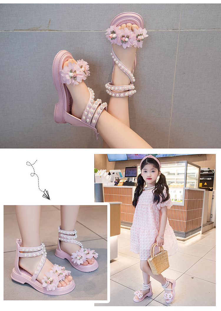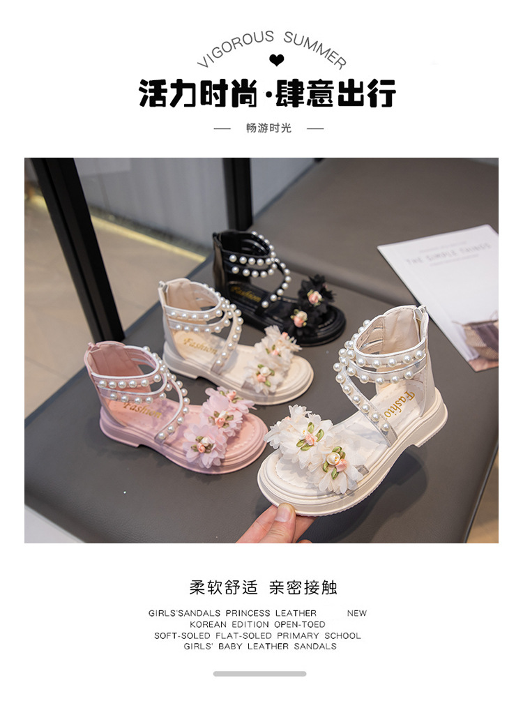 Сандалии для девочек Летняя мода Принцесс обувь Лето 2024 Новый средний мальчик с открытым носком маленькая девочка школьная римская обувь