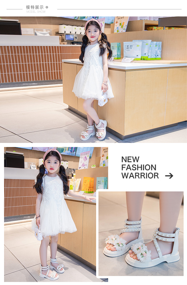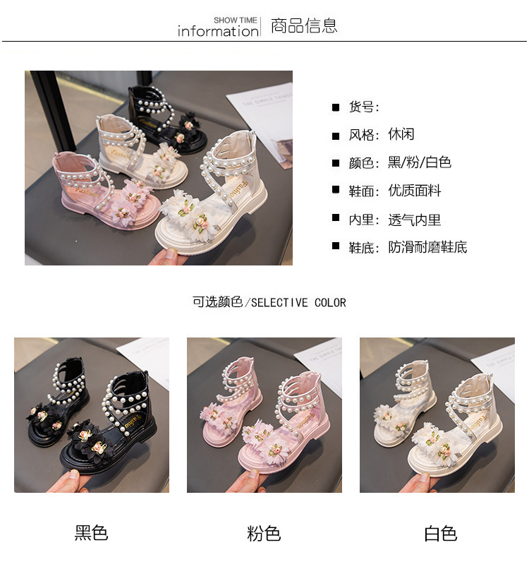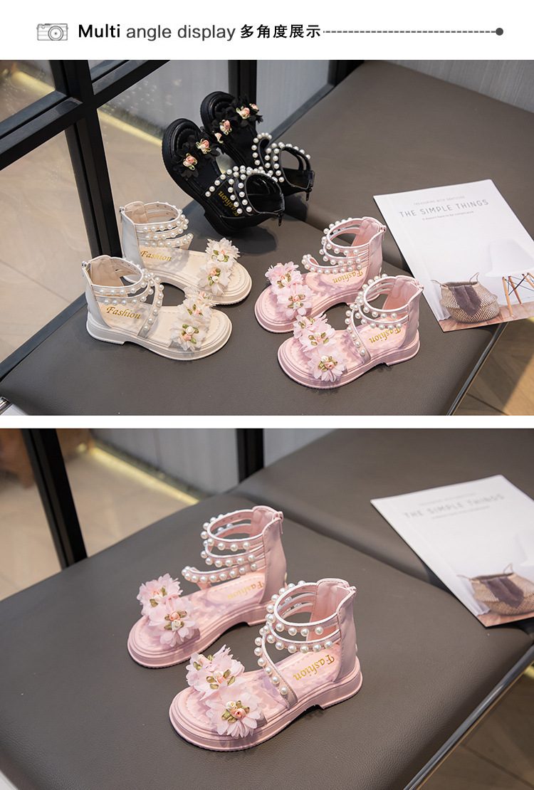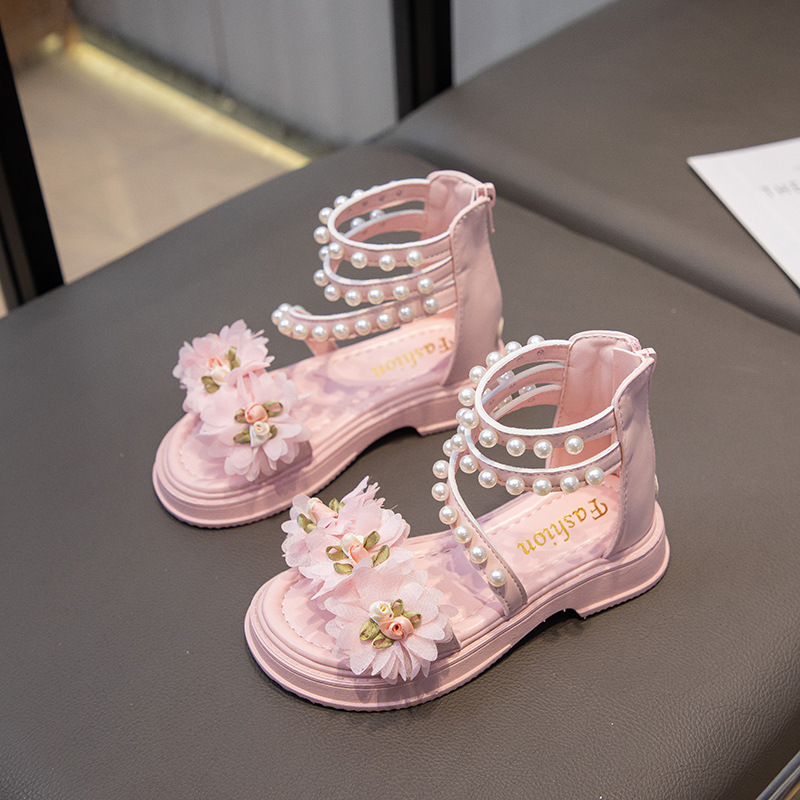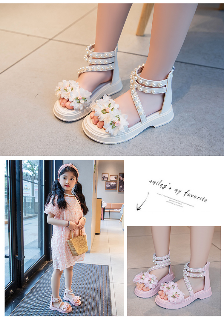 Сандалии для девочек Летняя мода Принцесс обувь Лето 2024 Новый средний мальчик с открытым носком маленькая девочка школьная римская обувь