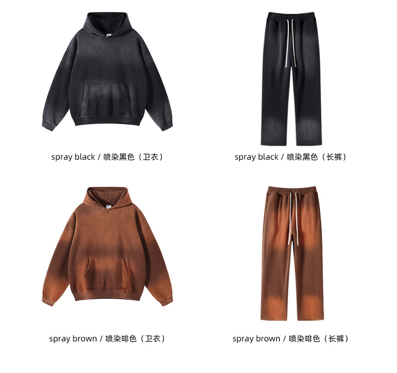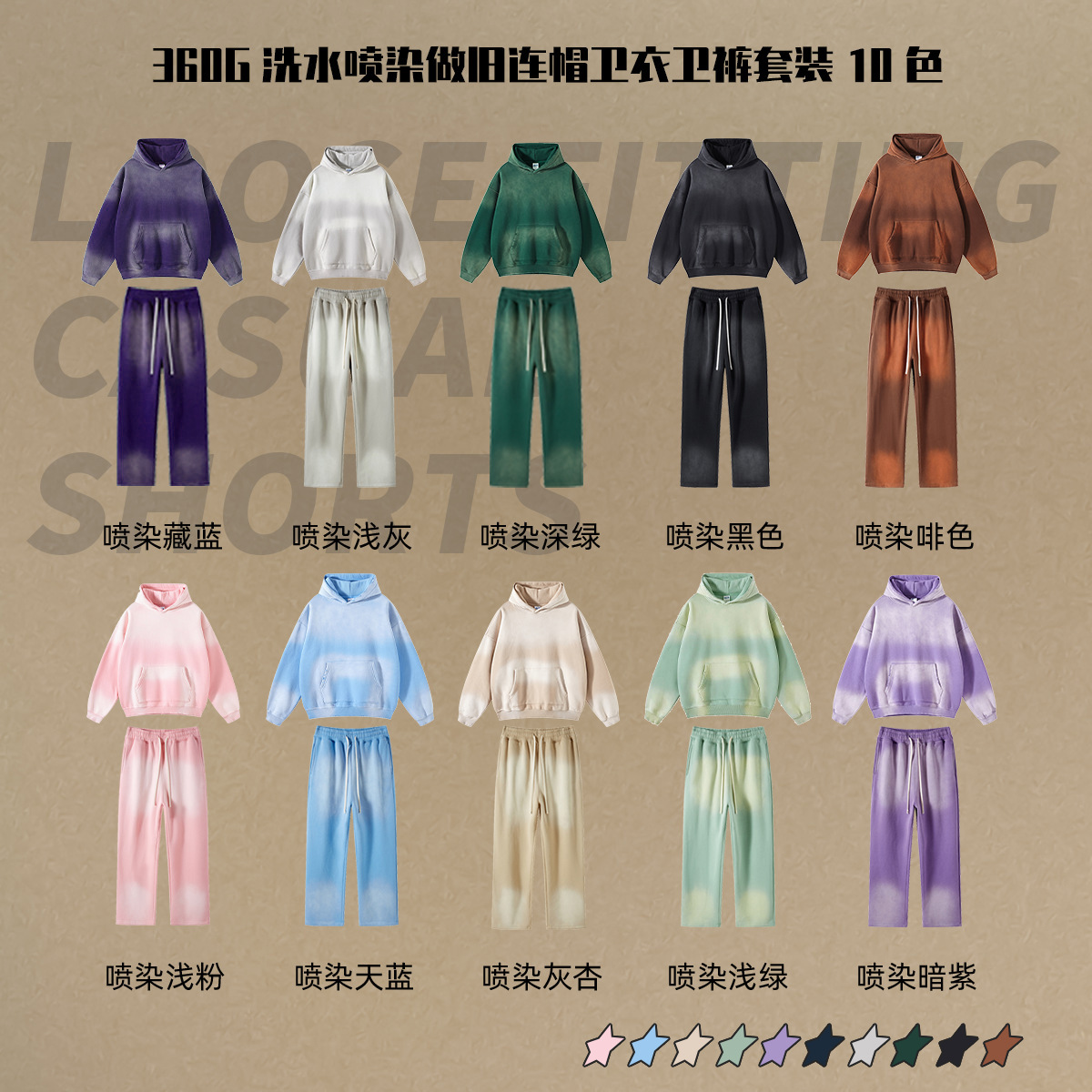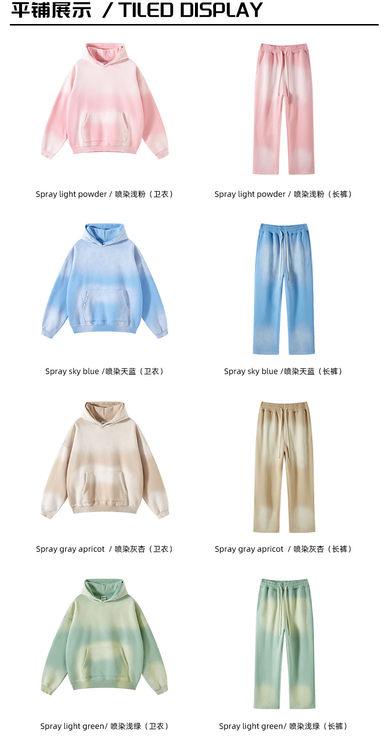 Толстовка-спрей-краситель светло-розовый; Брюки - окрашенные в спрей светло-розовые.; Толстовка-спрей окрашенная в серый абрикос; Брюки - окрашенные в спрей серый абрикос.; Толстовка-спрей окрашенная светло-зеленой; Брюки - окрашенные в спрей светло-зеленые.; Толстовка-спрей окрашенная небесно-голубой; Брюки - окрашенные в спрей небесно-голубого цвета.; Толстовка-спрей окрашена темно-фиолетовым; Брюки - спрей, окрашенные темно-фиолетовыми.; Толстовка-спрей окрашенная светло-серая; Брюки - окрашенные в спрей светло-серые.; Толстовка-распыление коричневого цвета; Брюки-распыленные коричневыми; Толстовка-спрей окрашенная в темно-синий цвет; Брюки - окрашенные в спрей темно-синий.; Толстовка-распылитель лесной зеленый; Брюки-окрашенные в спрей лесной зеленый цвет; Толстовка-спрей окрашенная в черный цвет; Брюки - окрашенные в черный цвет.