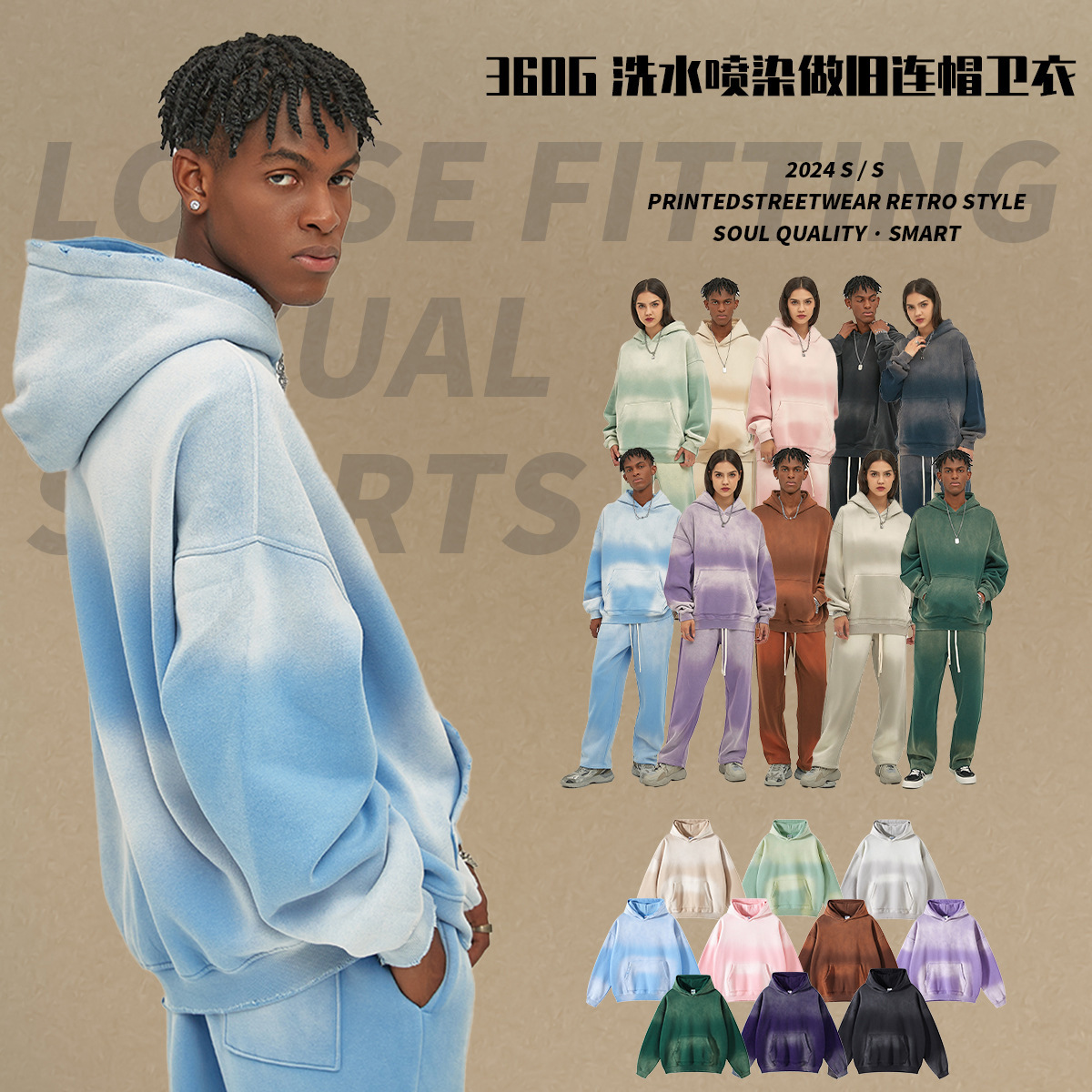 2024 Осень и зима Новые 360g Окрашенные старые свитеры с капюшоном