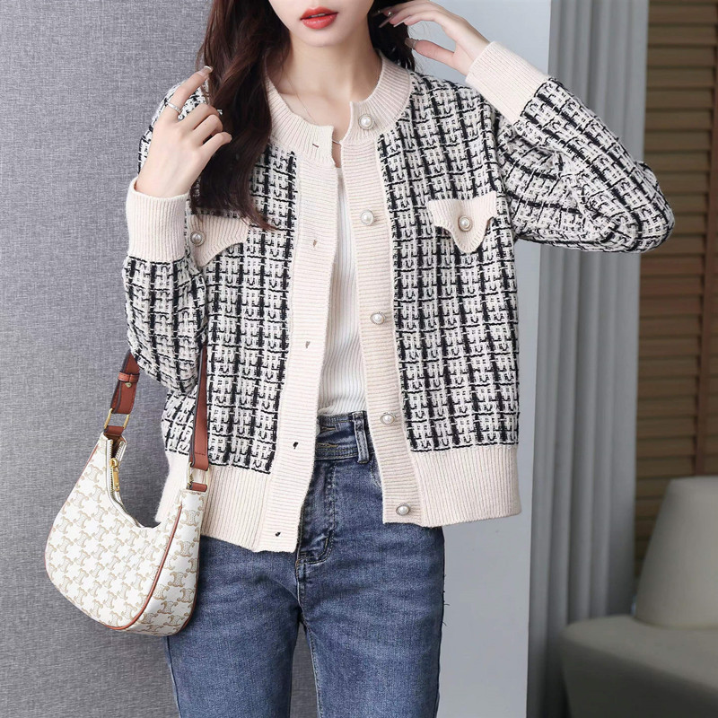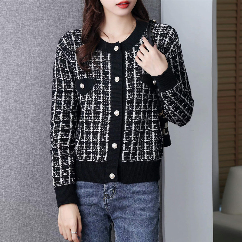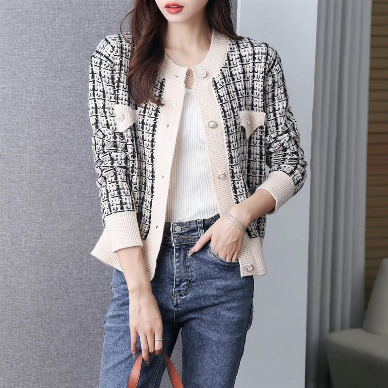 Женский свитер в клетку, французский стиль, осенняя коллекция 2025 года, модная повседневная одежда, новый тренд