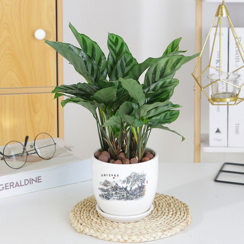 Простой горшок с зеленой листовой маниокой; Водный бассейн ленивого человека, зеленый лист таро; Крупчатка с хрустящими листьями синего бочонка; Широкий фарфоровый горшок с морем и небом, зеленый лист таро; Таро с изумрудными листьями в белой фарфоровой горшке; Таро с изумрудными листьями в фарфоровом горшке синего цвета с бриллиантами; Большой белый фарфоровый бассейн с хрустящими листьями и арканиумом.; Чисто-белый цилиндрический фарфоровый горшок с зелеными листьями и арканиумом.
