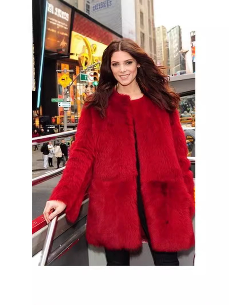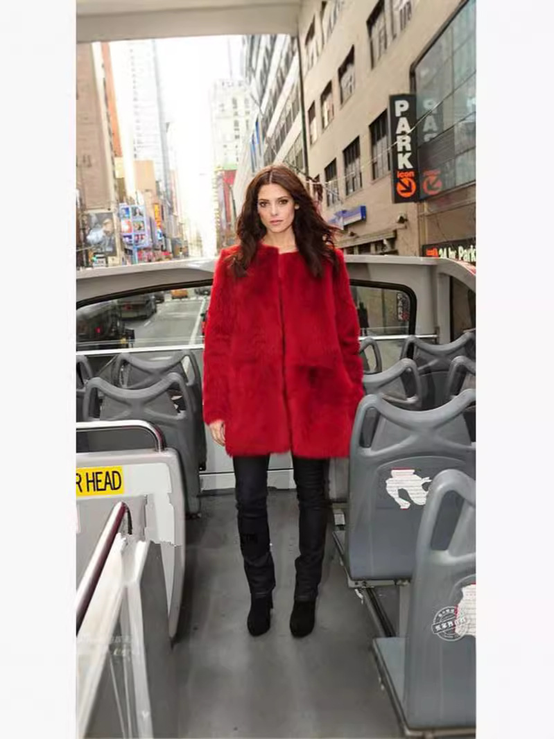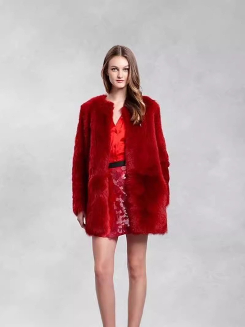 Трансграничные меховые поставки 2024, осенне-зимняя европейская и американская верхняя одежда с искусственным мехом, женская верхняя одежда средней длины из меха кролика рекса, красная