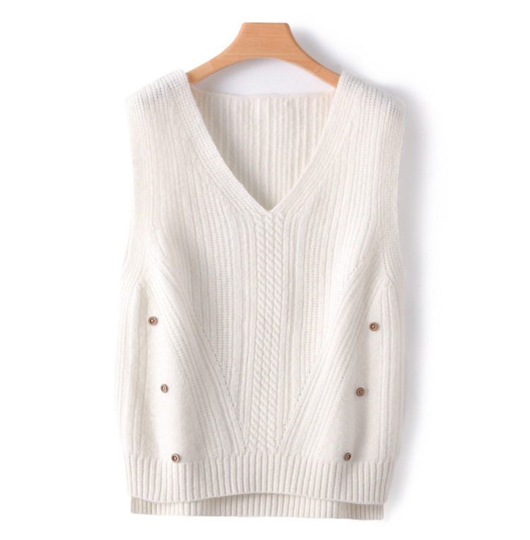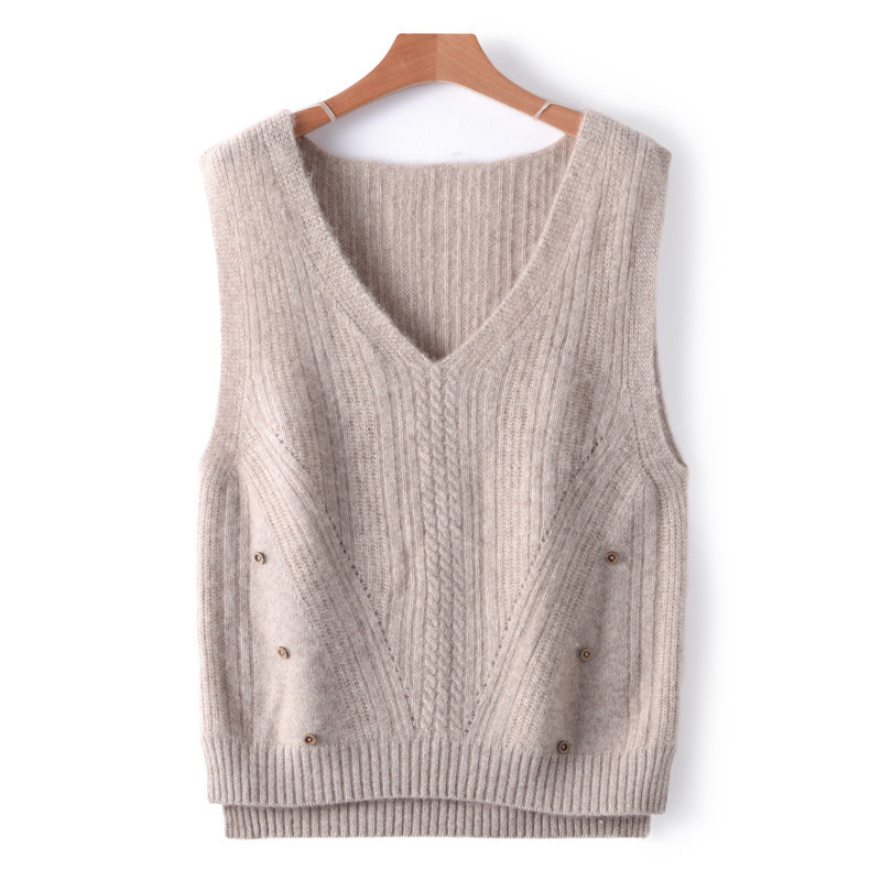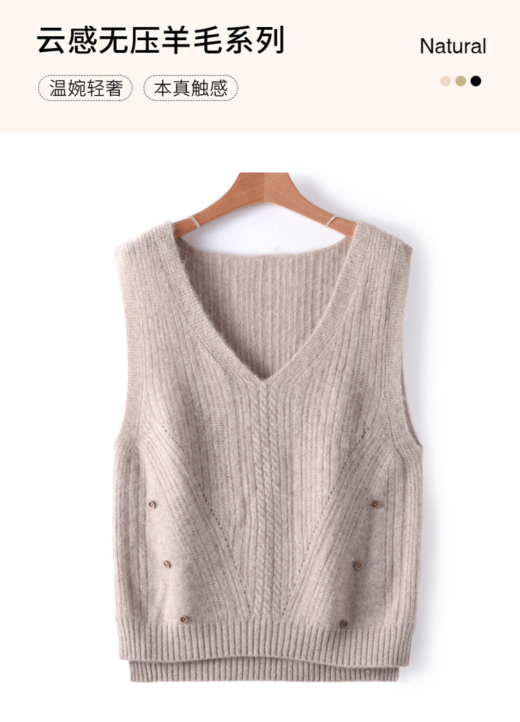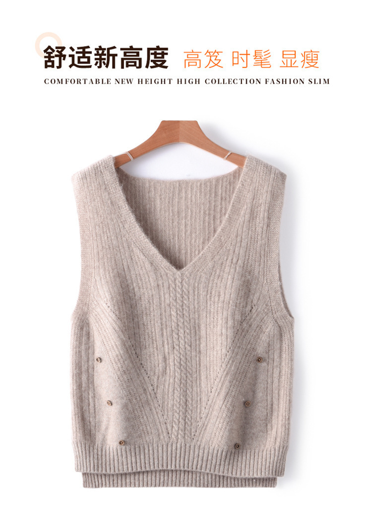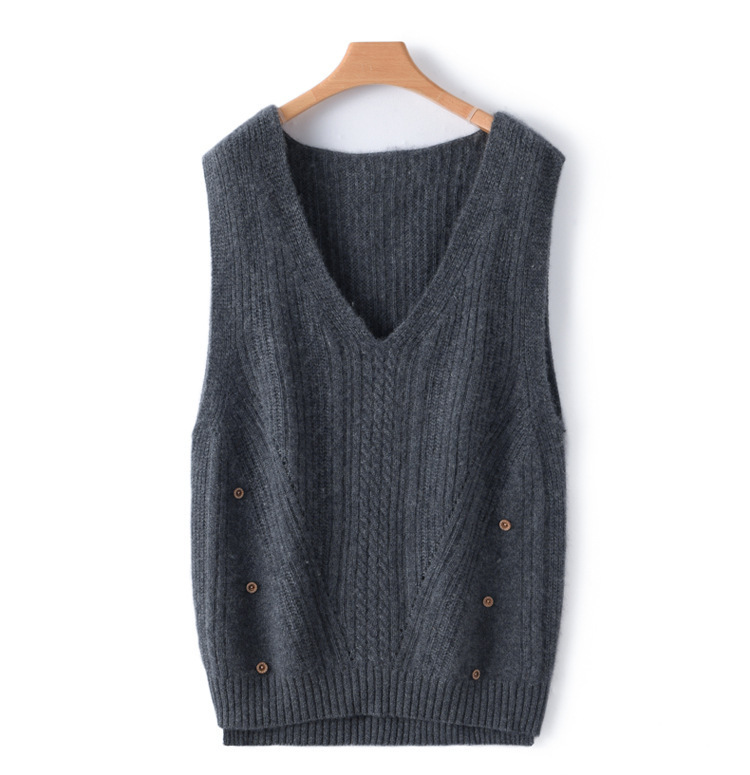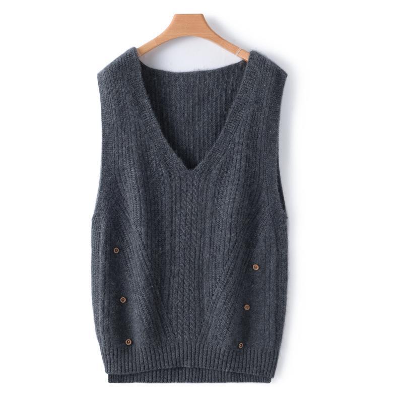 Осенний и зимний новый 100 шерстяной трикотажный жилет с V-образным вырезом