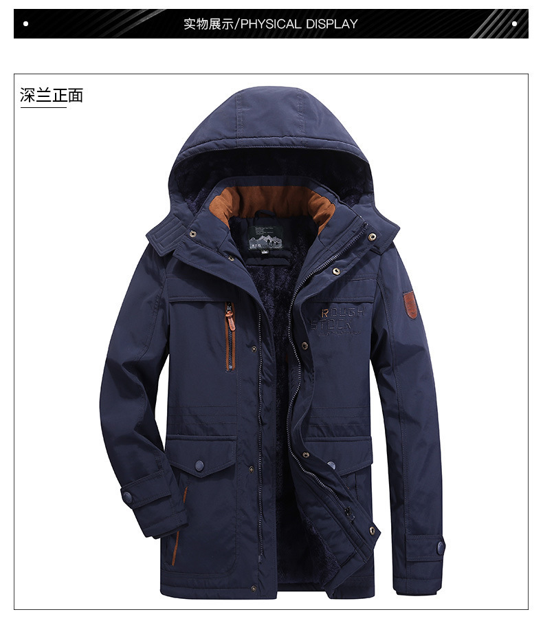 Трансграничные новые осенние и зимние мужские теплые хлопчатобумажные куртки плюс бархат утолщенные средние и длинные новые куртки для отдыха на открытом воздухе