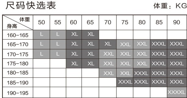 Л( 45-52.5kg ); XL( 52.5-60kg ); 2XL( 60-70kg ); 3XL( 70-80kg ); 4XL( 80-90kg )