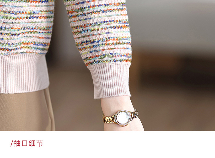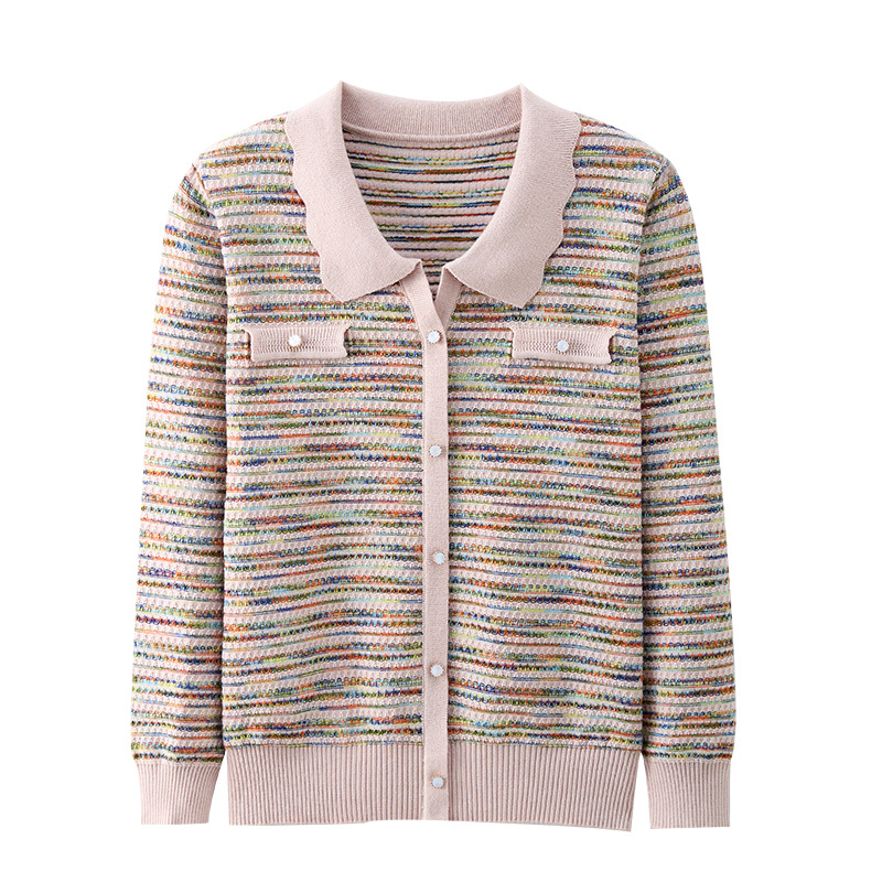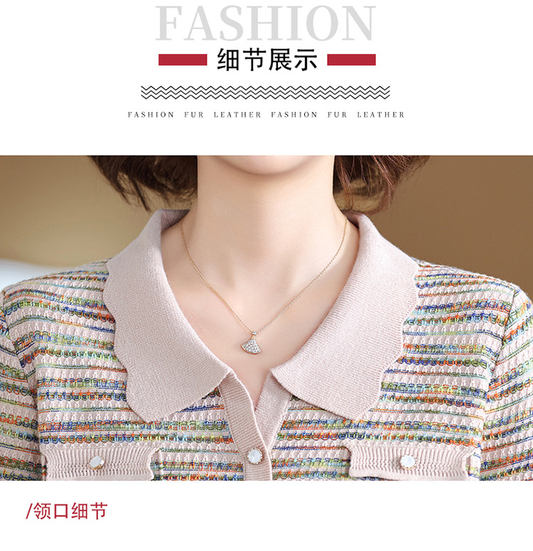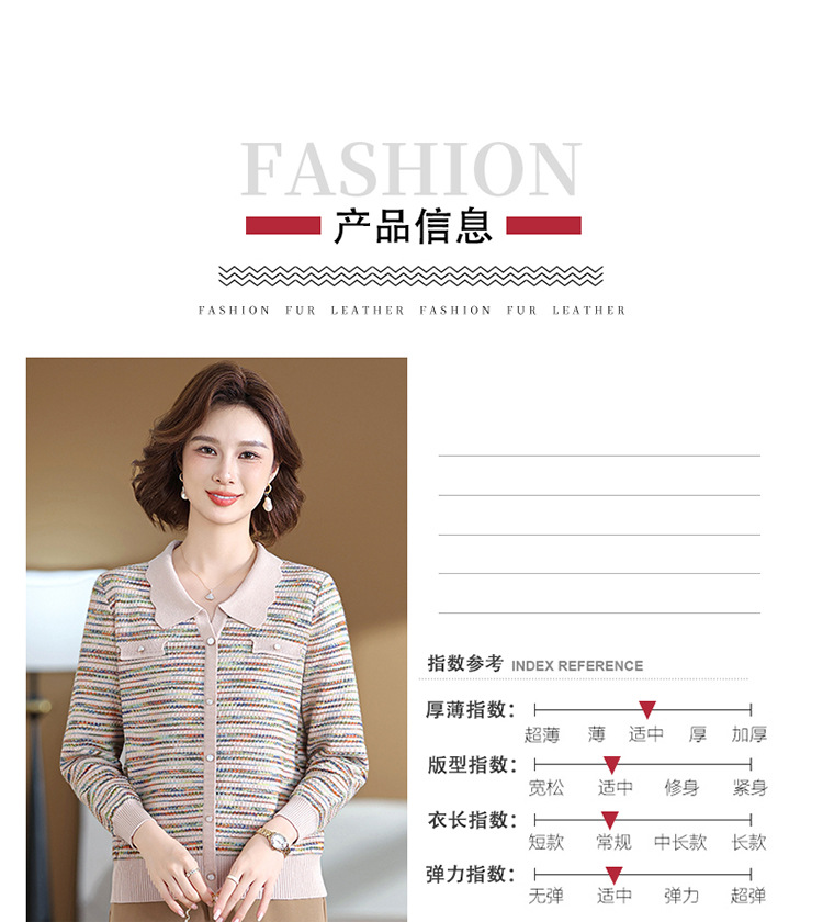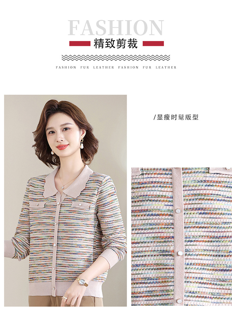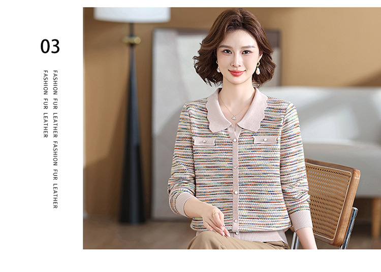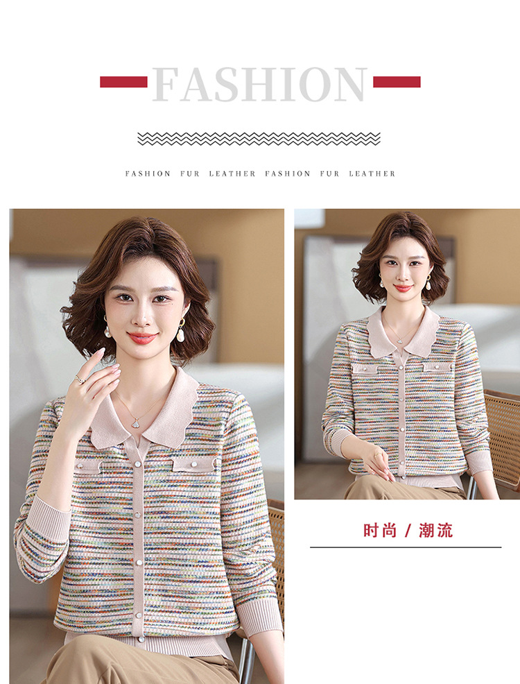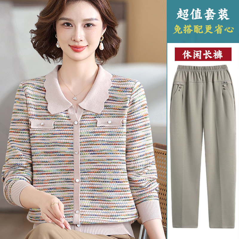 Темперамент мама новый осенний трикотажный отворот в полоску топ среднего возраста женская весенняя и осенняя футболка с длинными рукавами свитер