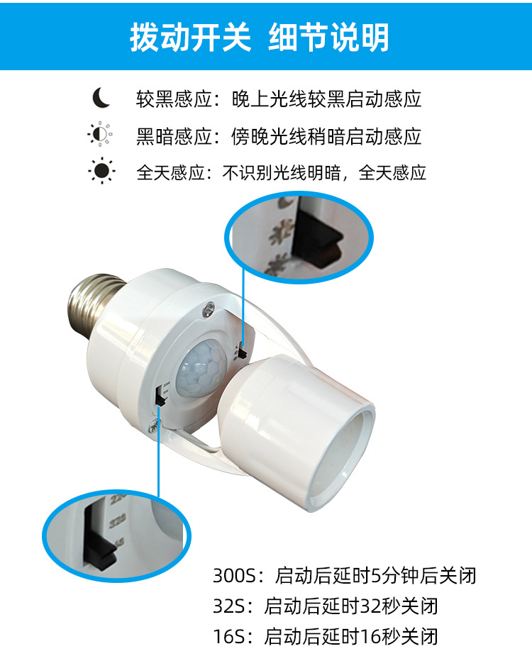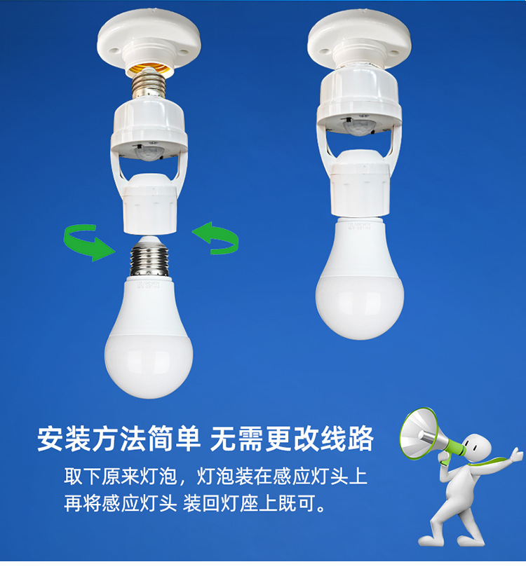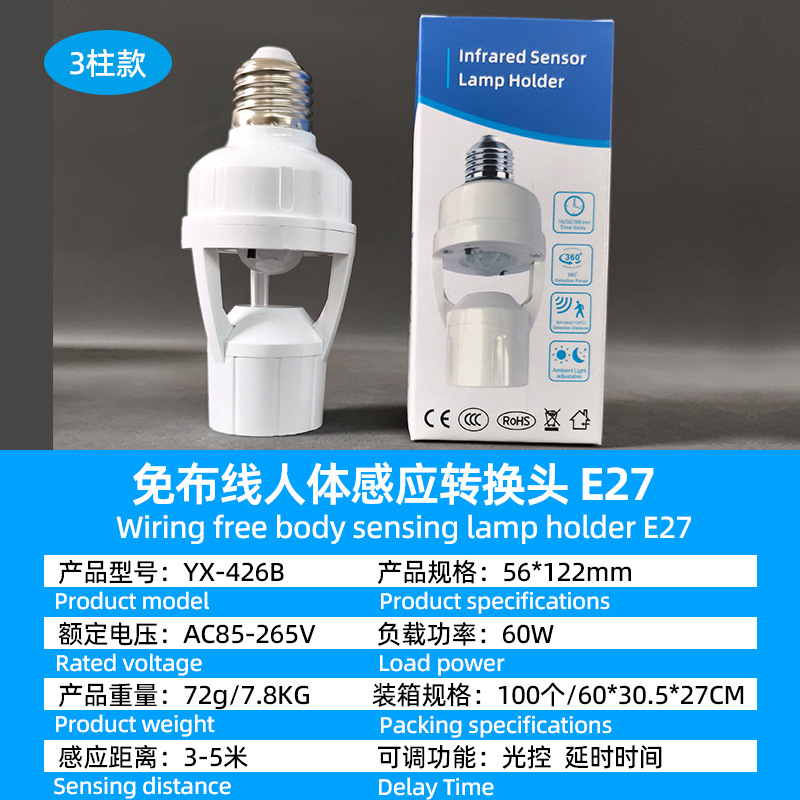 Головка лампы преобразования радара с 2 колонками 0-8M; 2-колонная лампа преобразования датчика человеческого тела, головка лампы 0- 5m; 2-колонная высокая чашка, головка лампы для преобразования человеческого тела 0- 5m; 3-колонная индукционная лампа E27 для человеческого тела, головка лампы 0- 5m; Ручка типа E27, индукционная лампа для преобразования человеческого тела, головка 0- 4m; Головка лампы преобразования радара 0- 8m; Патрон для лампы управления звуком и светом E27