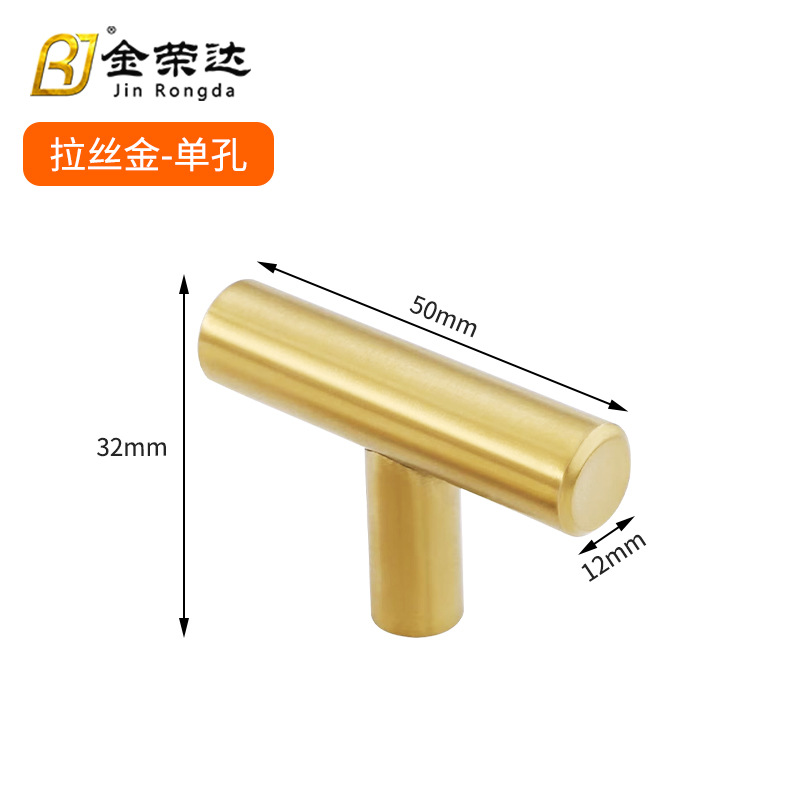 Jinrongda круглая трубка из нержавеющей стали с полой ручкой, ящик для шкафа, мебель, золотая ручка, Т-образная маленькая ручка с одним отверстием