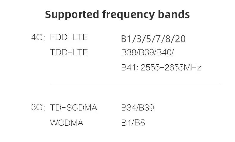 亚洲版:FDD:B1.3.5.8 TDD:B38.39.40.41