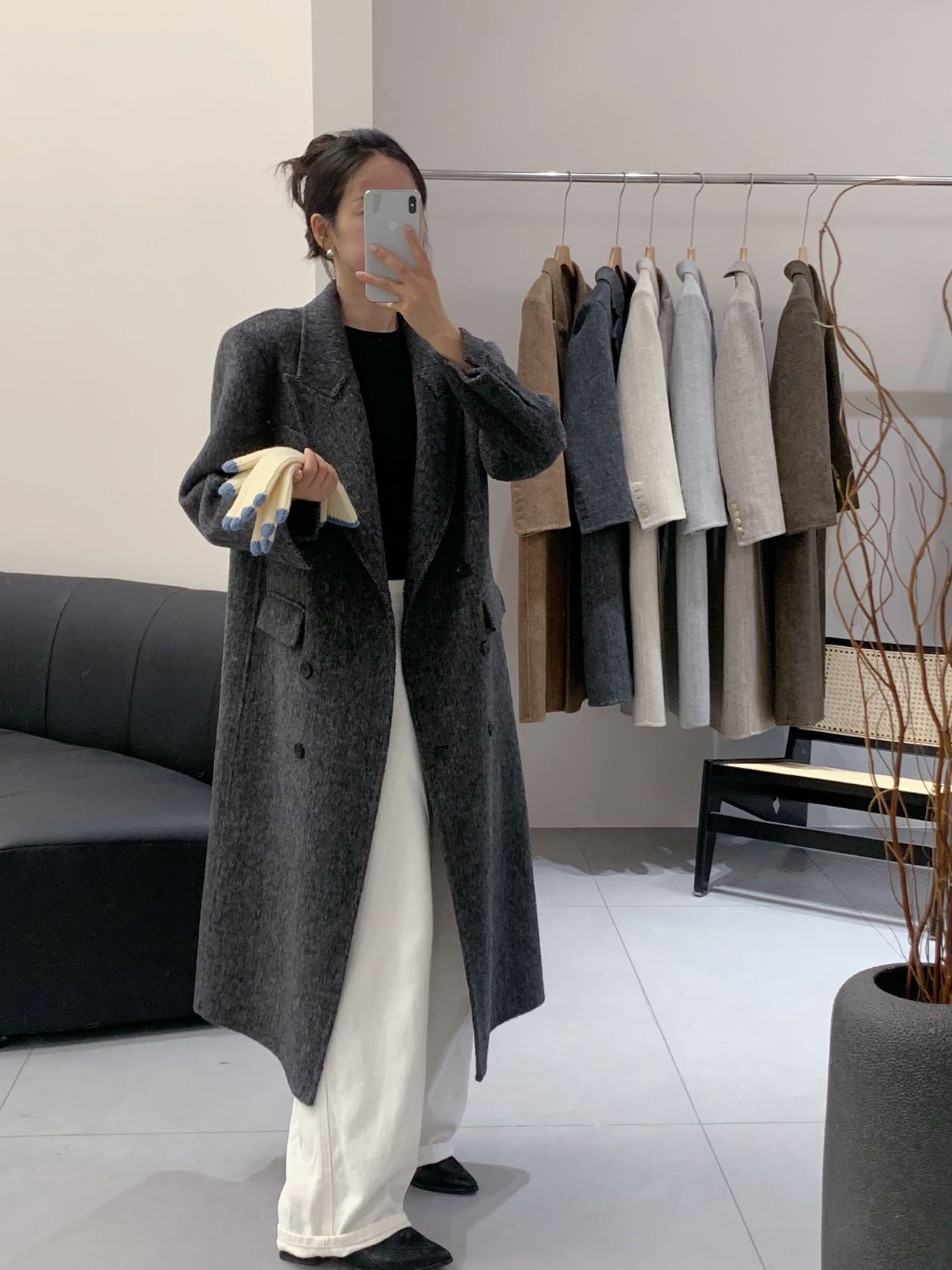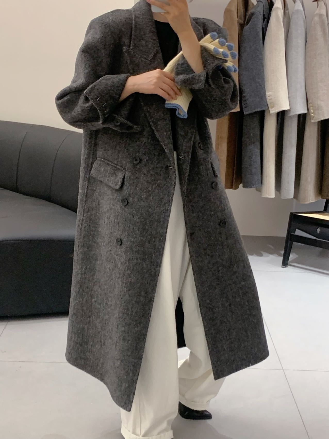 2024 Осень и зима новые колени плюс стройный темперамент длинношерстный шевель двухстороннее шерстяное пальто женская куртка