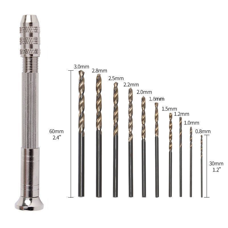 Ручное спиральное сверло + 10 сверл повышенной твердости 0,8-3,0*стандарт*1; Ручное спиральное сверло; 2 ручные спиральные сверла + 20 сверл