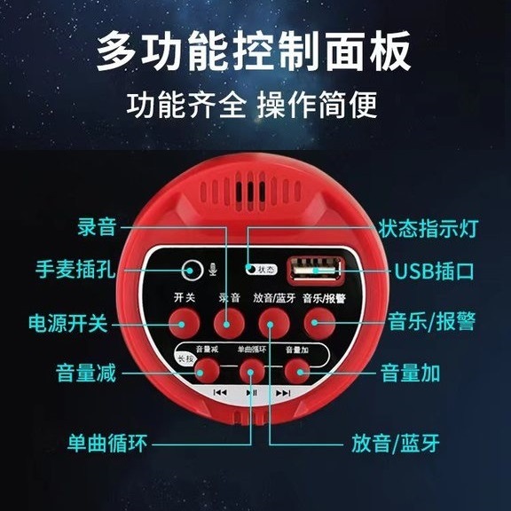 功能:USB接口、TF卡直读、蓝牙连接警报报警、音量调节、可外接手麦