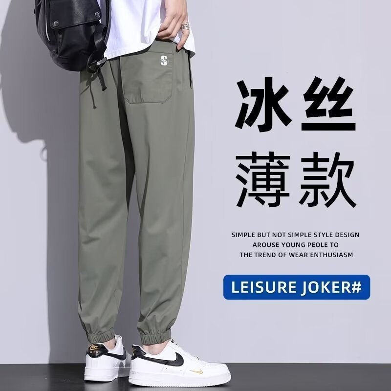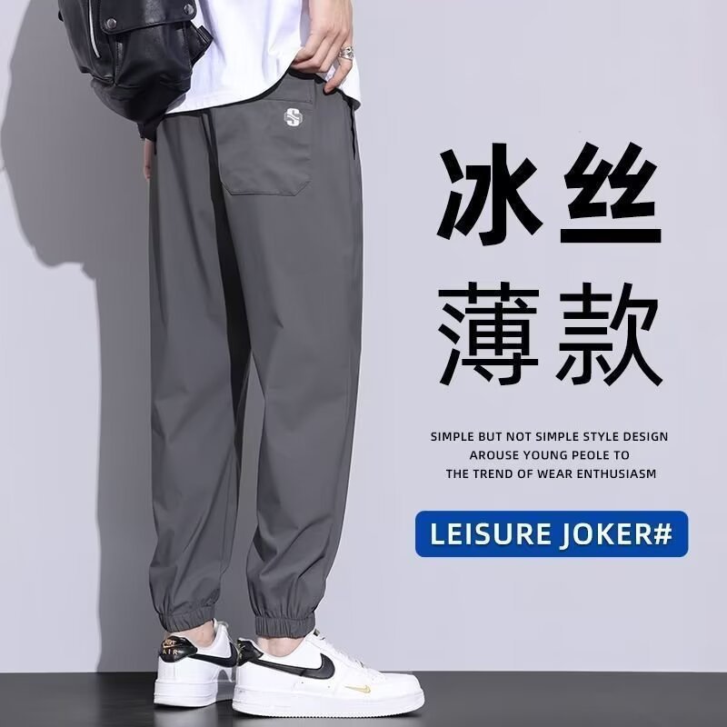 Повседневные брюки для мужчин Летние тонкие ледяные шелки мужские спортивные мужские брюки свободные корсеты брюки дикие мужские брюки для волос
