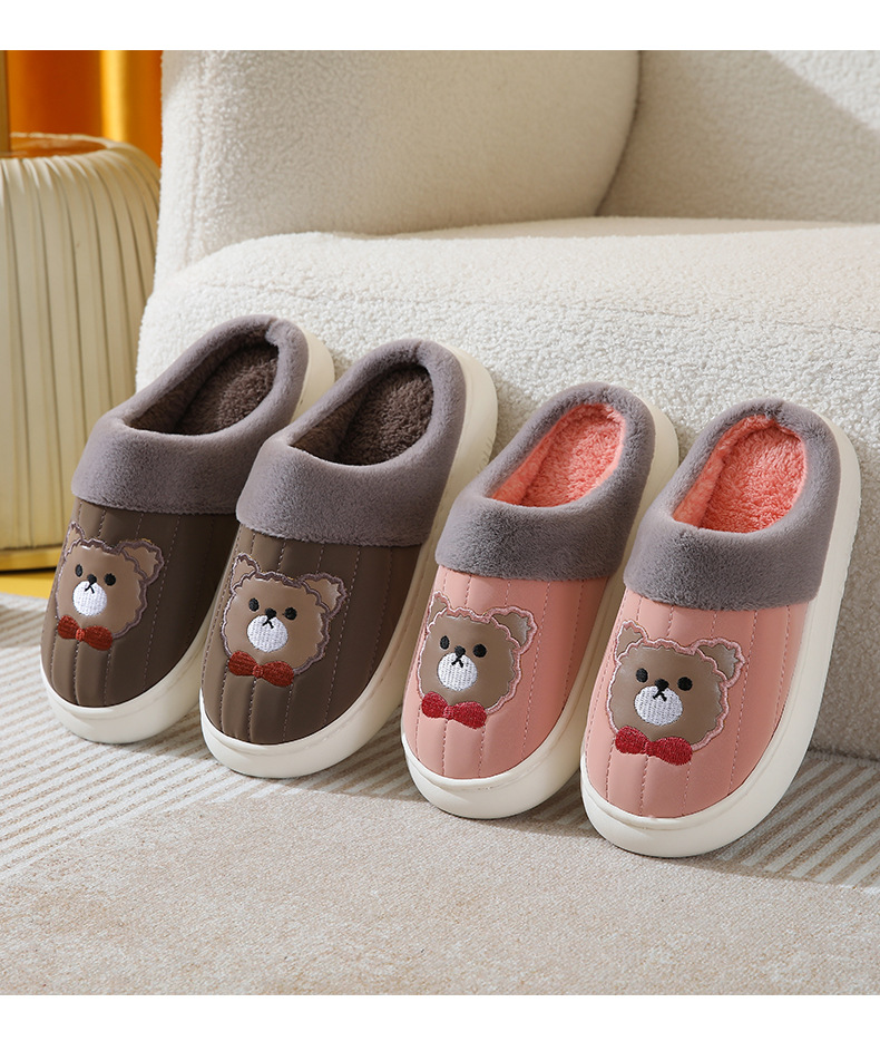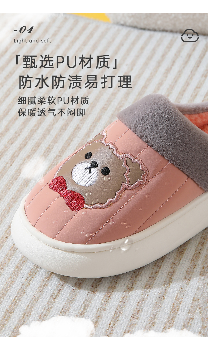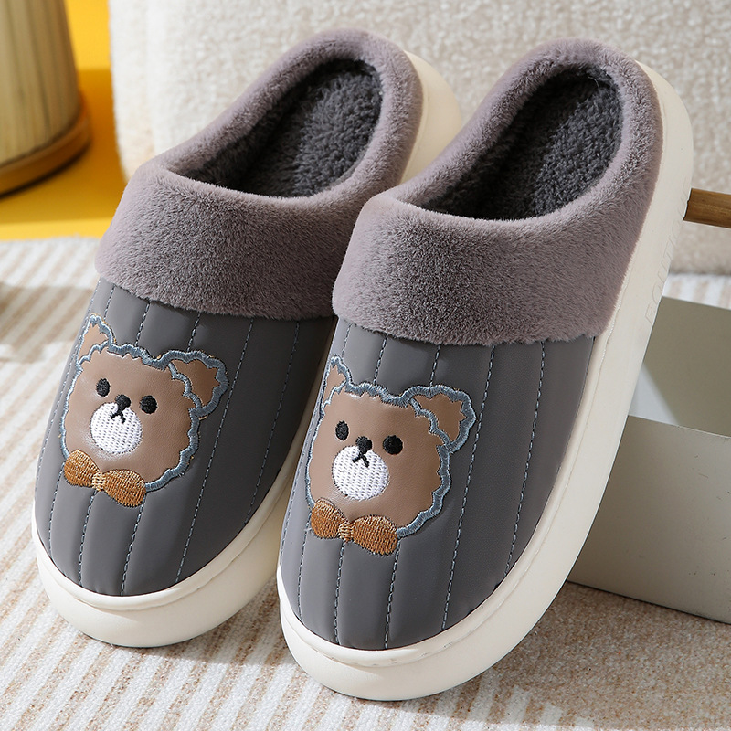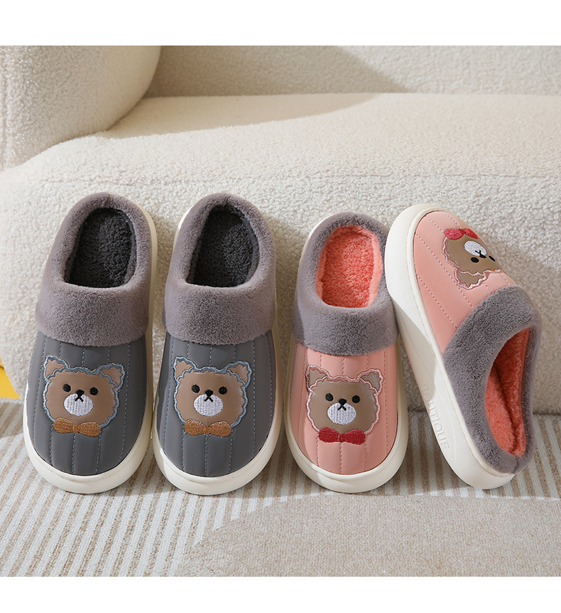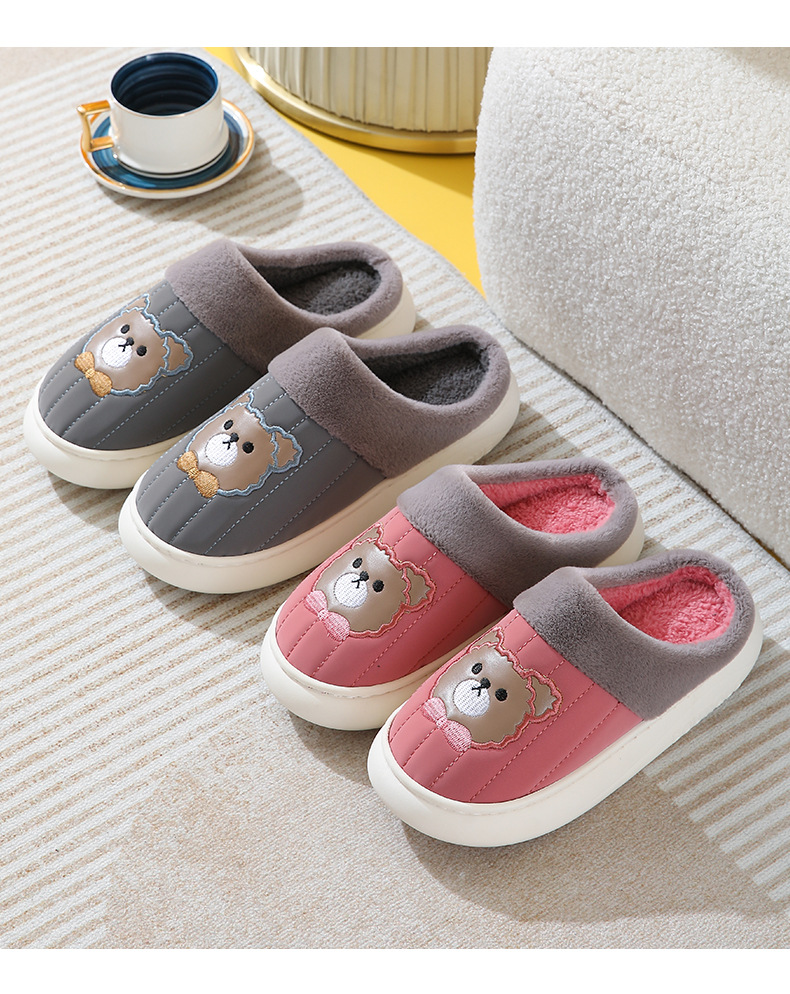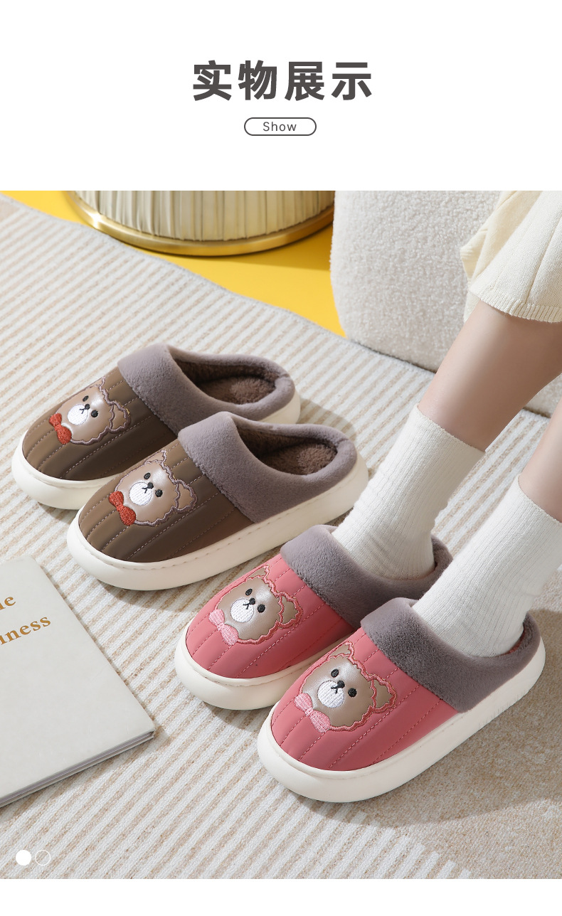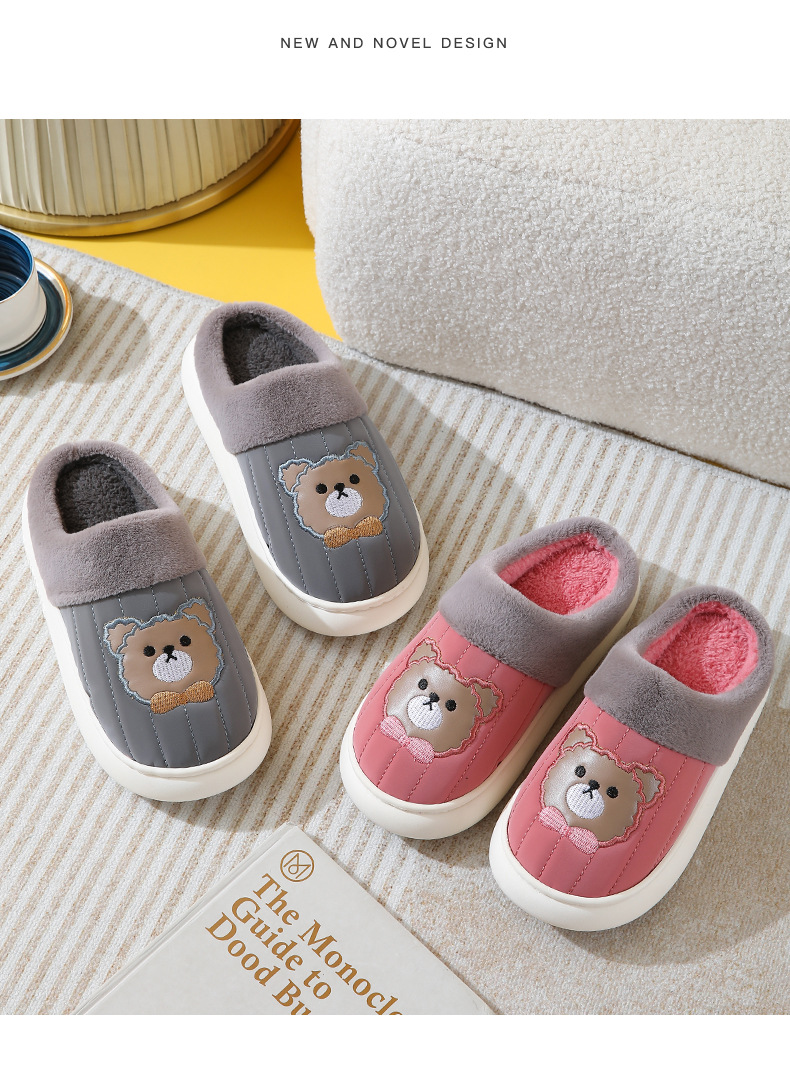 Хлопчатобумажные тапочки женские осенние и зимние PU кожа водонепроницаемый дом теплая противоскользящая и утолщая крытая пара новые шерстяные тапочки мужчины
