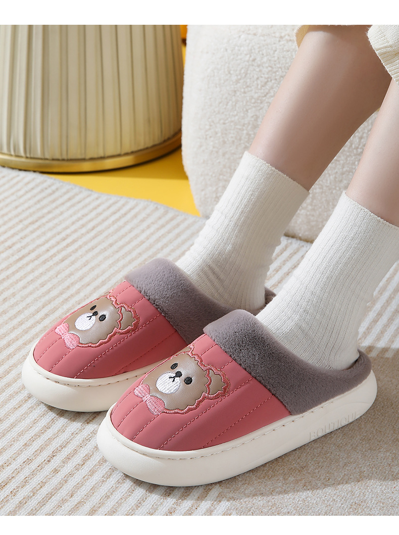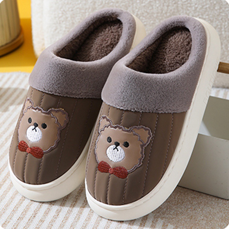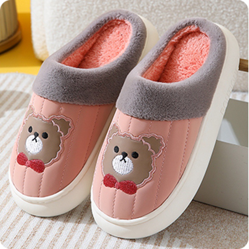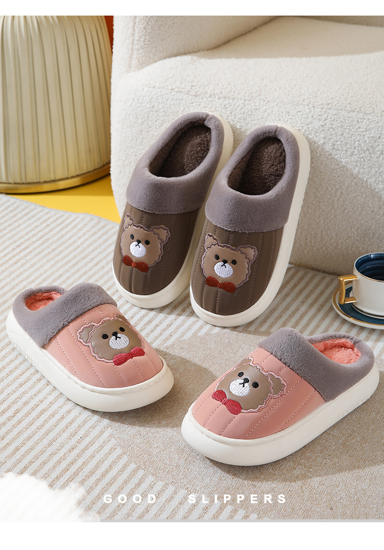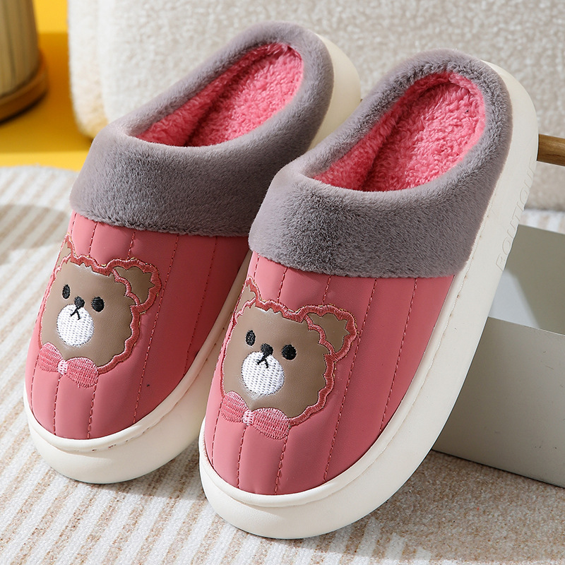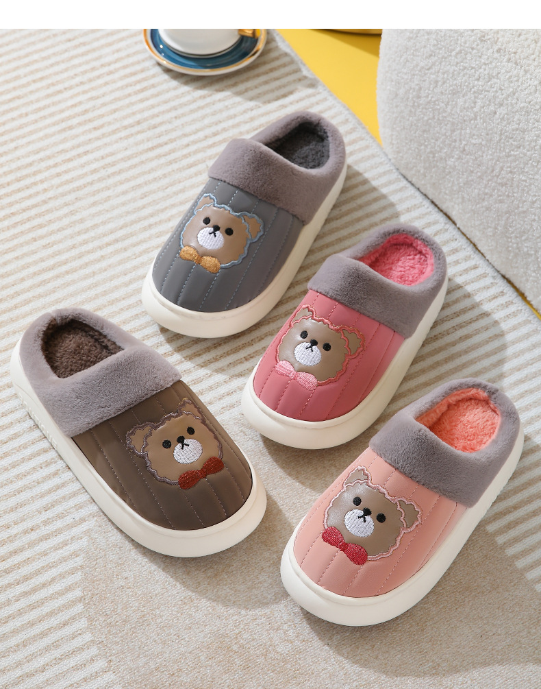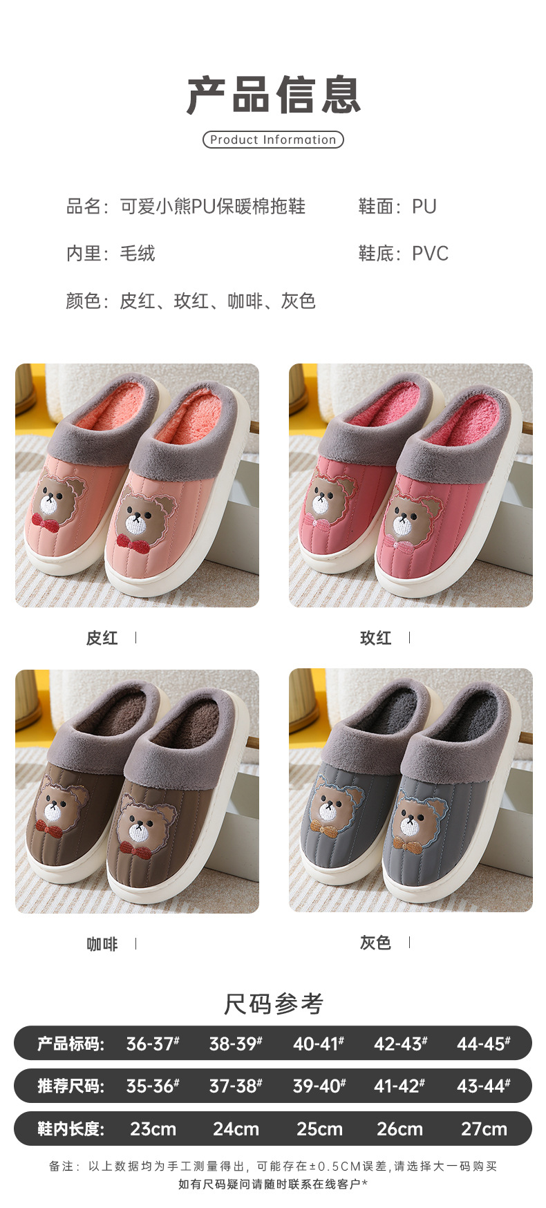 Хлопчатобумажные тапочки женские осенние и зимние PU кожа водонепроницаемый дом теплая противоскользящая и утолщая крытая пара новые шерстяные тапочки мужчины