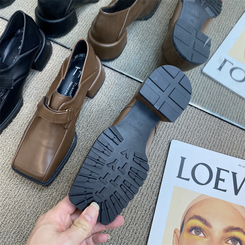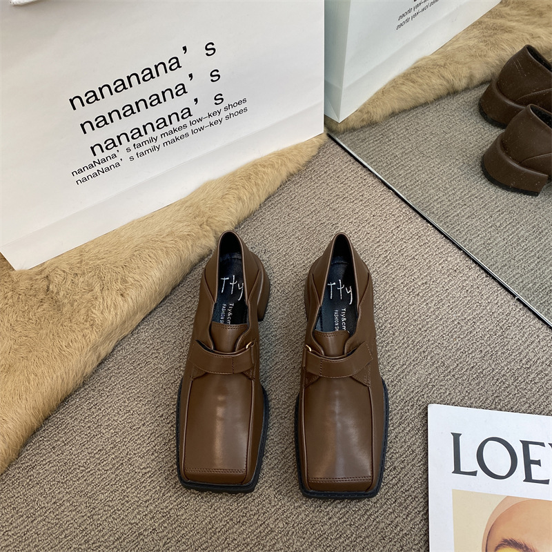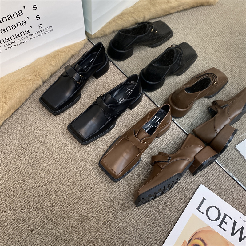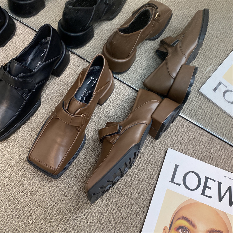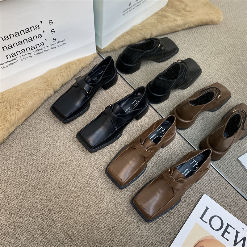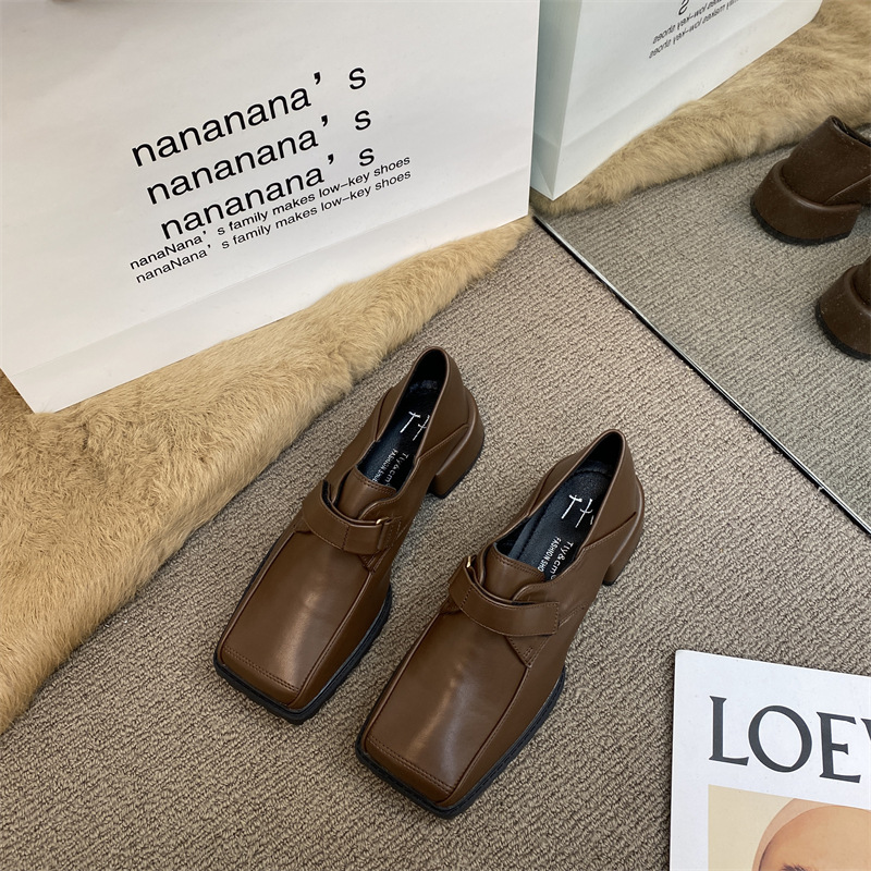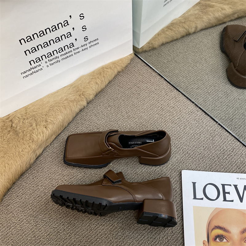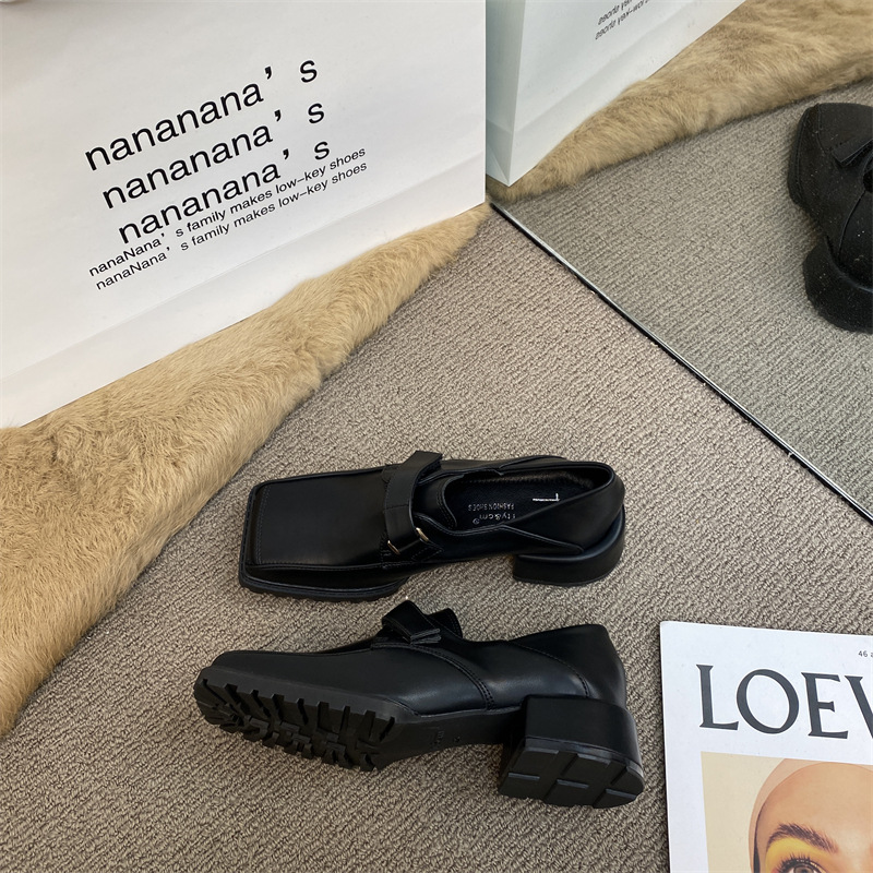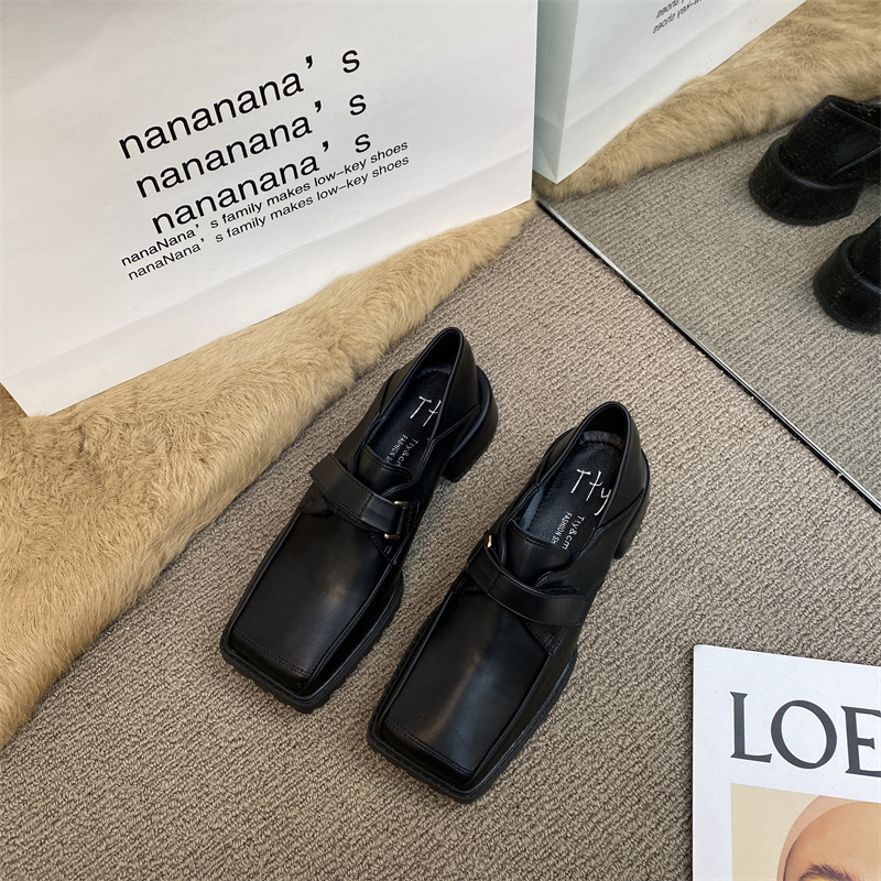 Британские туфли на толстом каблуке женские 2024 новые ретро квадратные туфли